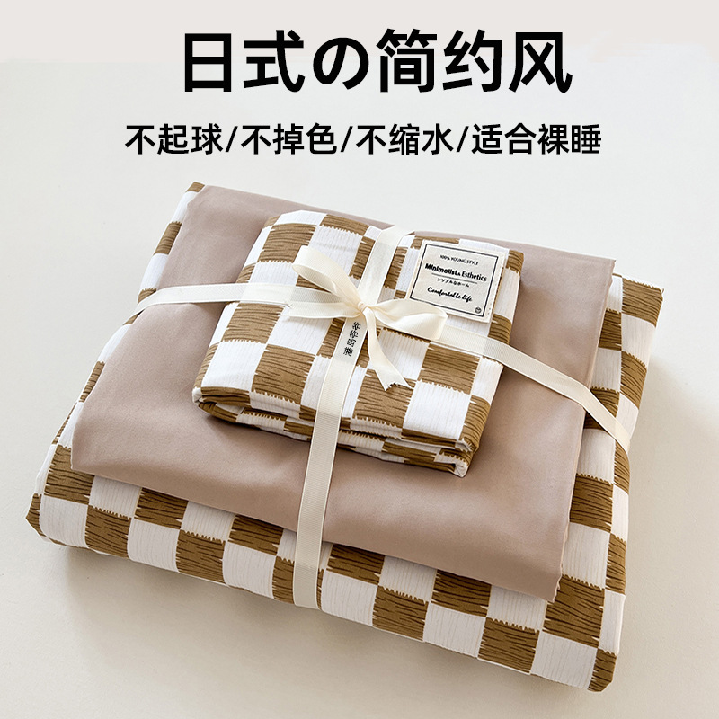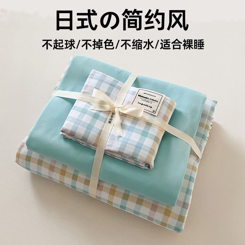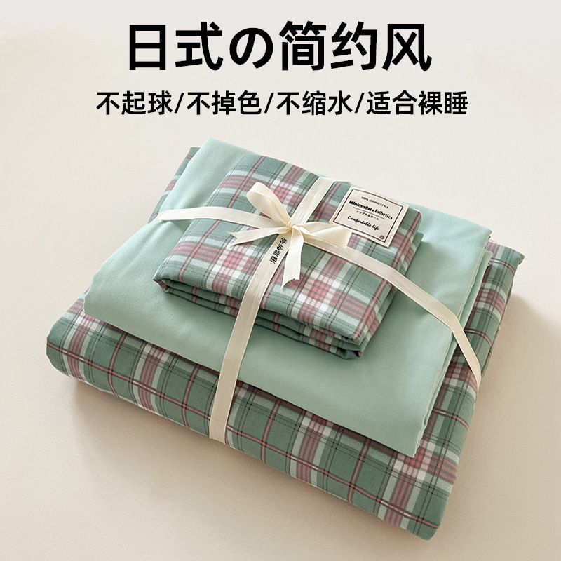 클래스 A 모성 및 유아용 격자 침대 4 종 세트 알몸 슬리핑 퀼트 커버 워시 코튼 침대 시트 퀼트 커버 학생 기숙사 3 종 세트스토어 가기