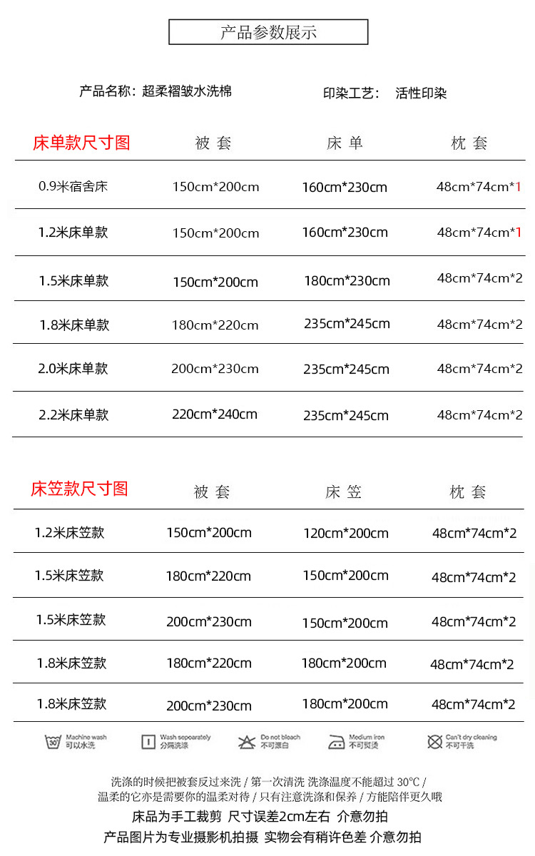 • 1.5m 침대시트 4종세트 [이불커버 150×200cm 침대시트 180×230cm 베개커버 2개]