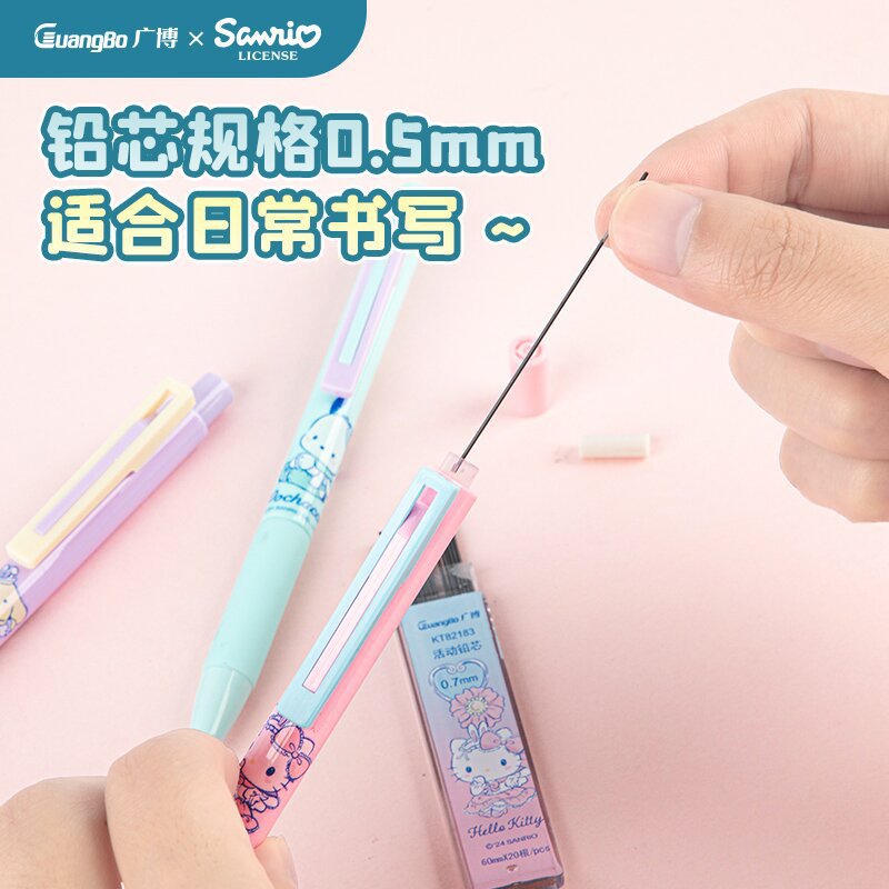 Guangbo 정품 승인 산리오 액티브 연필 만화 귀여운 높은 색상 값 쓰기 자동 리드를 깨기 쉽지 않음 0.7
