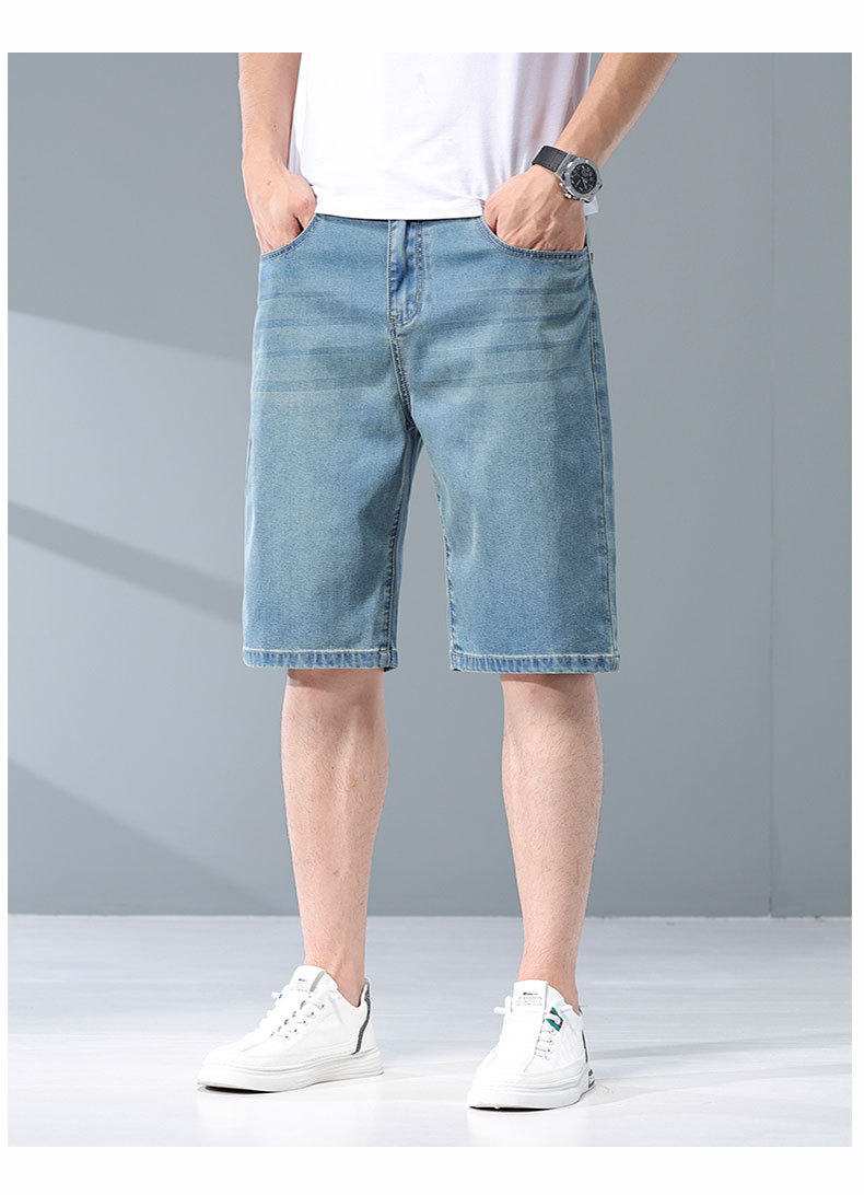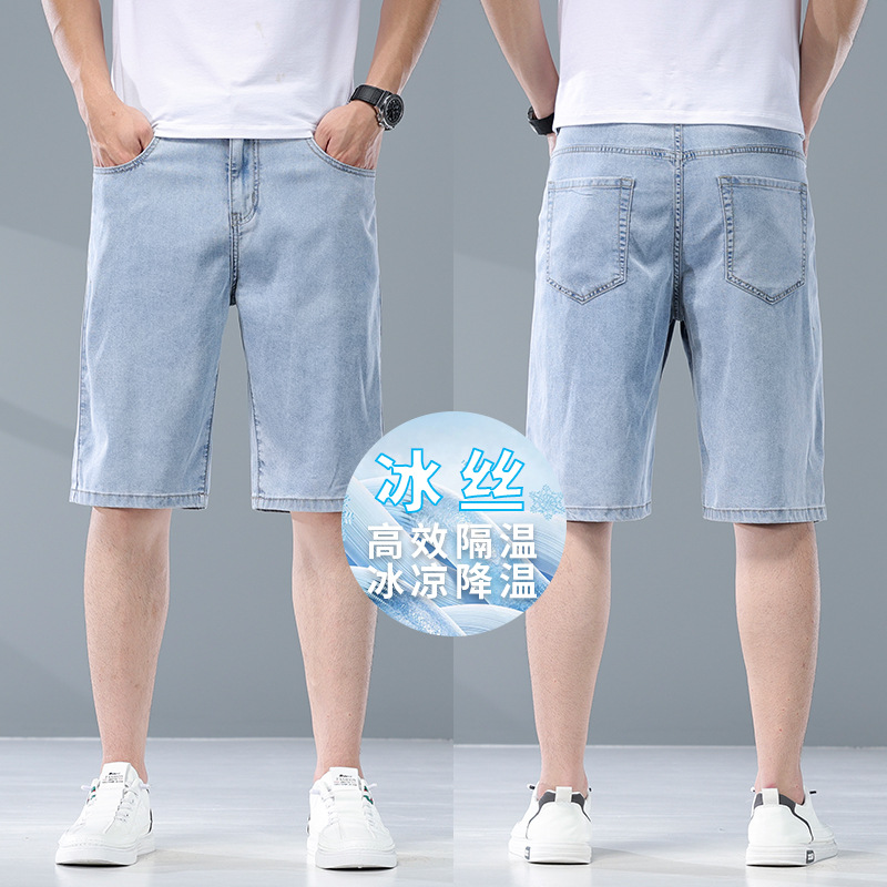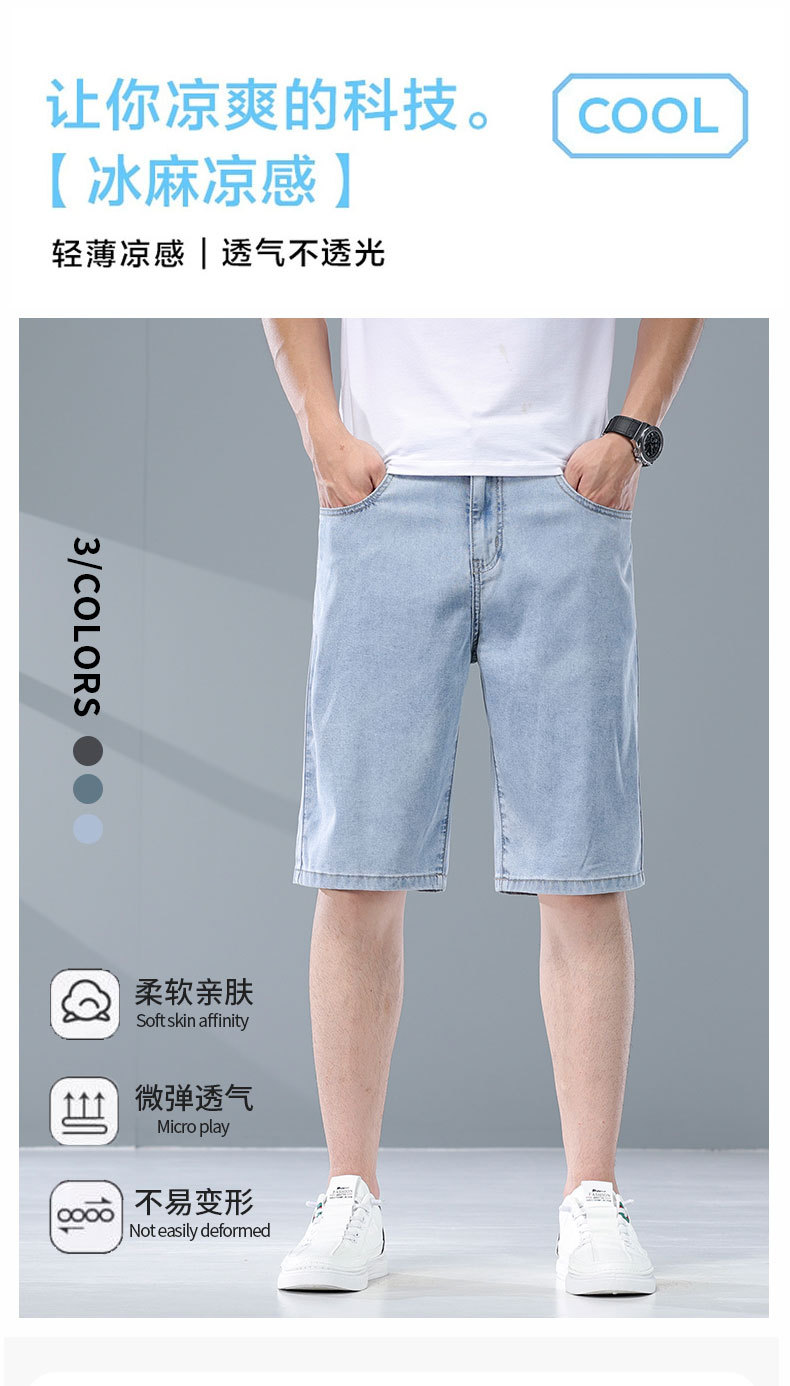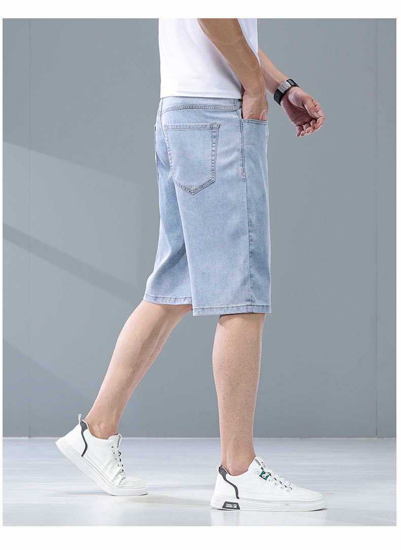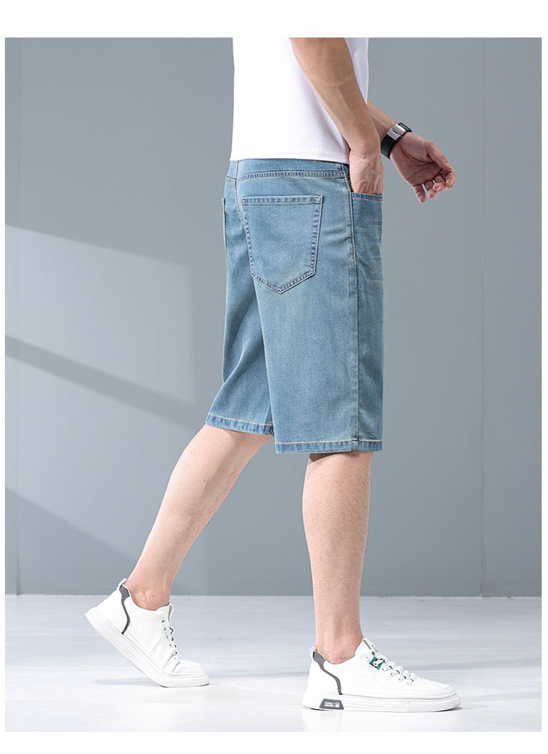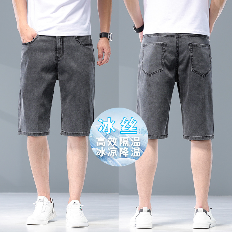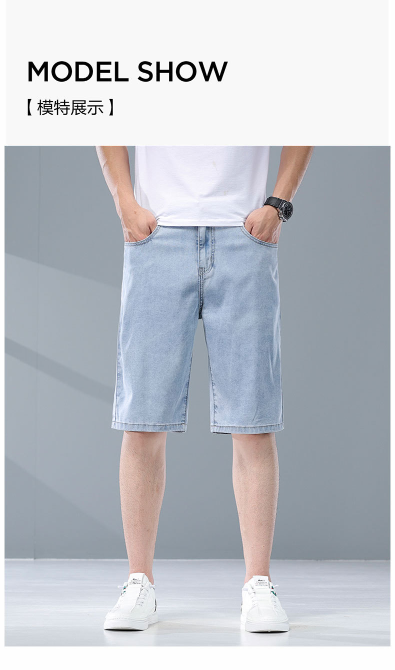 2024 년 여름 새로운 도착 느슨한 스트레이트 데님 반바지 남자 스트레치 텐셀 Lyocell 캐주얼 트렌디 바지스토어 가기