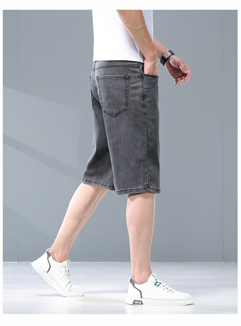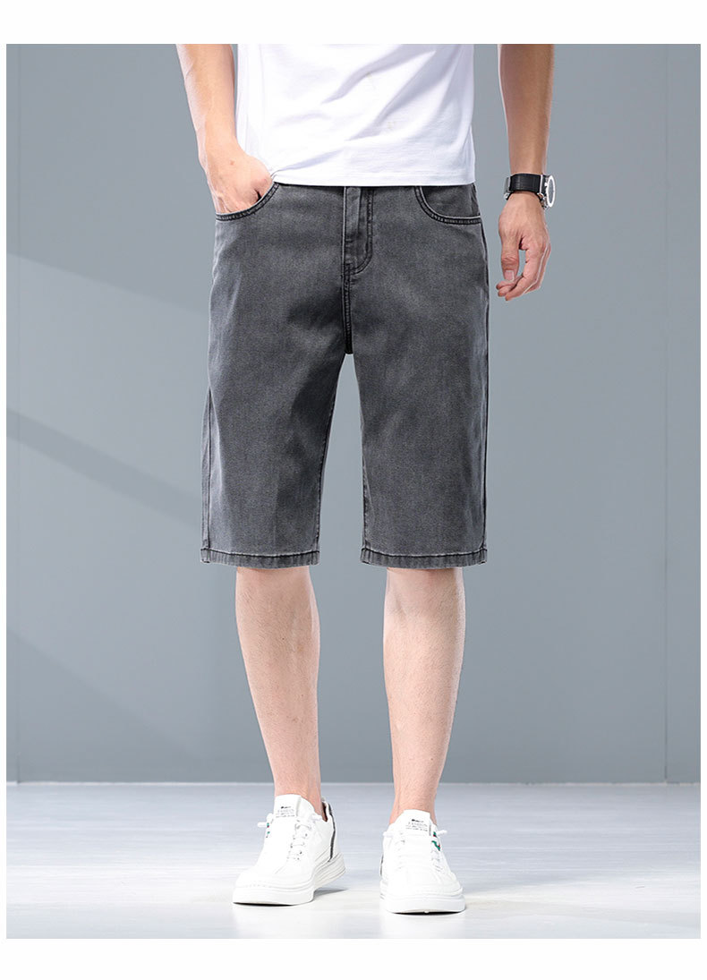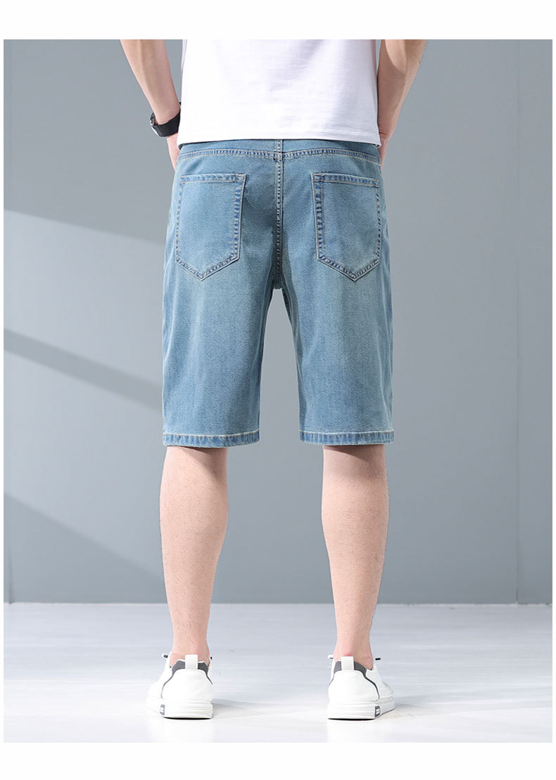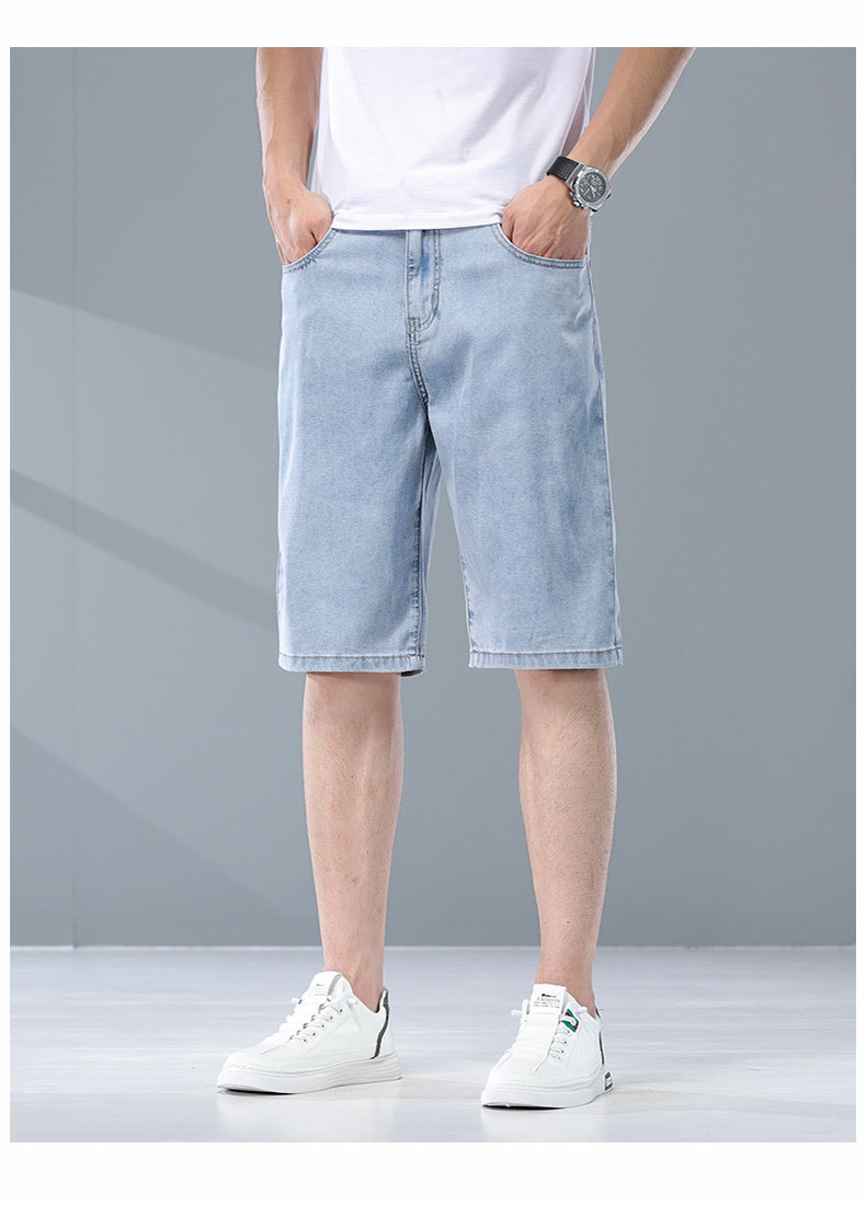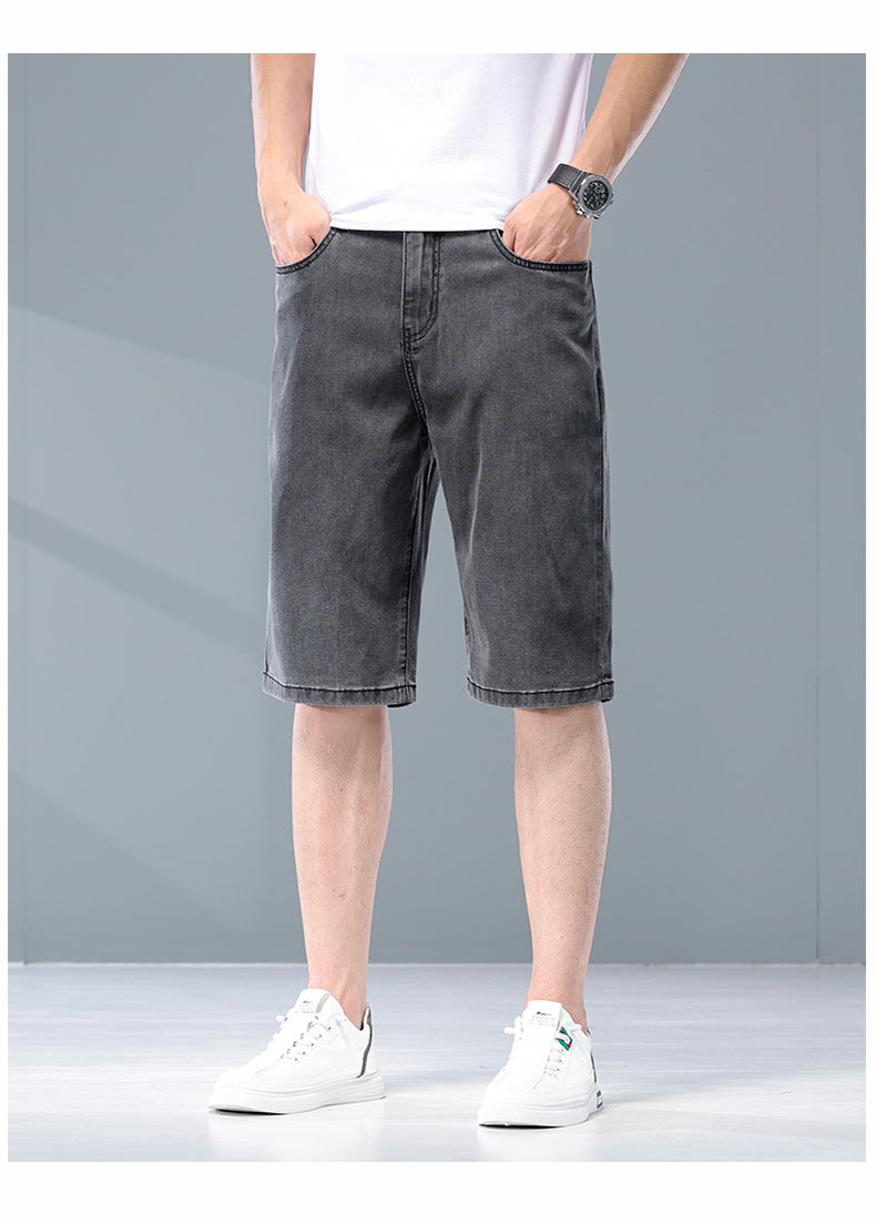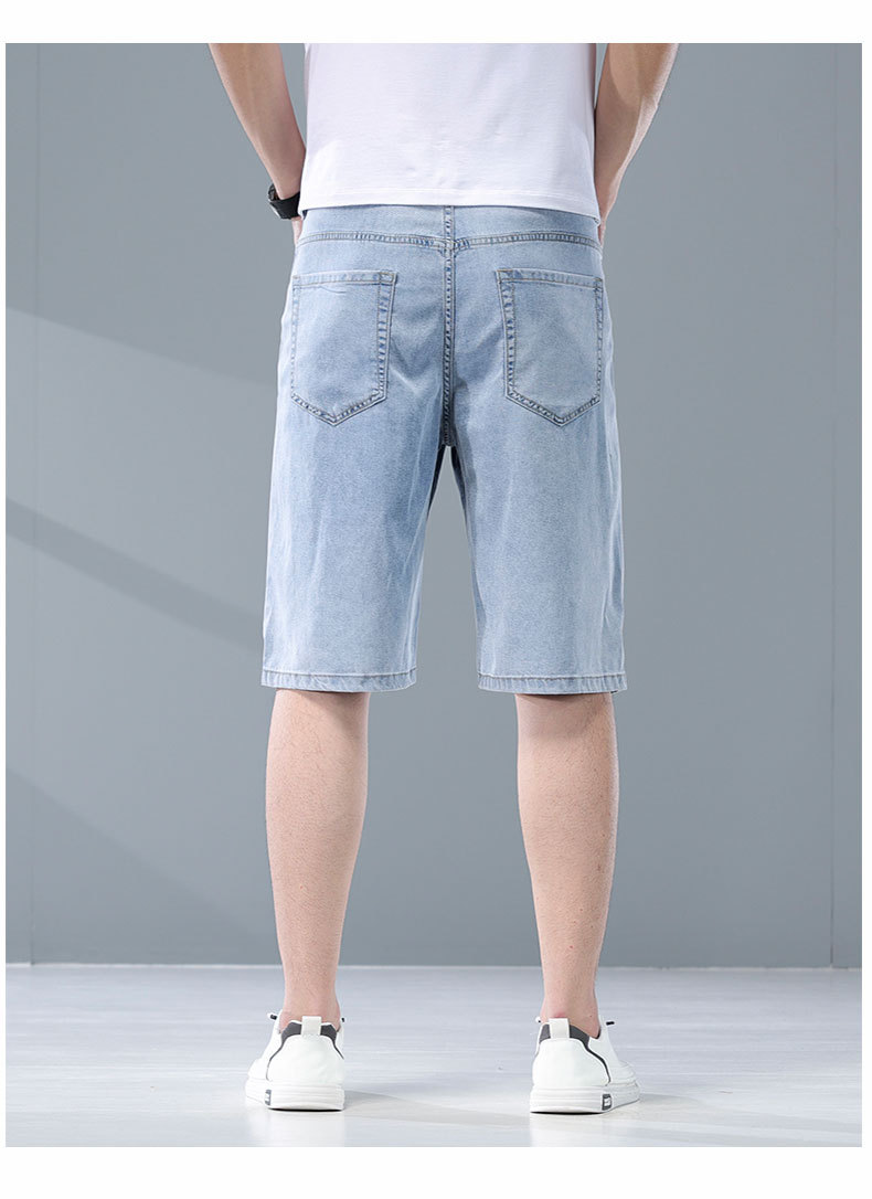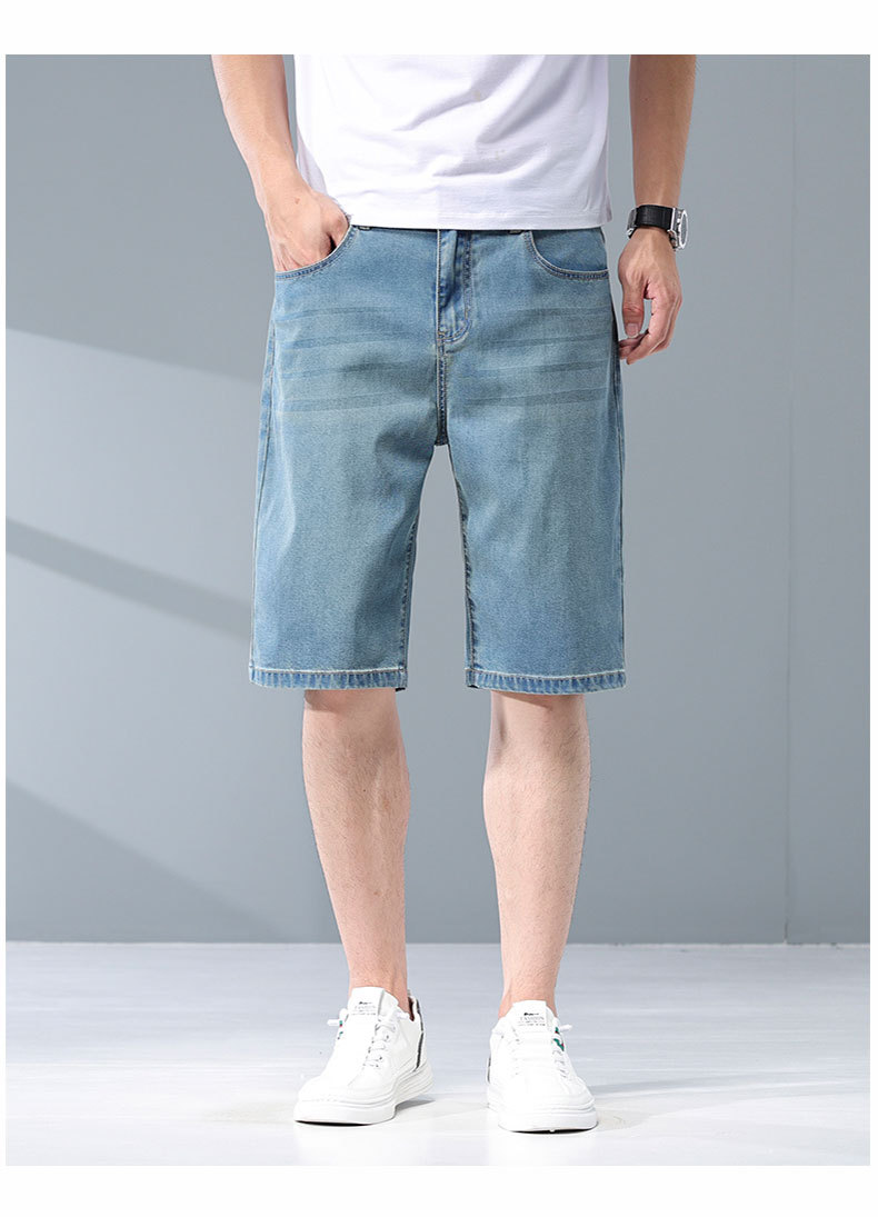 2024 년 여름 새로운 도착 느슨한 스트레이트 데님 반바지 남자 스트레치 텐셀 Lyocell 캐주얼 트렌디 바지스토어 가기