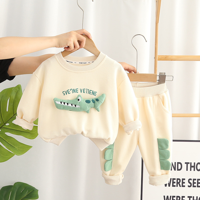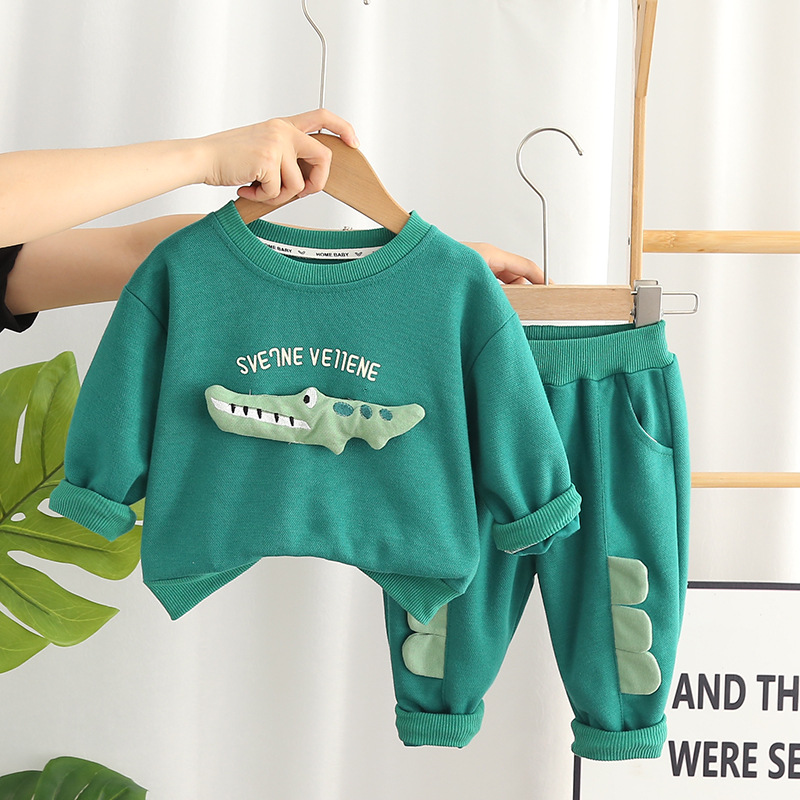 2024 가을 아동복 긴소매 공룡 스웨터 0-5 세 어린이 세트 투피스 바지 가을 패션 세대