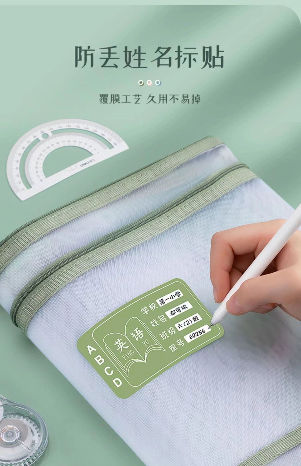 • 업그레이드 된 두꺼운 학생 핸드 헬드 더블 레이어 투명 메쉬 가방 [영어] 1