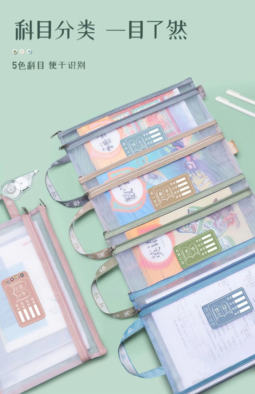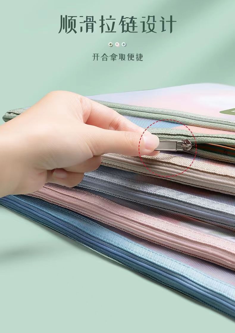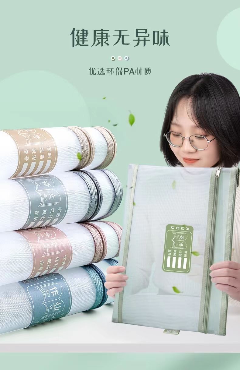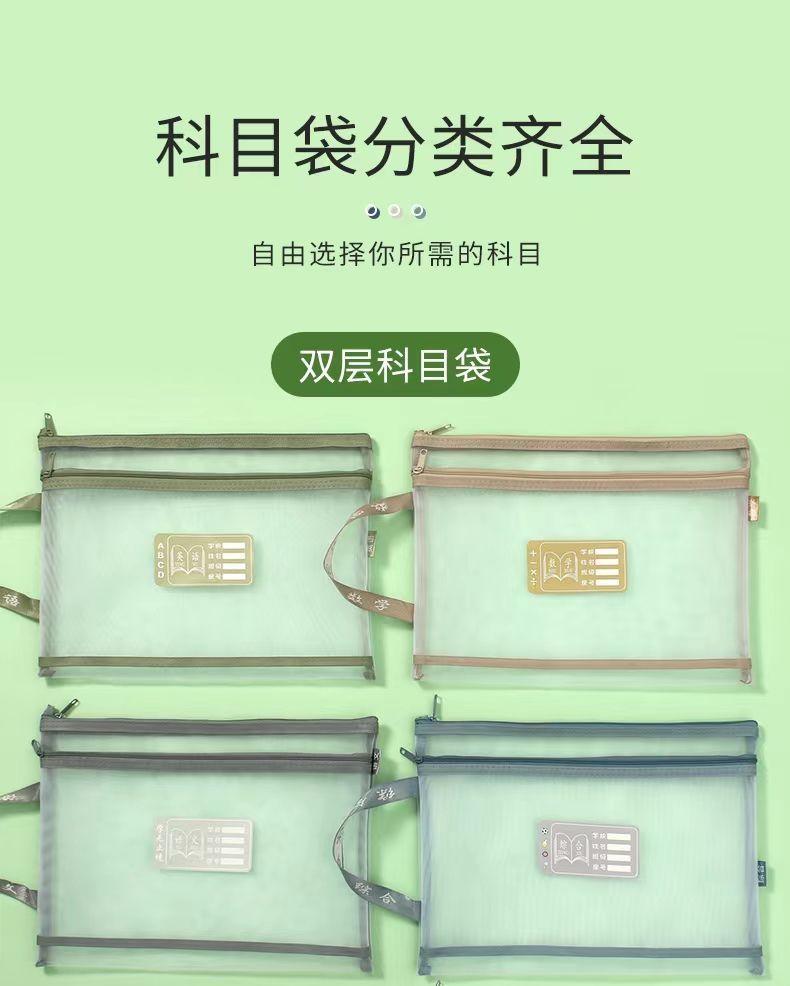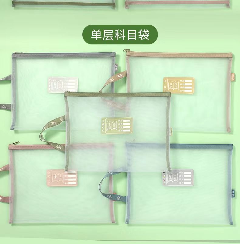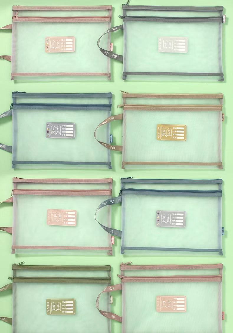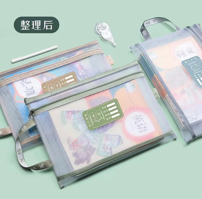 메쉬 튜토리얼 가방 파일 가방 지퍼 제목 분류 가방 학생 시험 종이 보관 가방 투명 메쉬 주제 책 가방스토어 가기