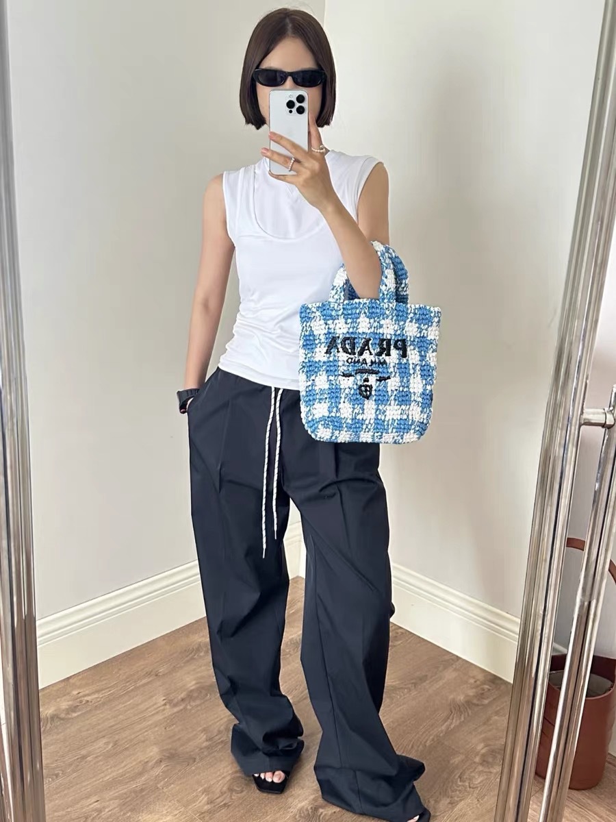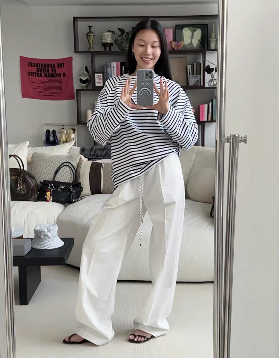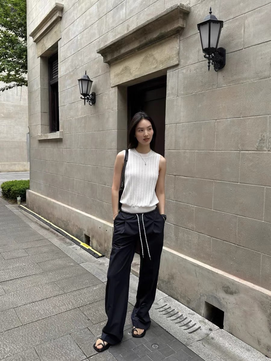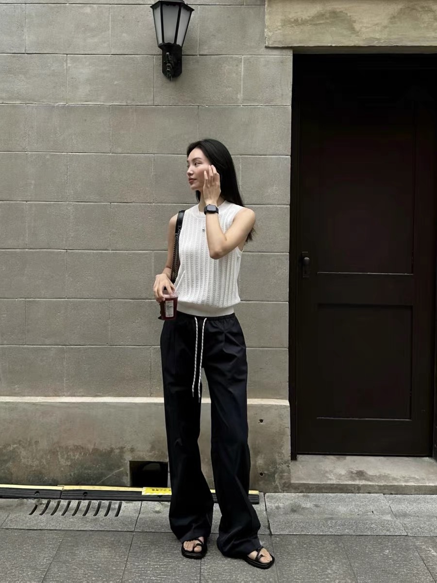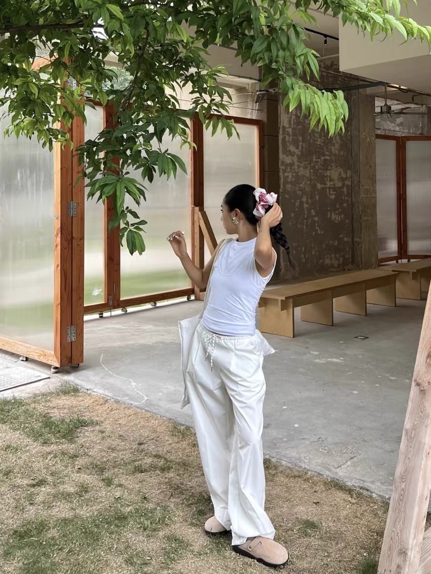 올 매치 단순 중립 스타일 슬리밍 대조 컬러 드로우 스트링 나일론 에어 편안한 캐주얼 바지 여성용 스트레이트 다리 바지 4220