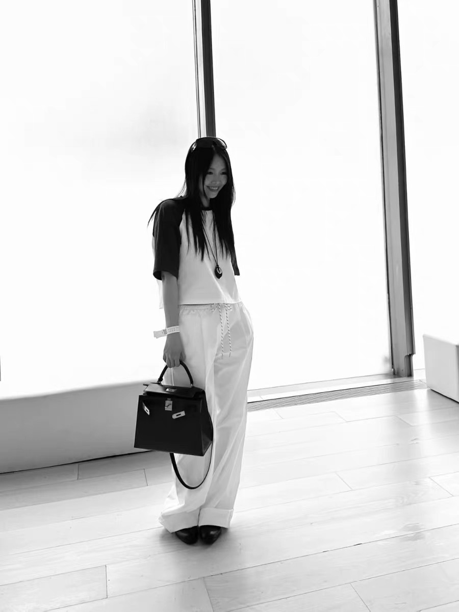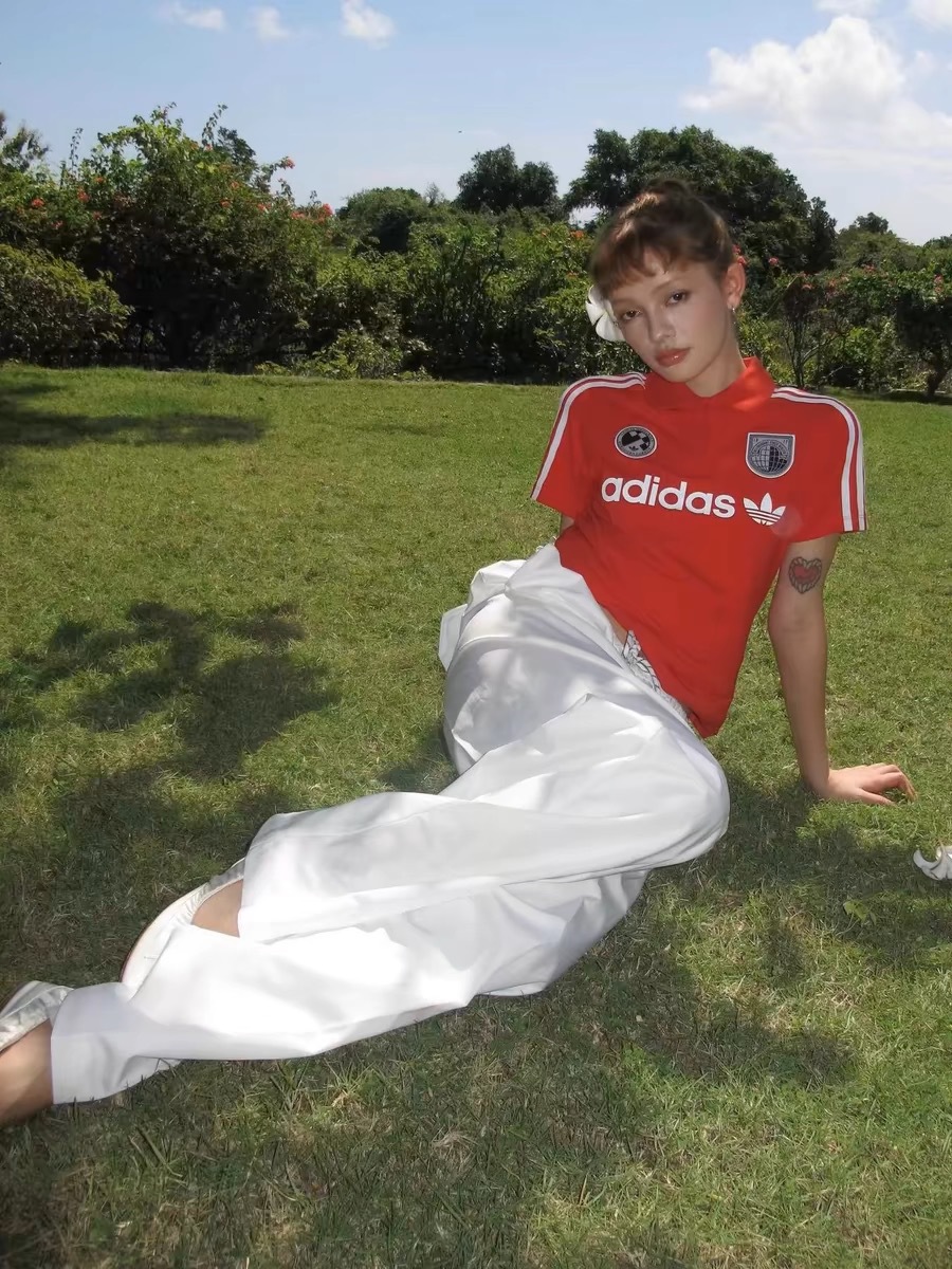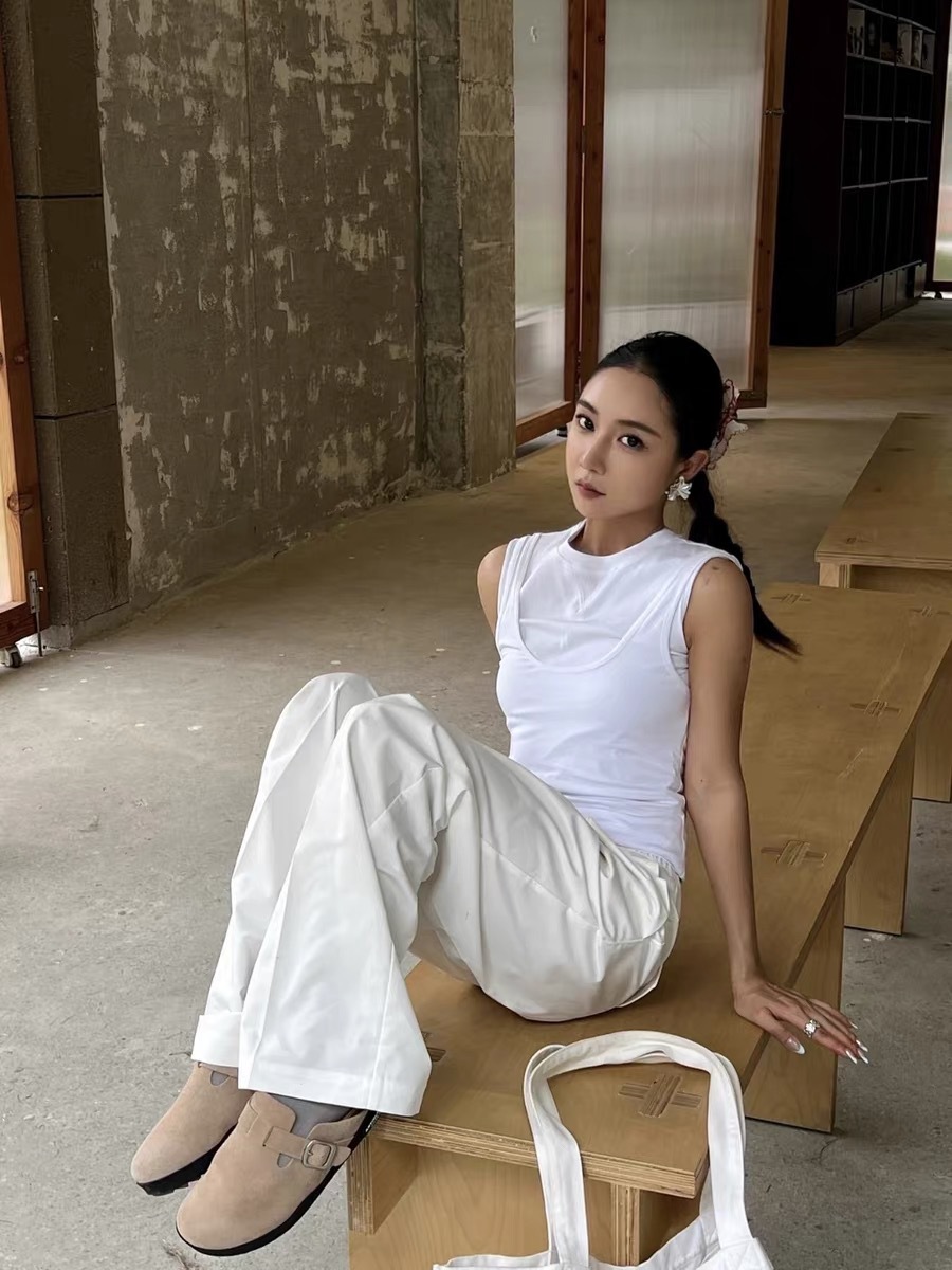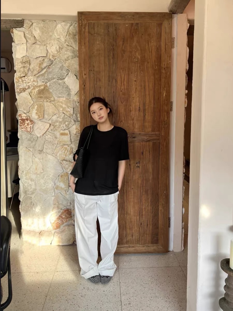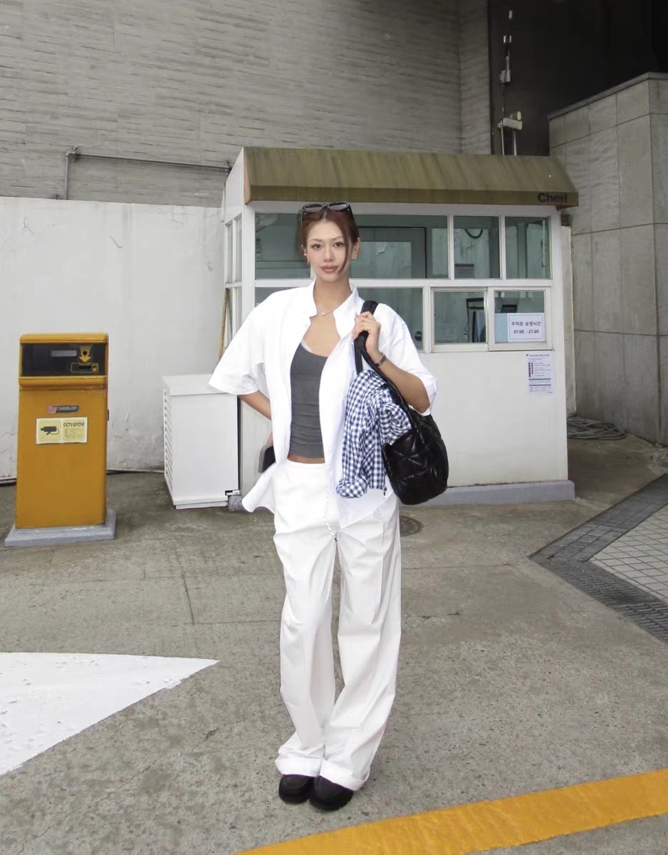 올 매치 단순 중립 스타일 슬리밍 대조 컬러 드로우 스트링 나일론 에어 편안한 캐주얼 바지 여성용 스트레이트 다리 바지 4220