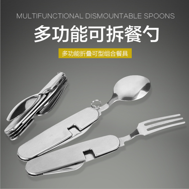 야외 식기 분리 가능한 조합 식기 접이식 나이프와 포크 스푼 필드 도구 다기능 휴대용 여행 장비