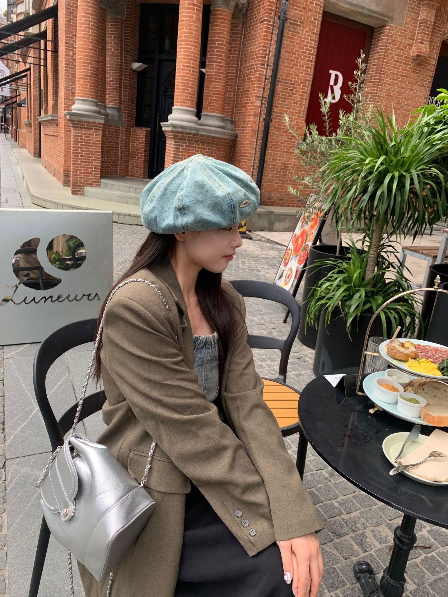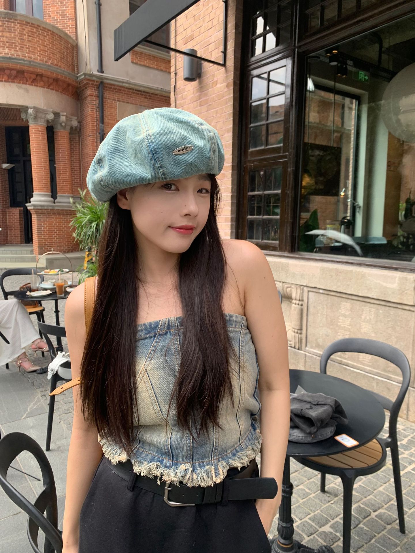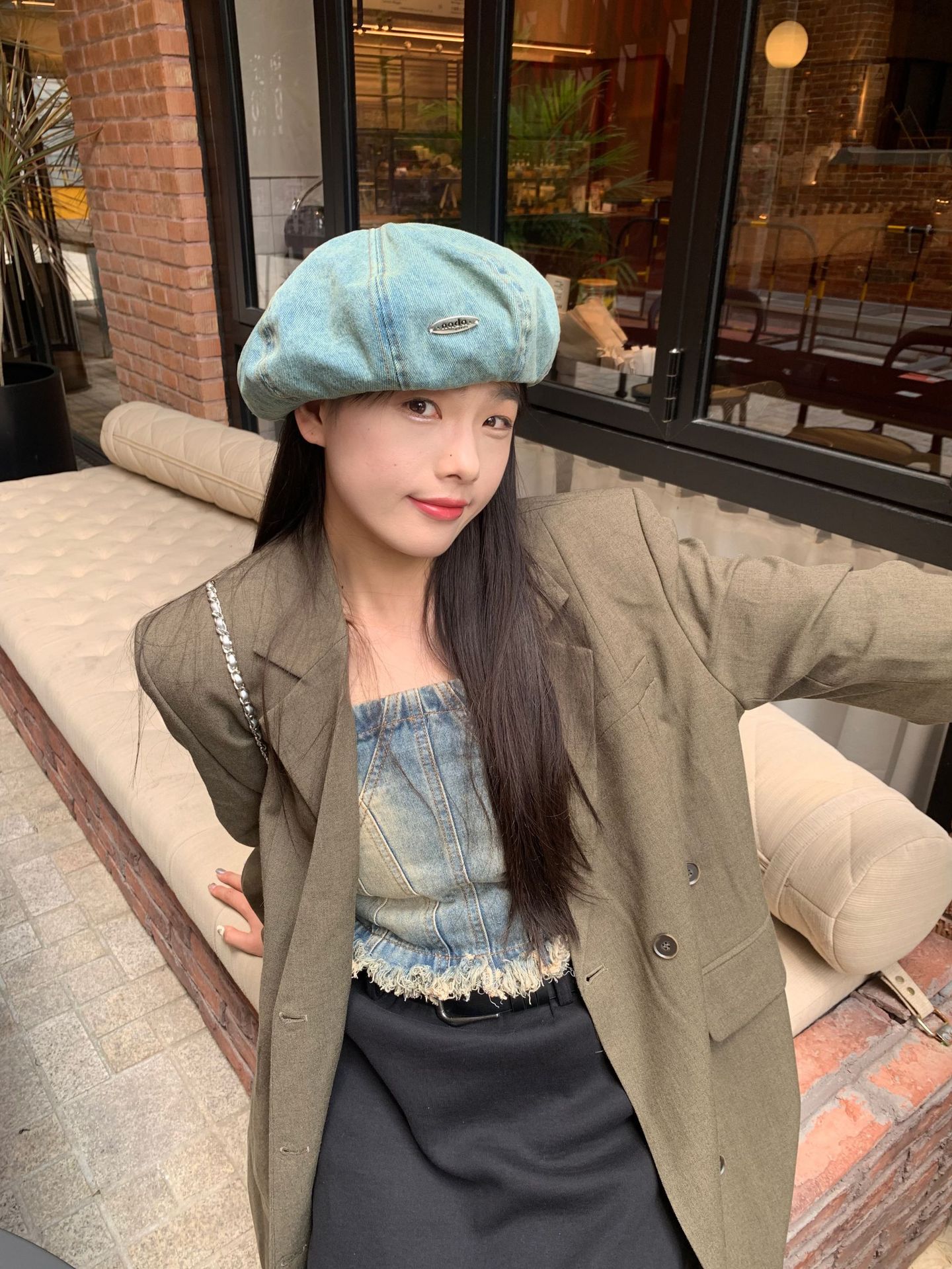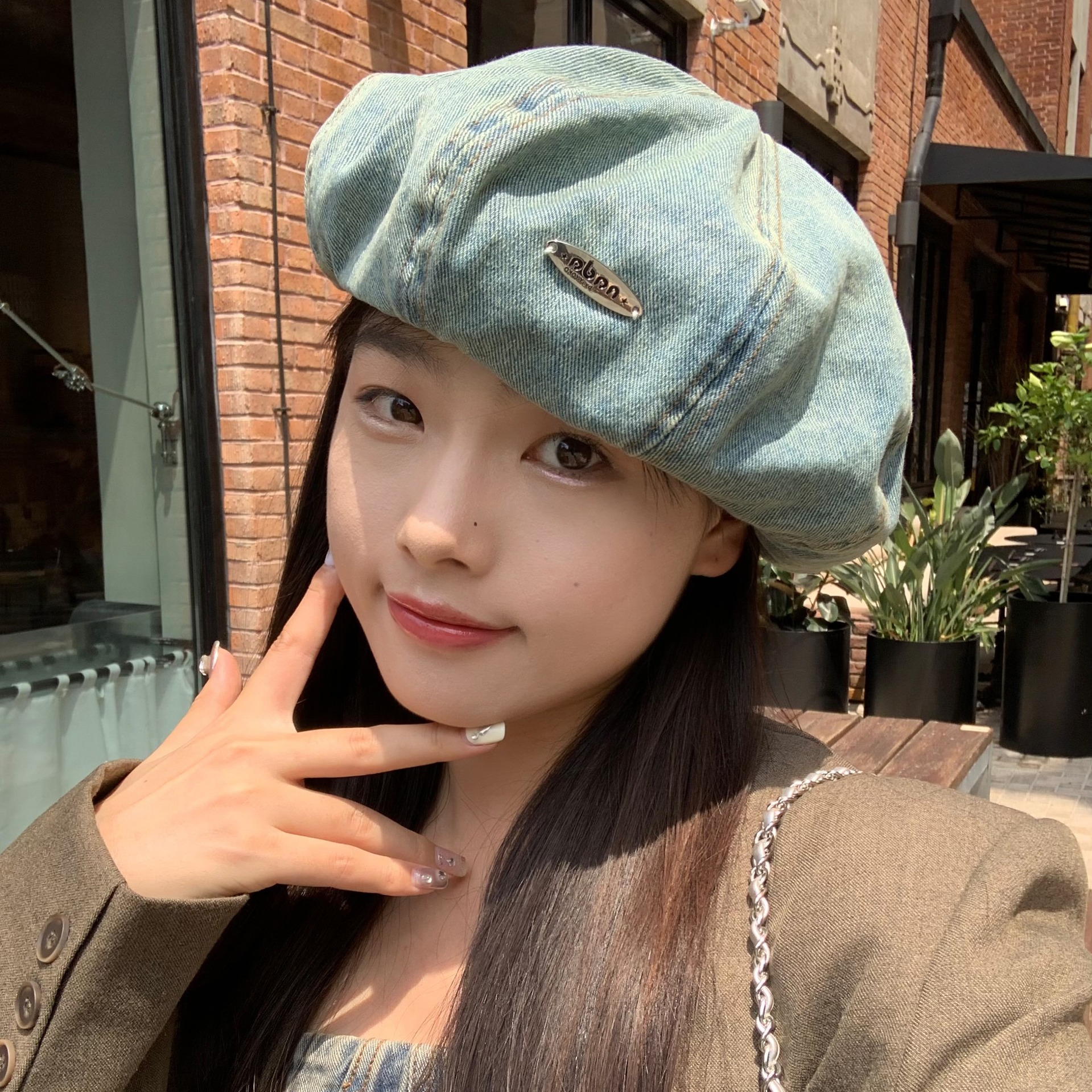 한국식 향수를 불러 일으키는 복고풍 학술 스타일 씻은 데님 베레모 어린이 얼굴 작은 꽃 봉오리 화가 구름 모자스토어 가기