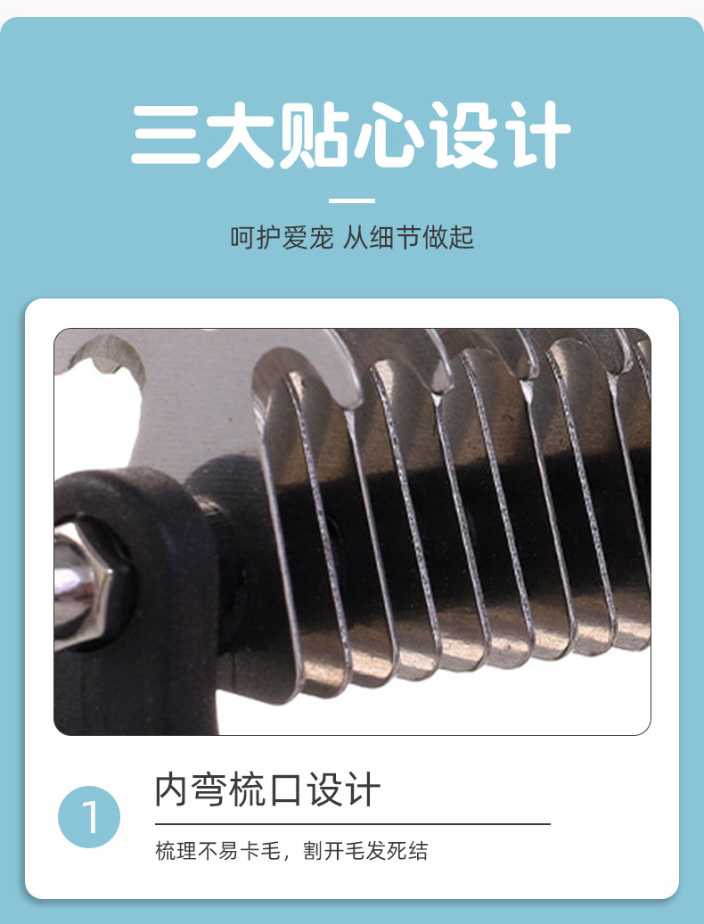 국경 스테인레스 스틸 애완 동물 오픈 매듭 빗 개 빗 머리 제거 빗 아름다움 빗 개 빗 애완 동물 용품스토어 가기