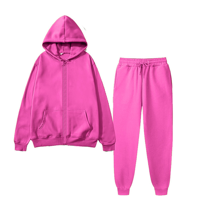 대외 무역 남성과 여성의 단색 스포츠웨어 세트 패션 캐주얼 가을과 겨울 따뜻한 후드 카디건 스웨터 바지스토어 가기