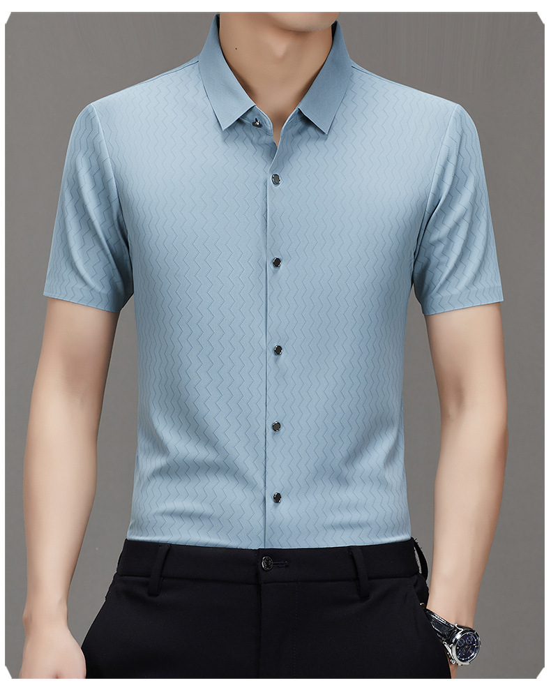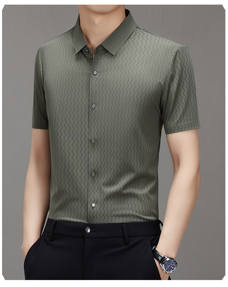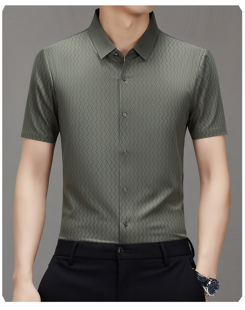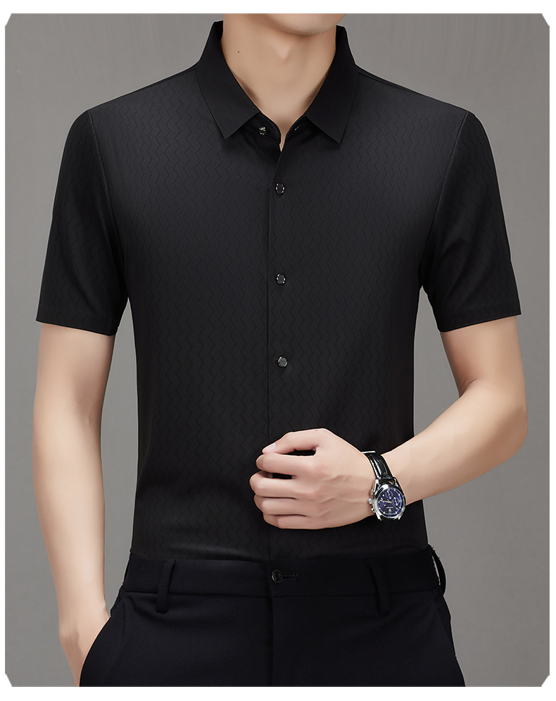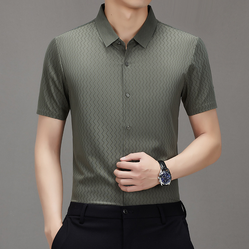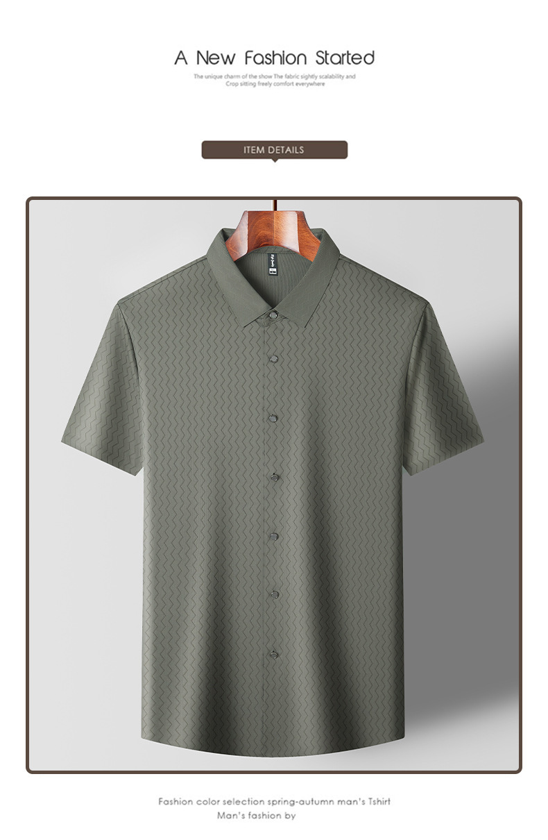 时尚新款男士短袖衬衫2024夏季韩版中青年休闲宽松薄款单排扣衬衣