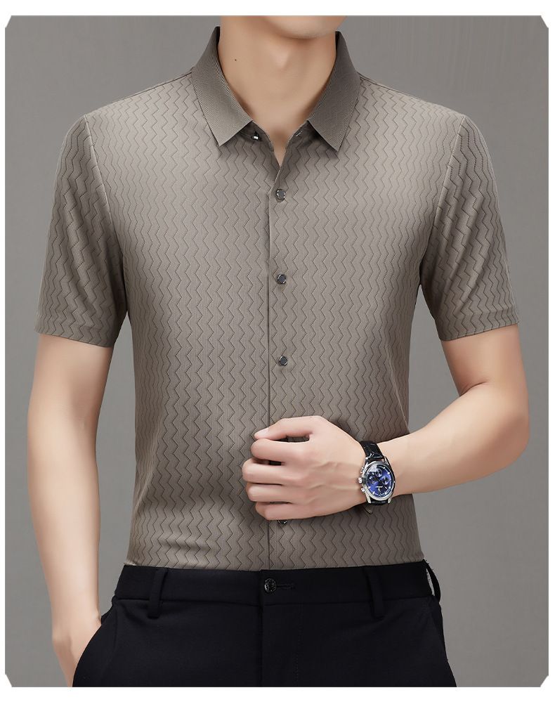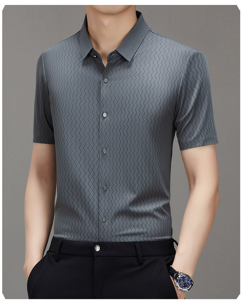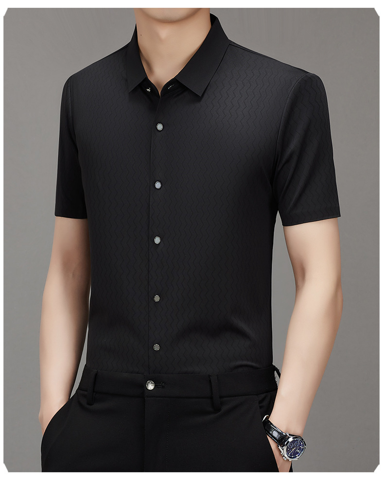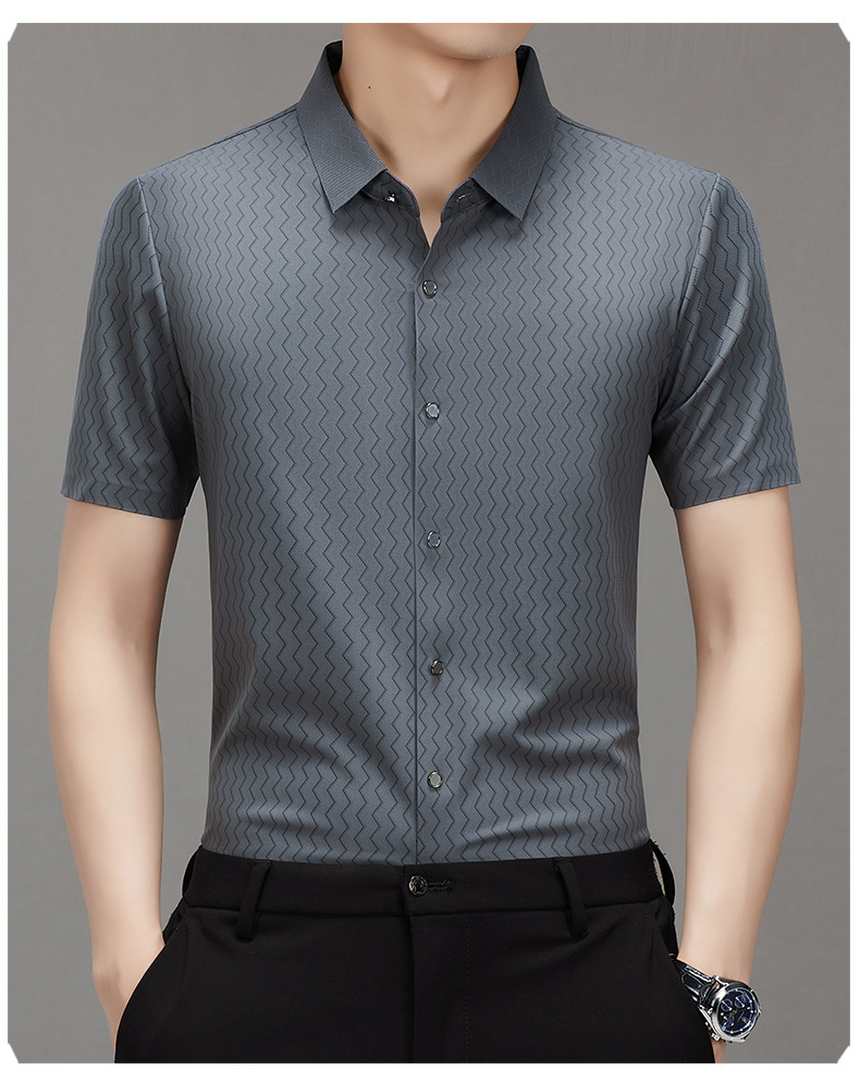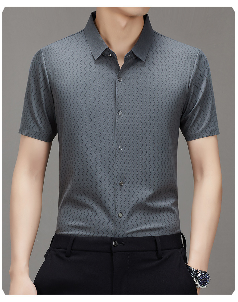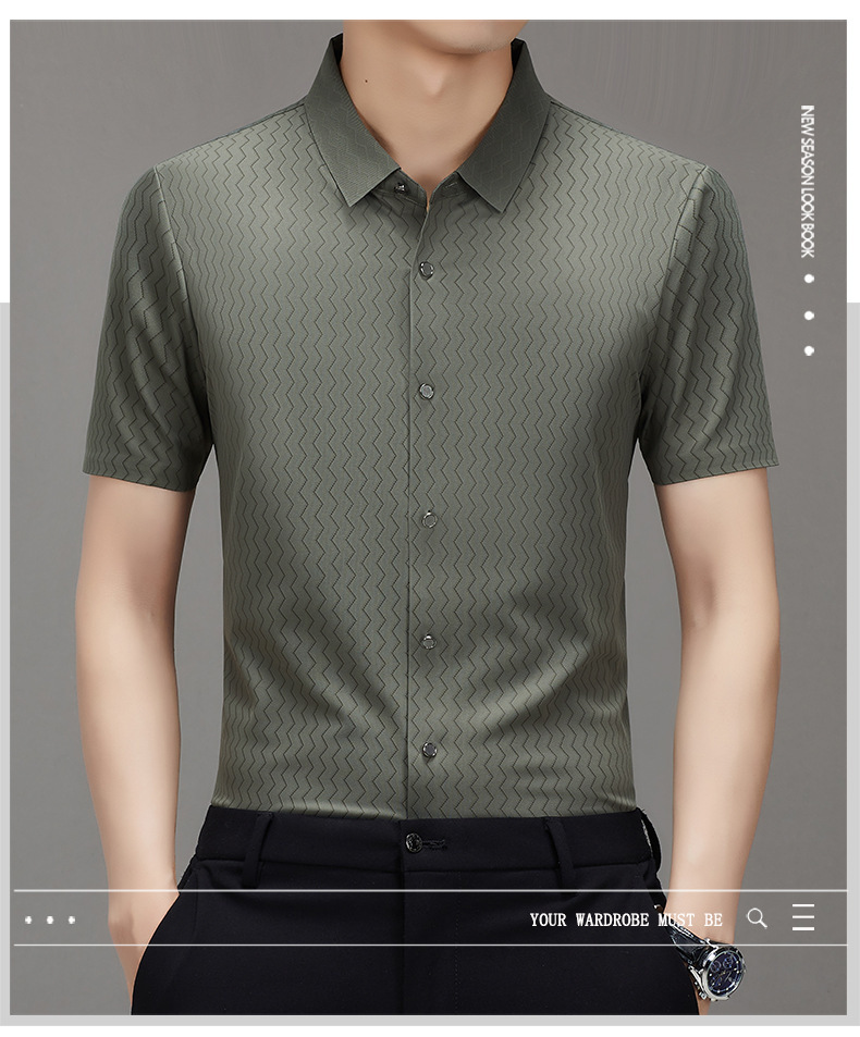 时尚新款男士短袖衬衫2024夏季韩版中青年休闲宽松薄款单排扣衬衣