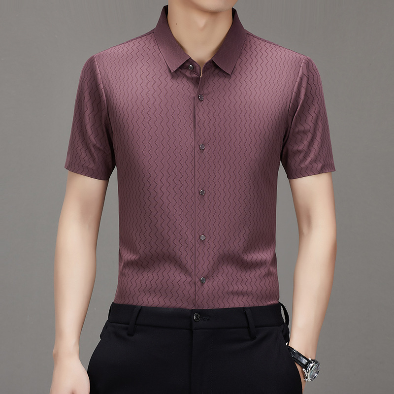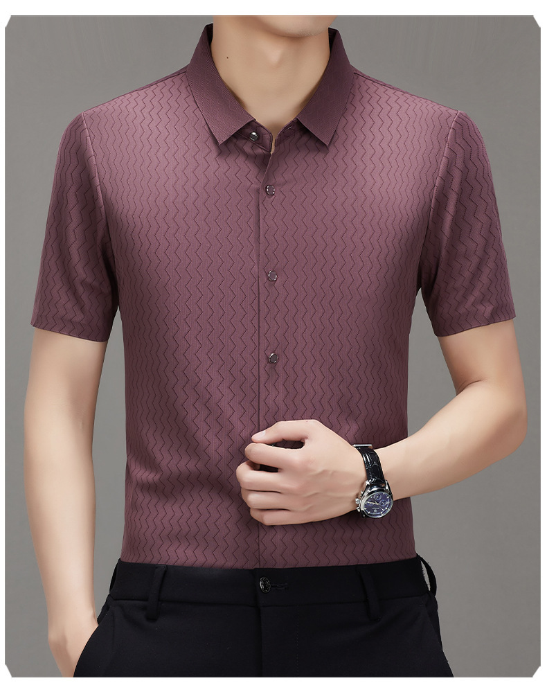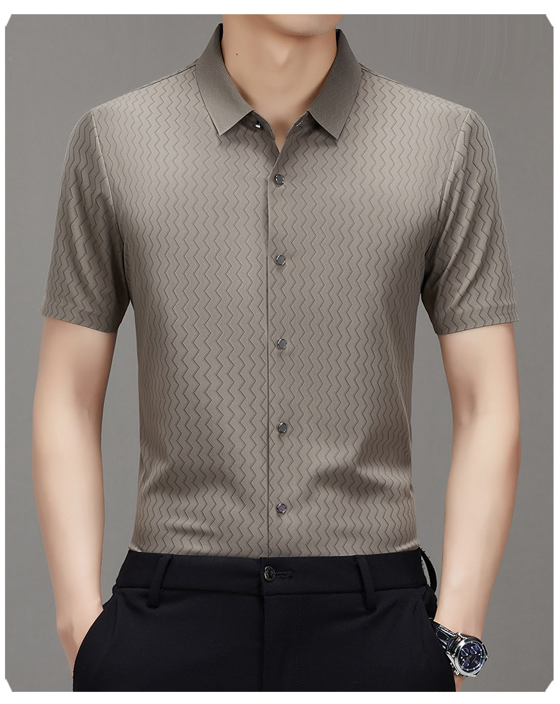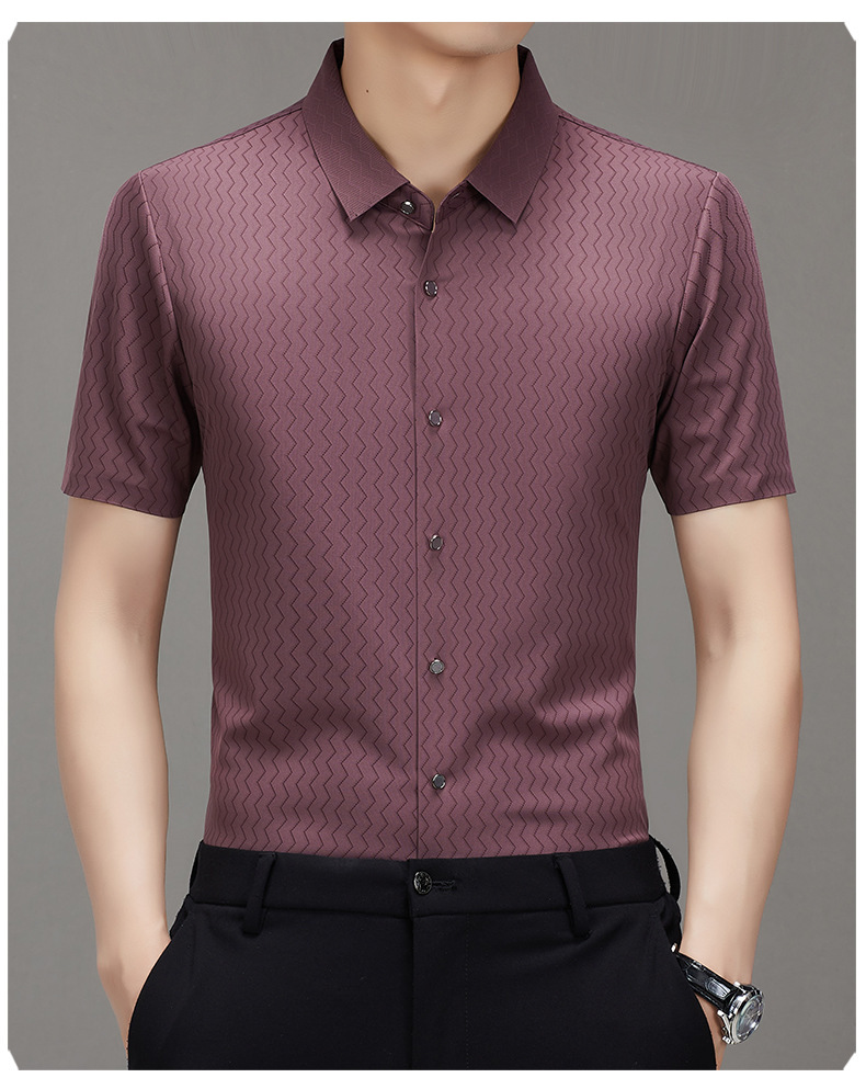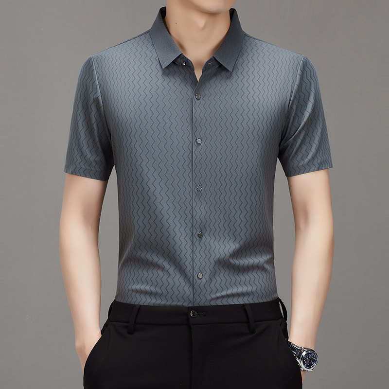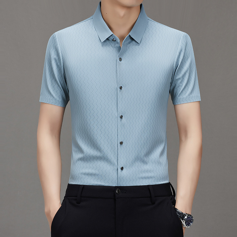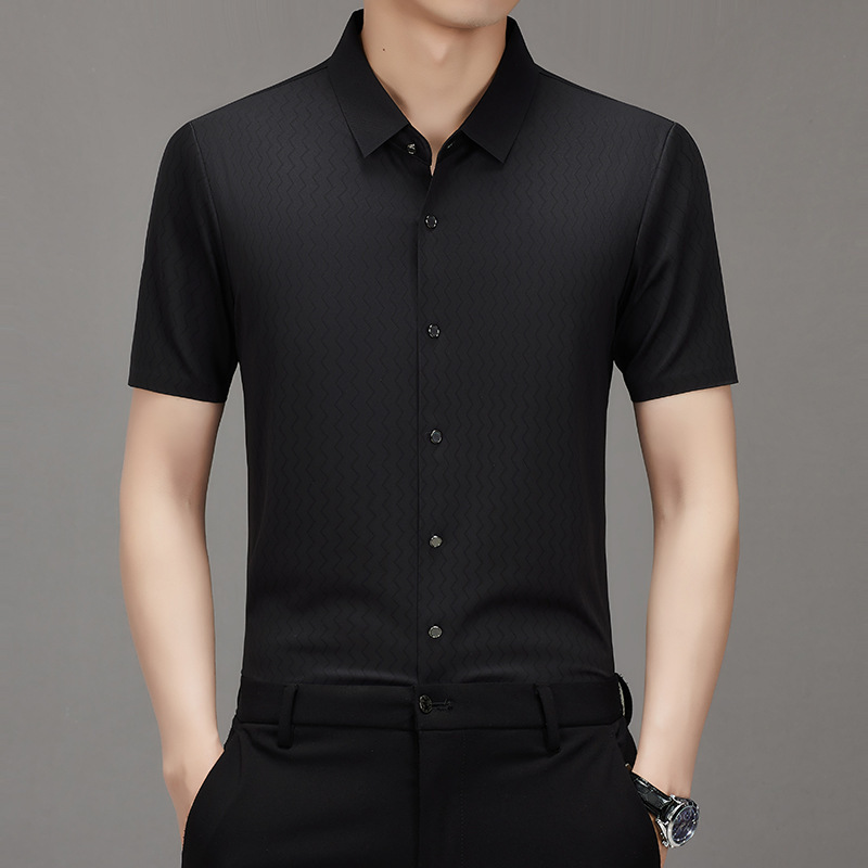 时尚新款男士短袖衬衫2024夏季韩版中青年休闲宽松薄款单排扣衬衣