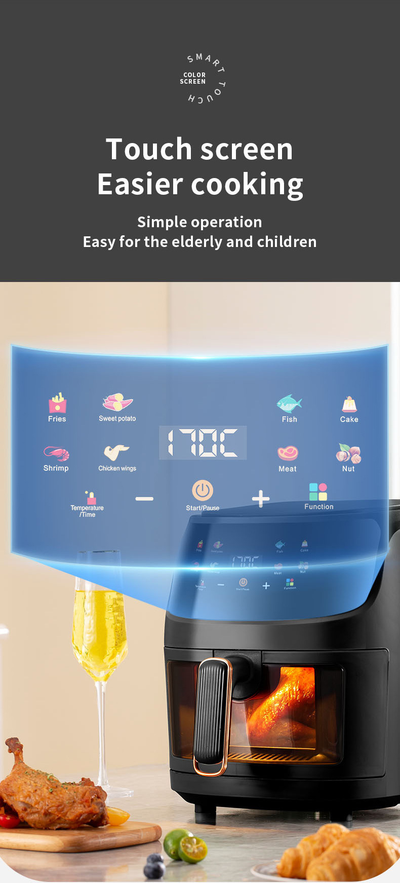 국경 간 에어 프리 비주얼 에어 프라이어 가정용 8L 대용량 컬러 스크린 지능형 전기 프라이어 감자 칩 기계 수출
