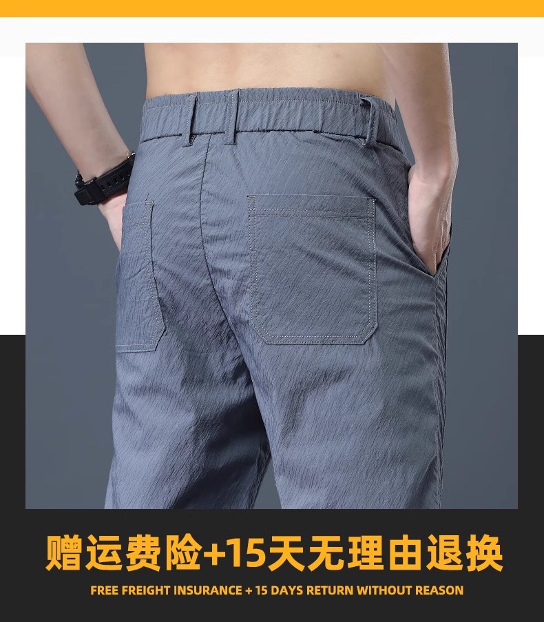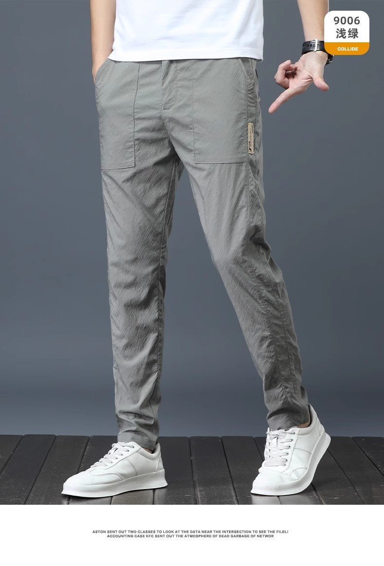 남성용 캐주얼 바지 여름 얇은 트렌디 브랜드 느슨한 스트레이트 아이스 실크 바지 2024 여름 남성용 빠른 건조 스포츠 바지스토어 가기