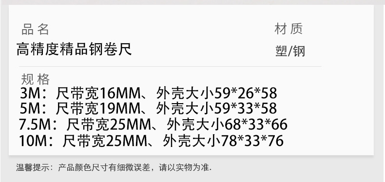 도매 멀티 사양 고정밀 강관 통치자 가정용 다기능 3 미터 5 미터 7.5 미터 10 미터 테이프 측정 목공 통치자스토어 가기