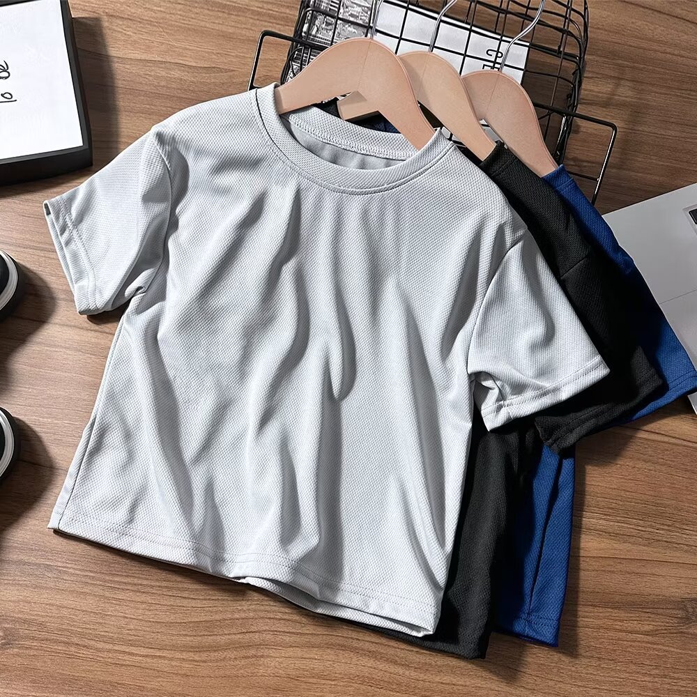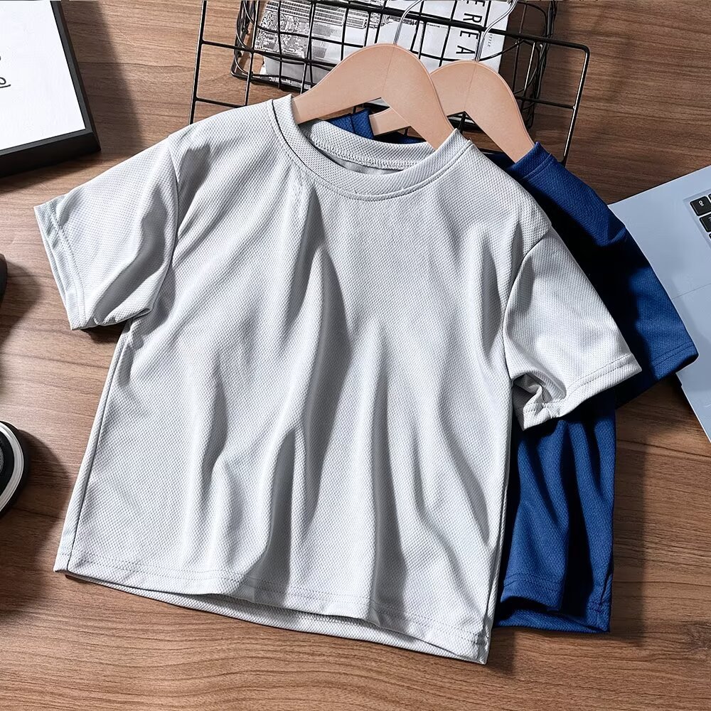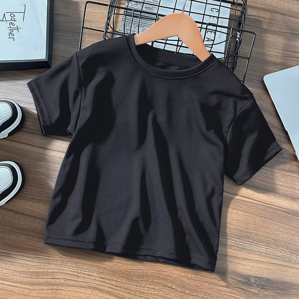 CUHK 어린이 여름 라운드 넥 반팔 티셔츠 아기 메쉬 통기성 반소매 여름 어린이 소년의 단색 탑