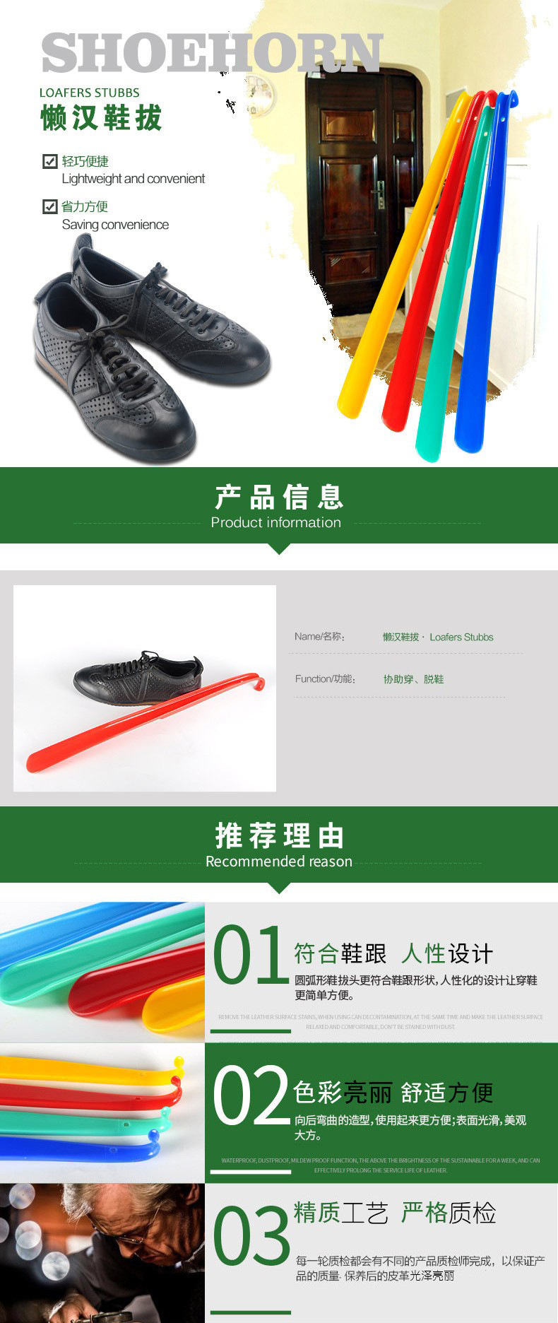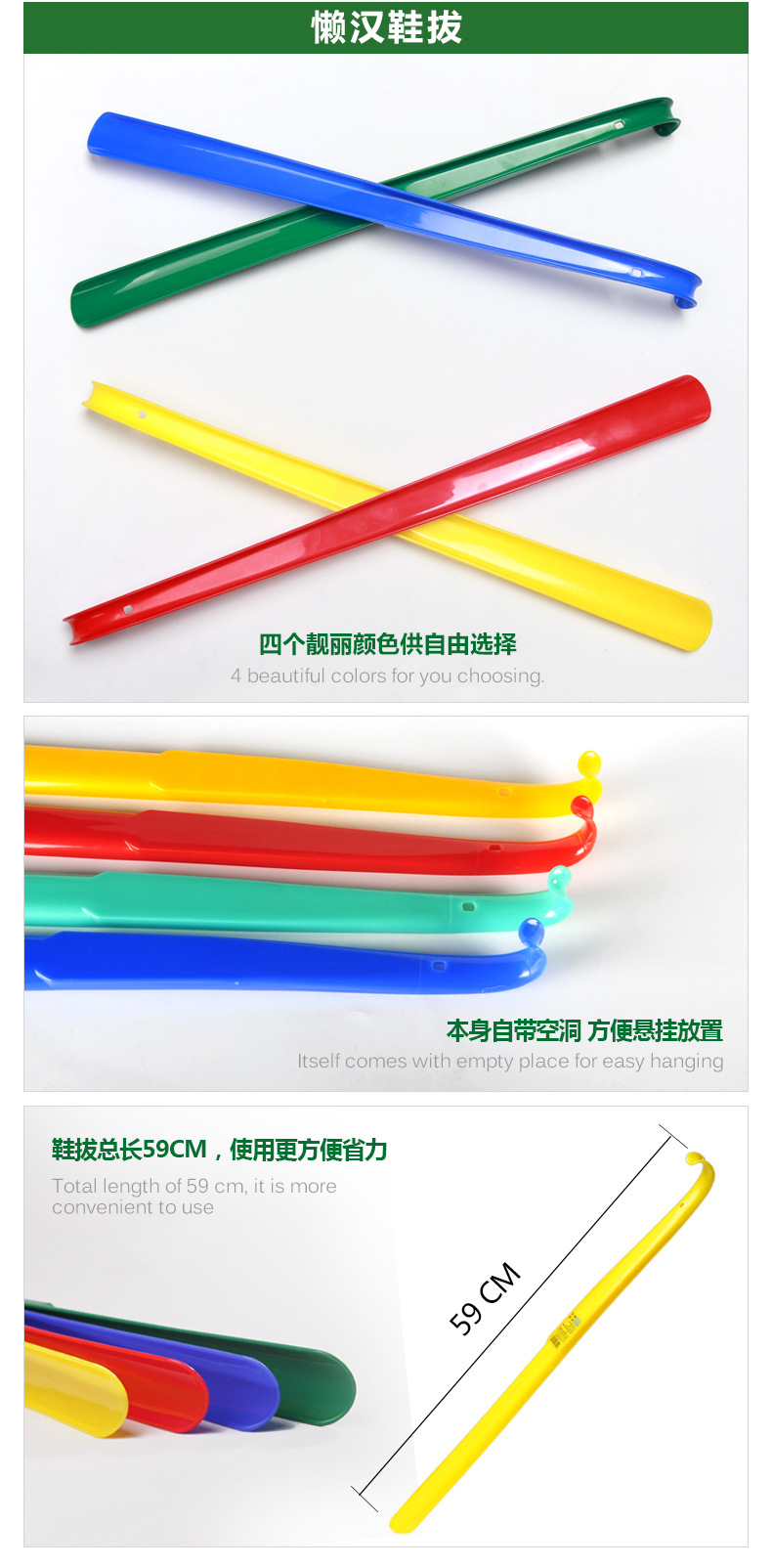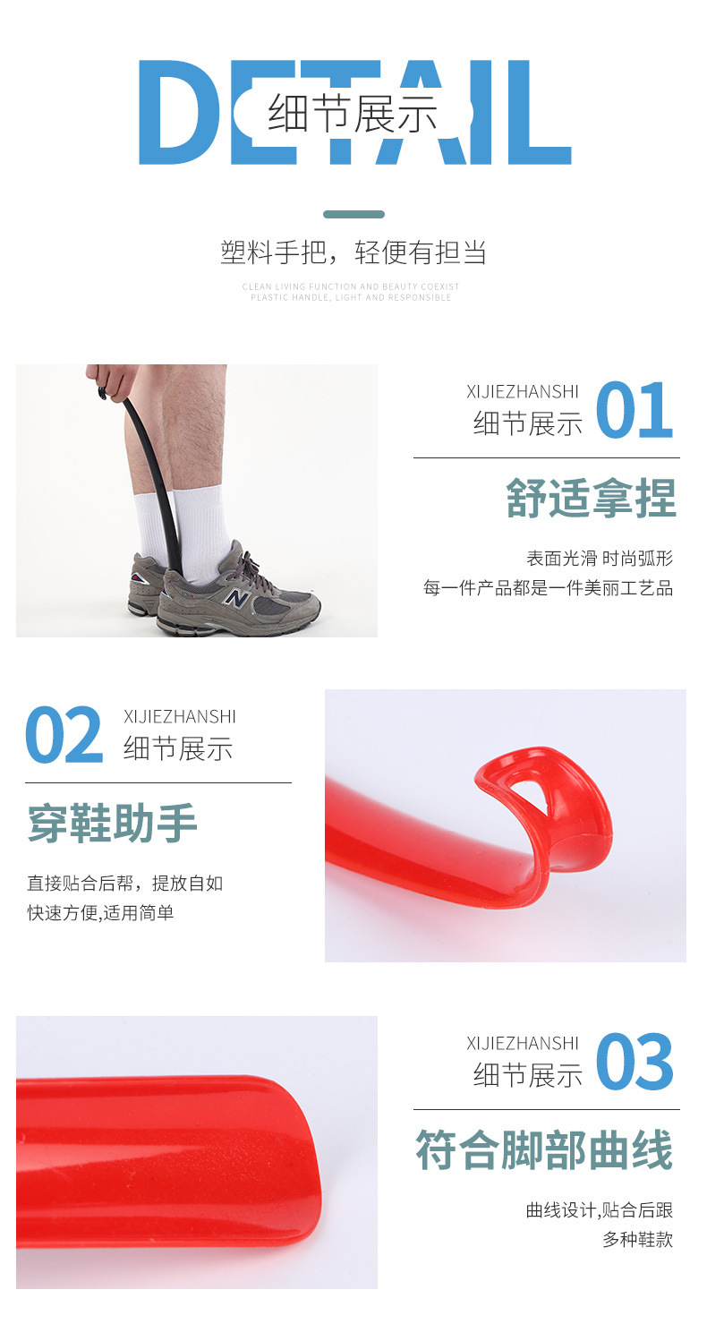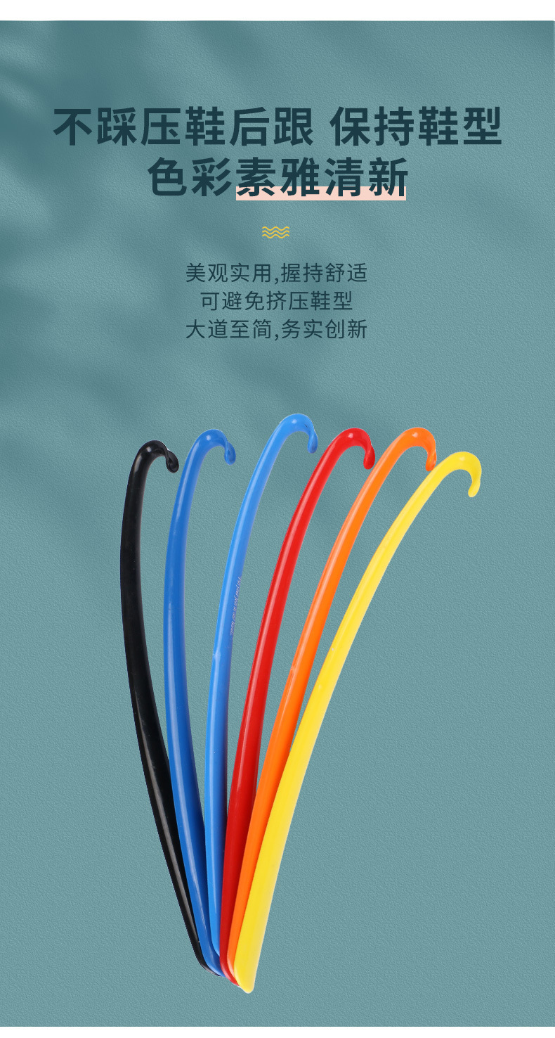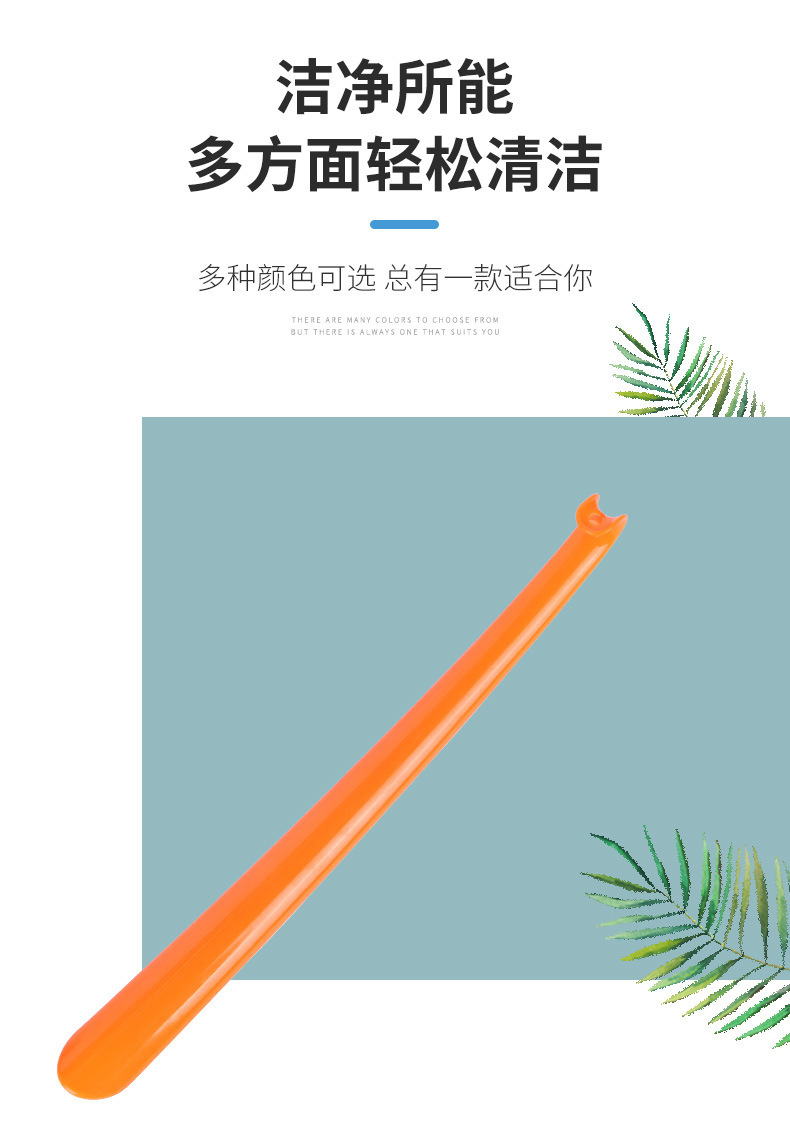 特点:此鞋拔顺直长把,方便提鞋,符合人体工学,使用顺手,并有效防止鞋子后帮由于受到长期的踩踏而变形,
