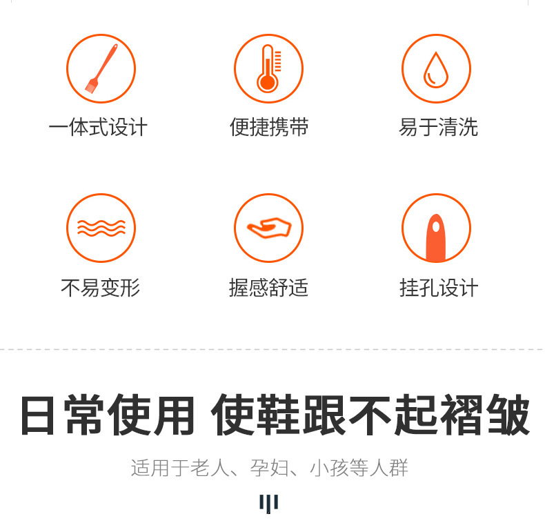 拔头平滑圆润,紧贴后跟,使用轻松、抽取顺畅,流线弧型设计,与鞋后跟弧度吻合,抽取灵活,不会损伤鞋与脚,