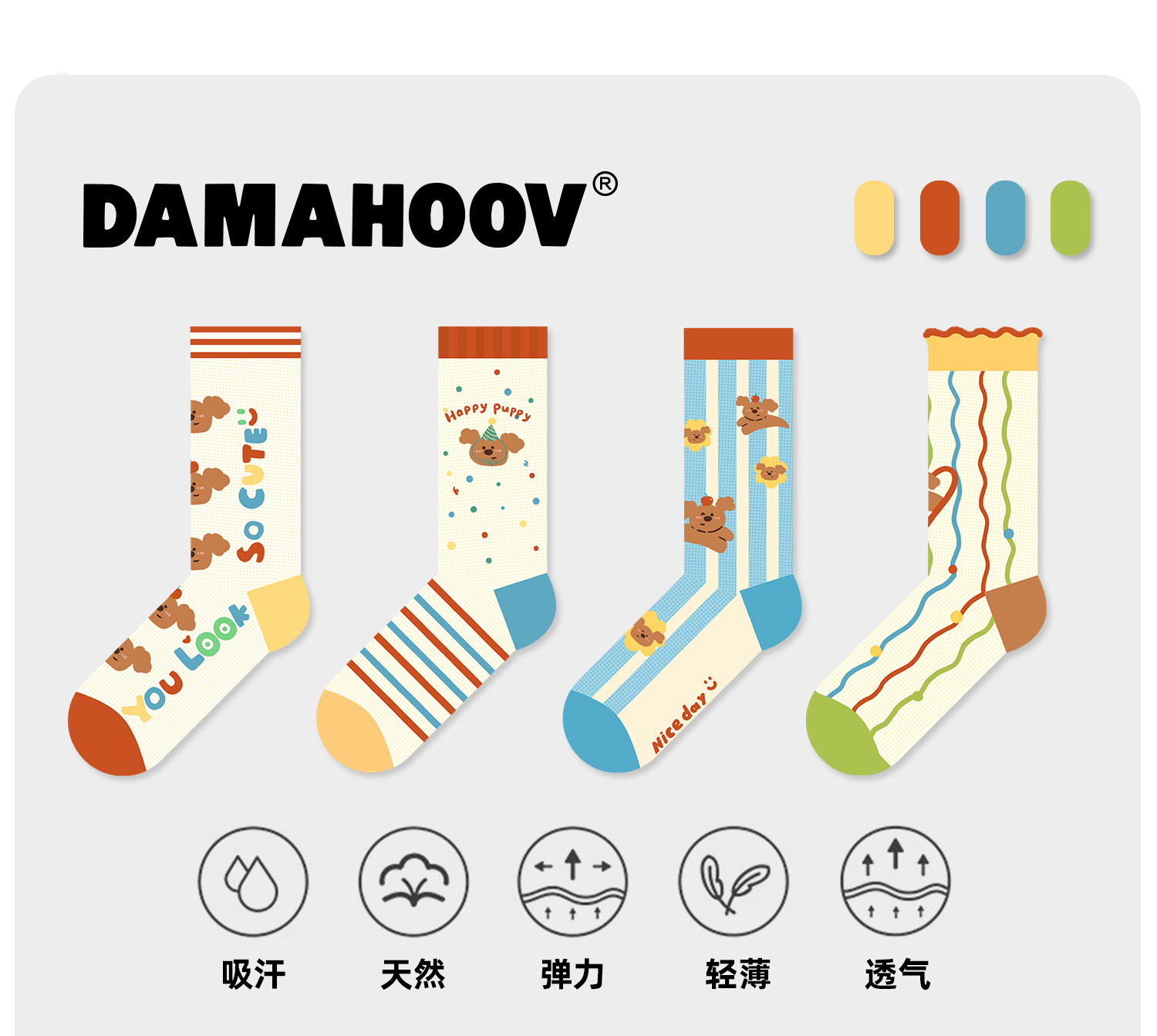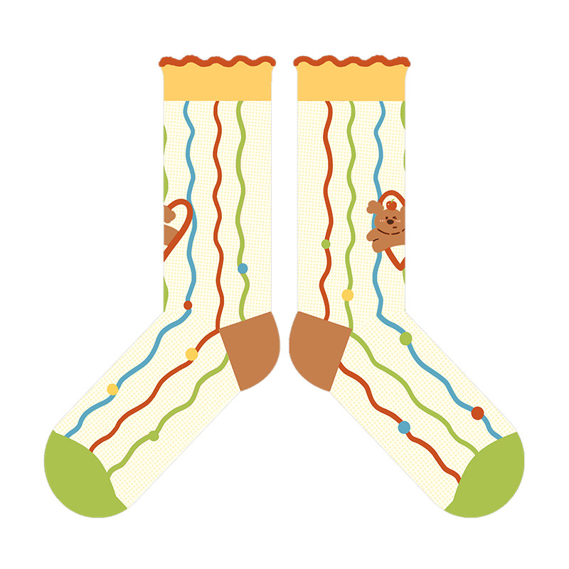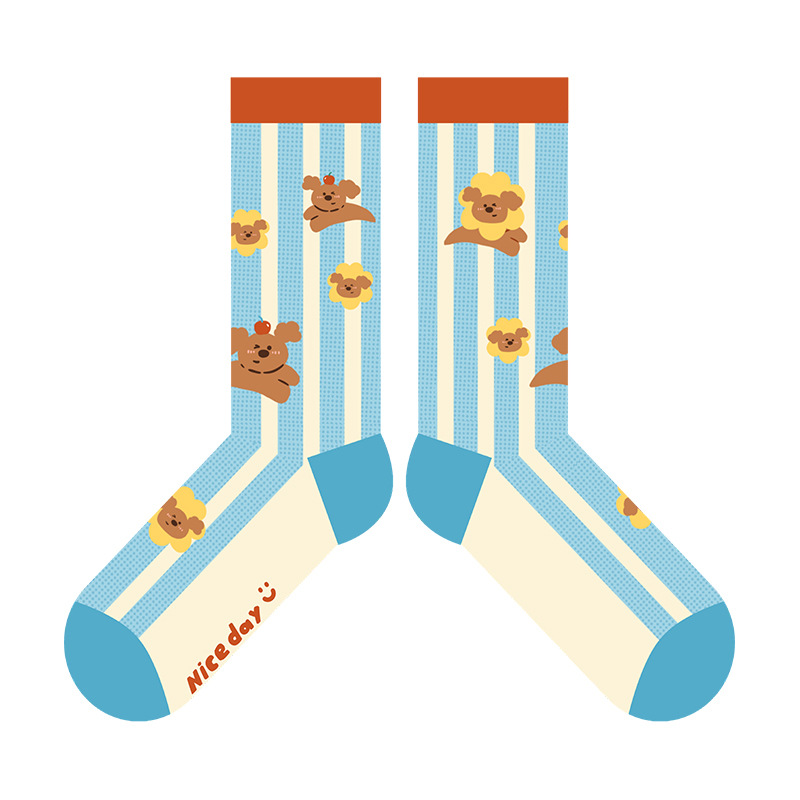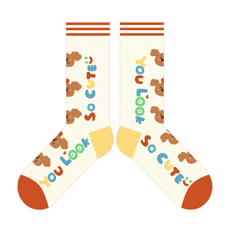 브랜드 오리지널 여름 얇은 유리 실크 스타킹 어린이 귀여운 만화 애플 강아지 미드 양말 패션 일러스트 코튼 양말스토어 가기
