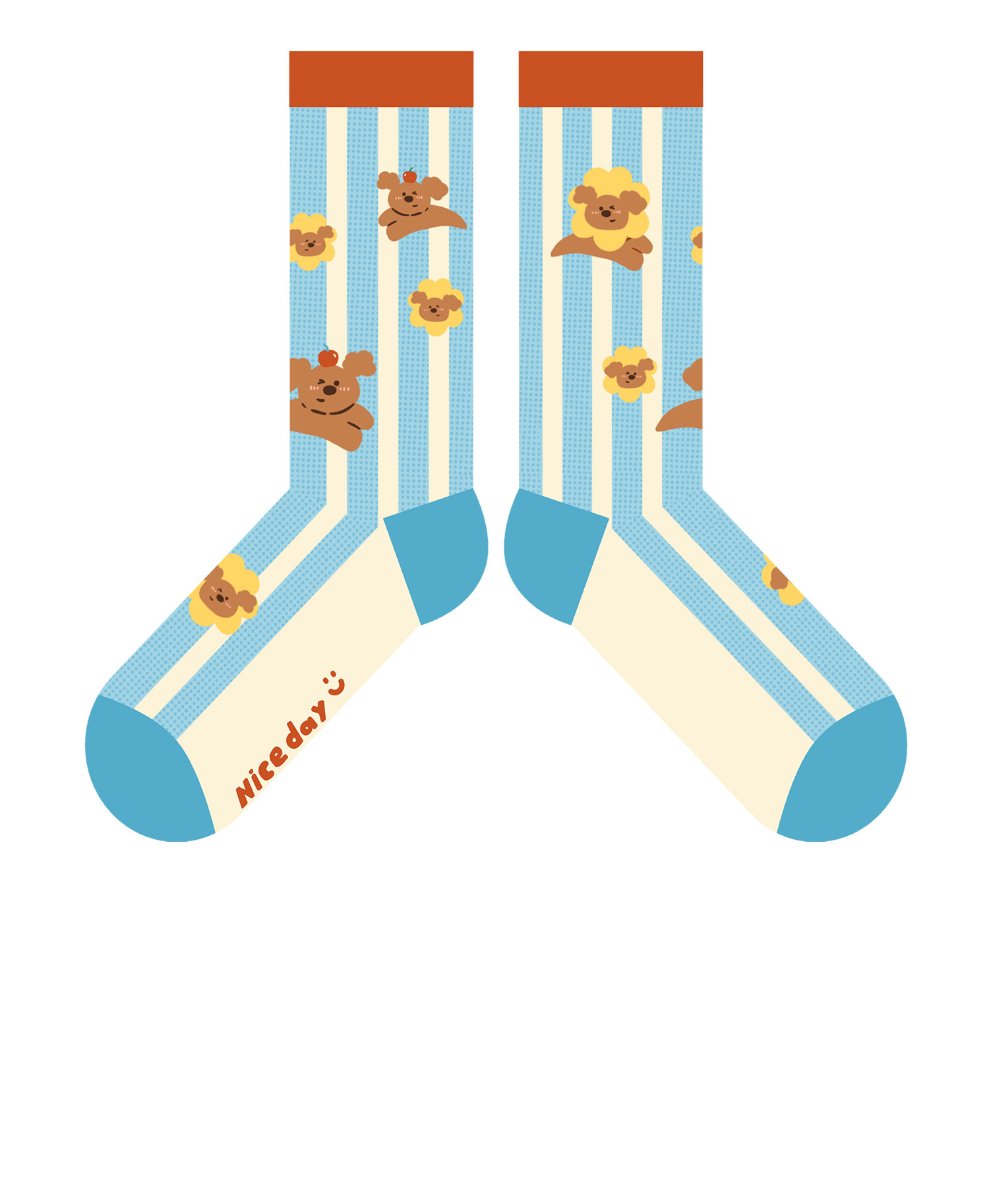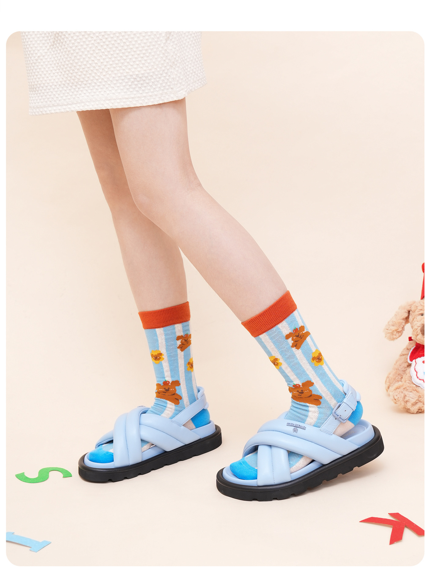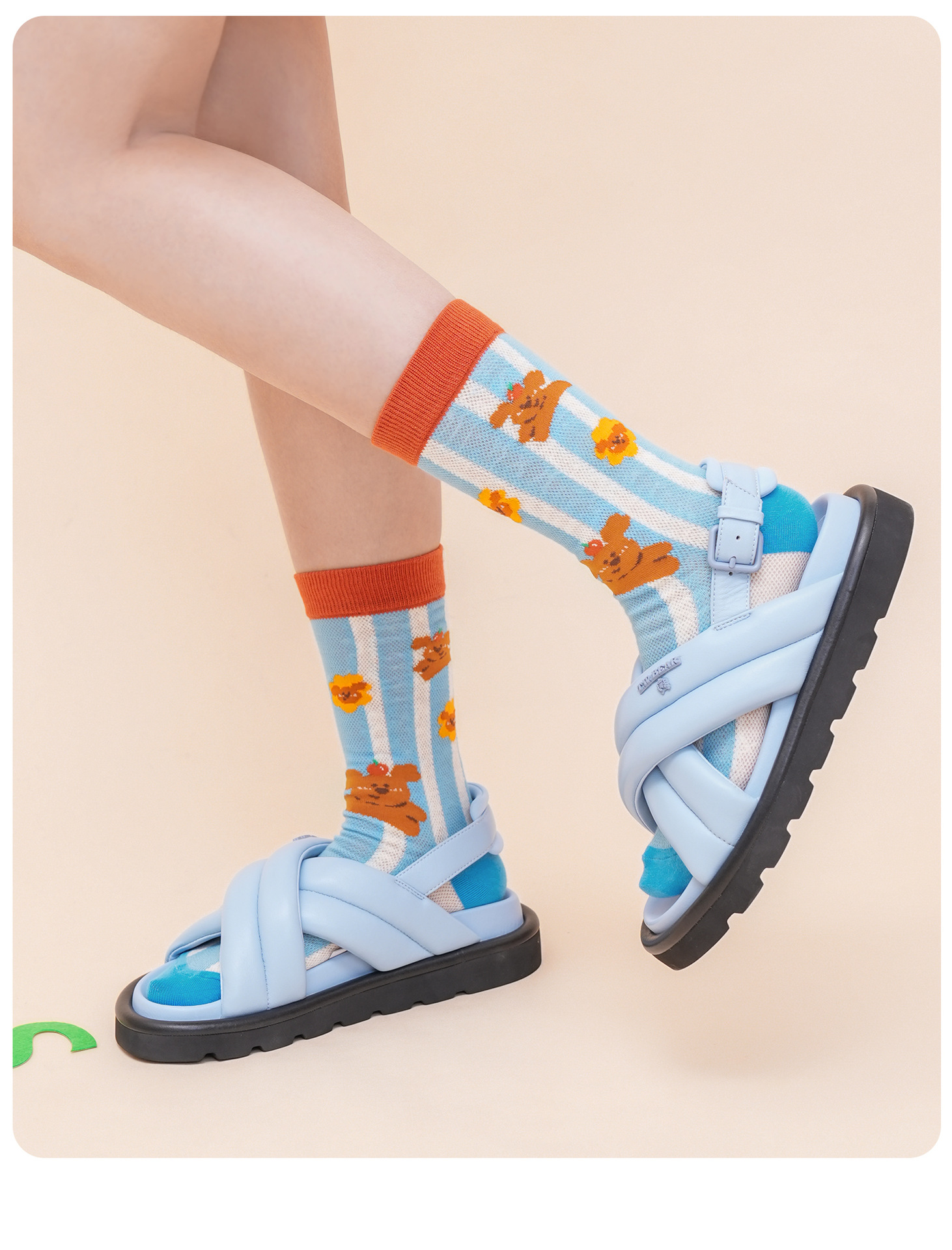 브랜드 오리지널 여름 얇은 유리 실크 스타킹 어린이 귀여운 만화 애플 강아지 미드 양말 패션 일러스트 코튼 양말스토어 가기