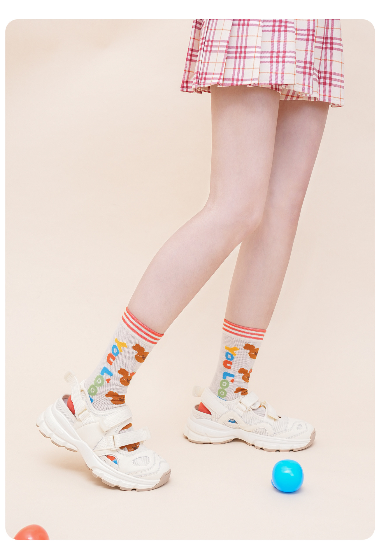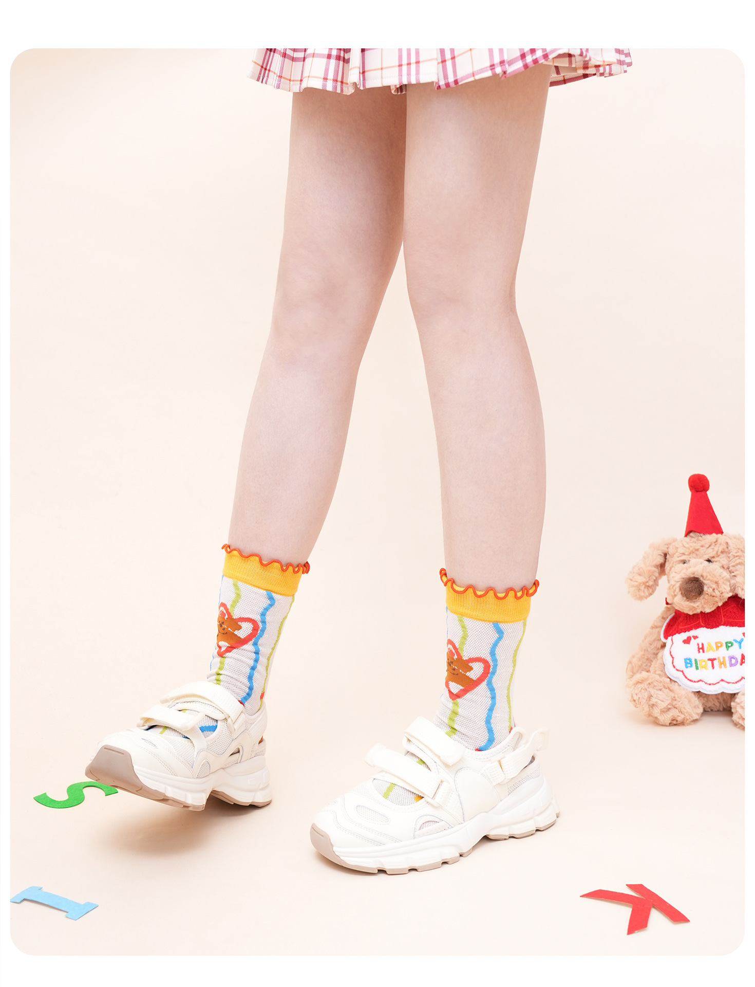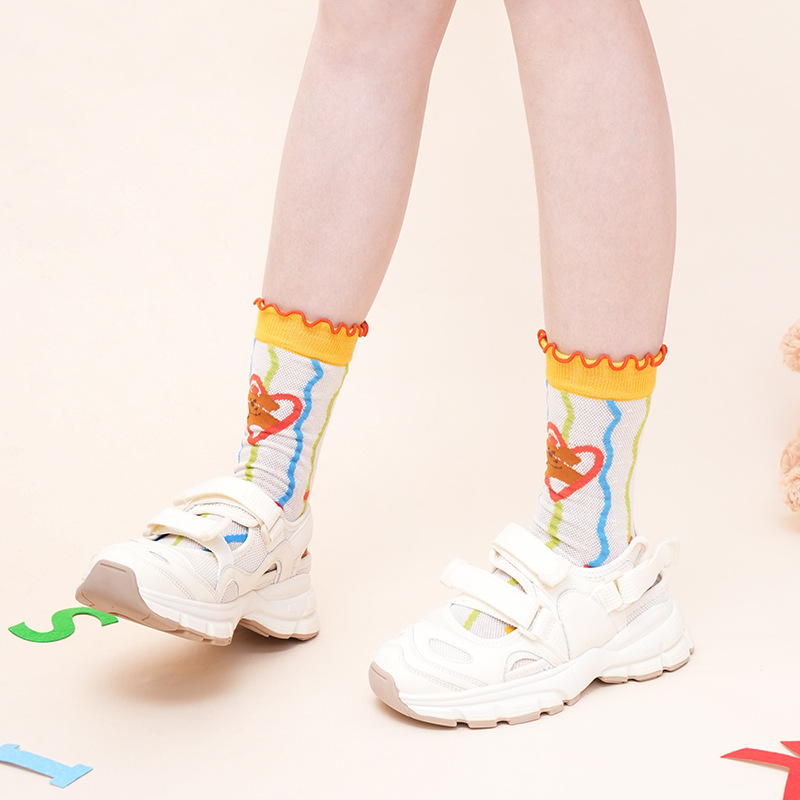 브랜드 오리지널 여름 얇은 유리 실크 스타킹 어린이 귀여운 만화 애플 강아지 미드 양말 패션 일러스트 코튼 양말