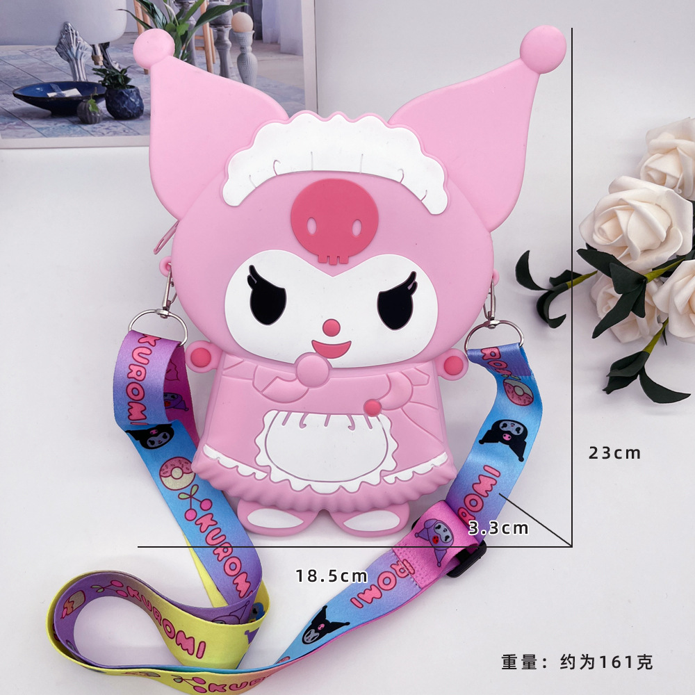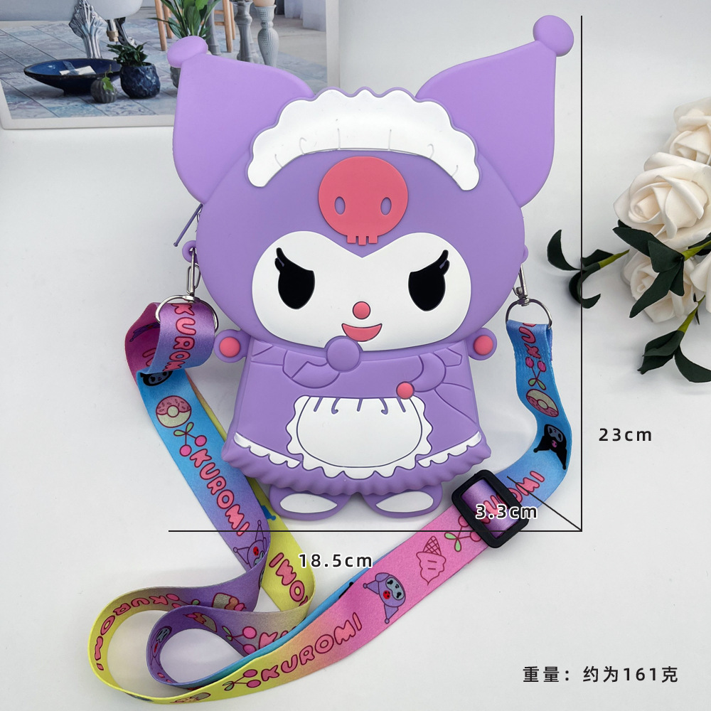 새로운 귀여운 메이드 쿨로 미 실리콘 동전 지갑 소녀 패션 모든 일치 어린이 크로스 바디 가방 만화 작은 지갑