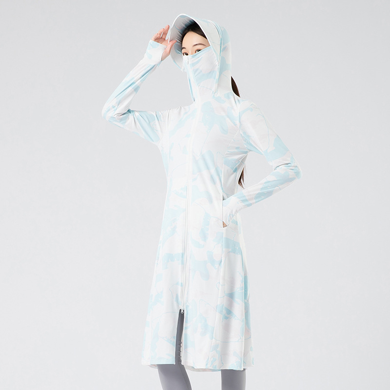 Mo Xun Anti-Fairy Cloud 가운 긴 태양 보호 의류 여성 분리 가능한 모자 긴 태양 보호 의류 여성 바디 보호 의류