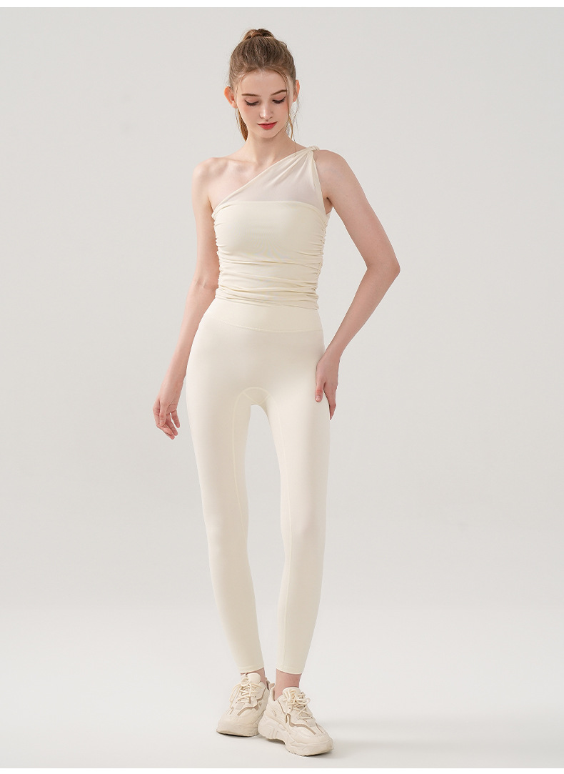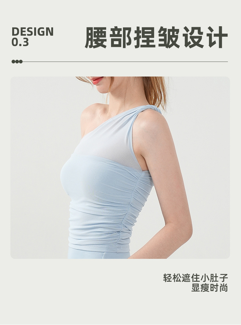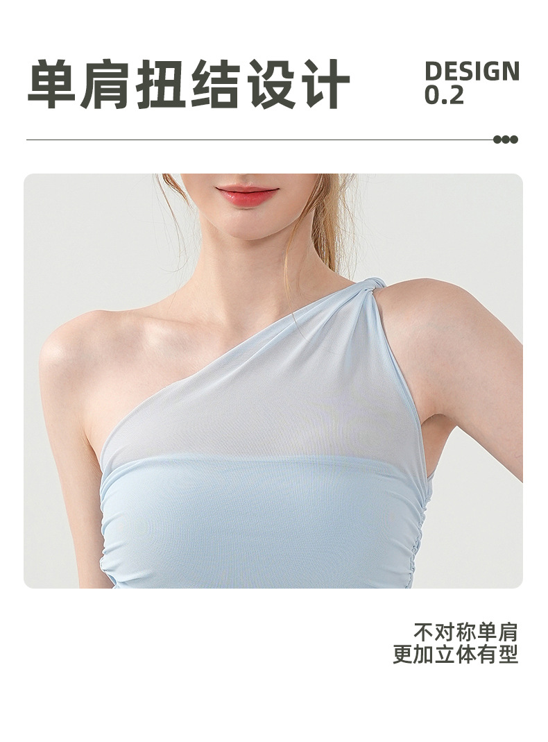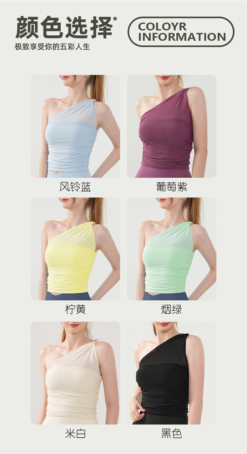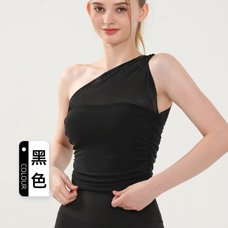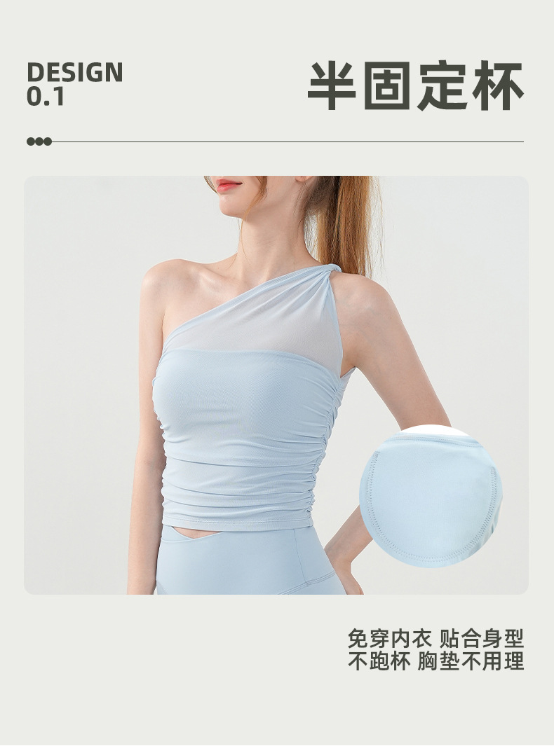 메쉬 통기성 스포츠 속옷 여성용 비스듬한 어깨 끈 외부 착용 피트니스 브래지어 통합 고정 컵 요가 의류 조끼