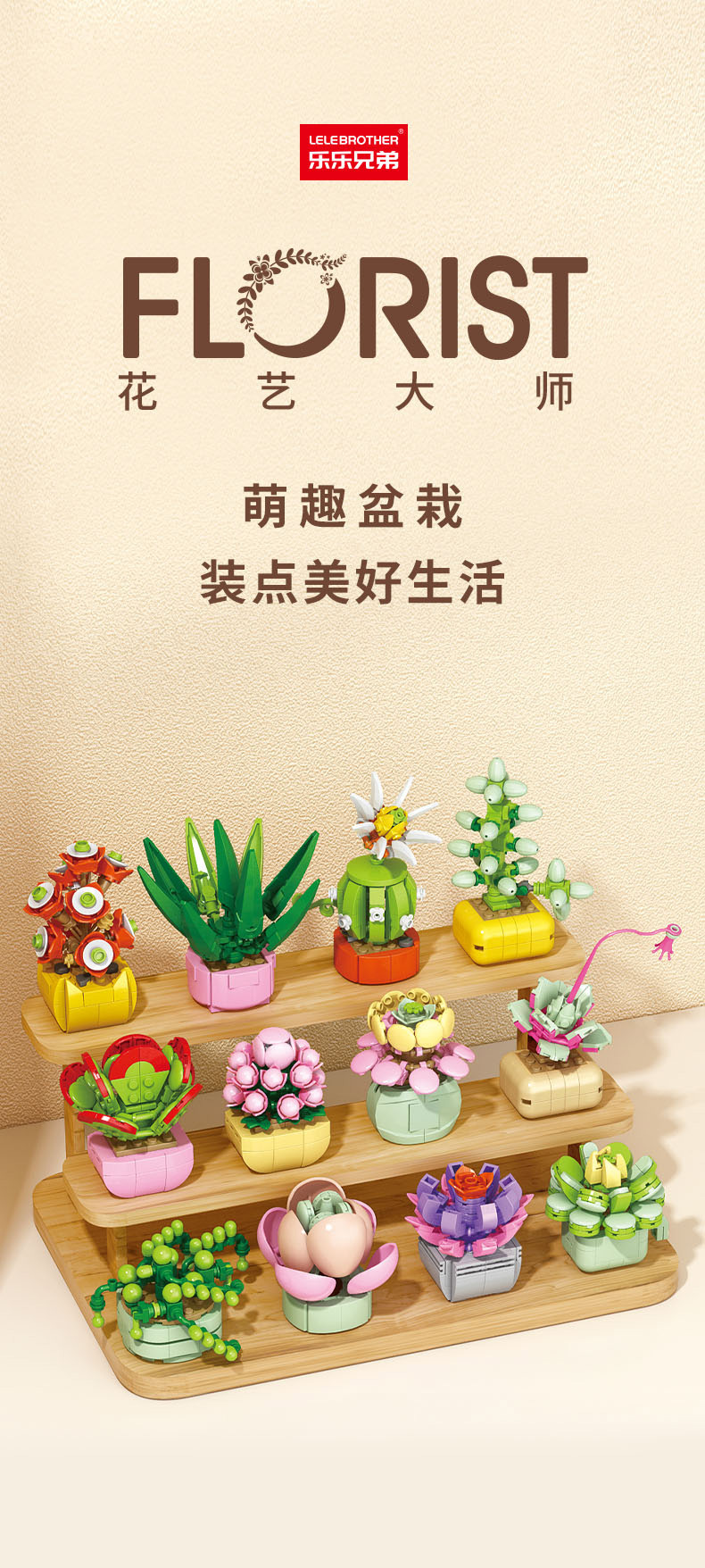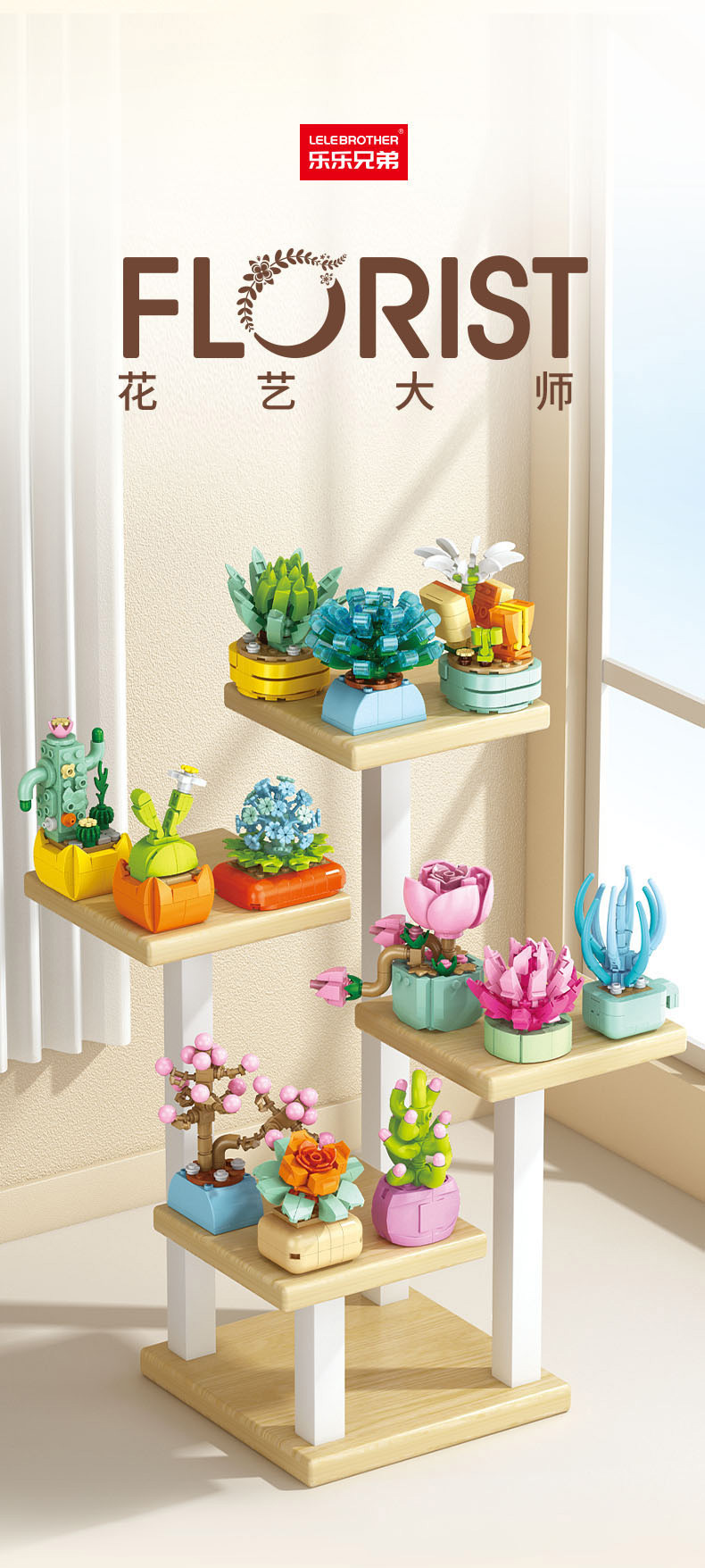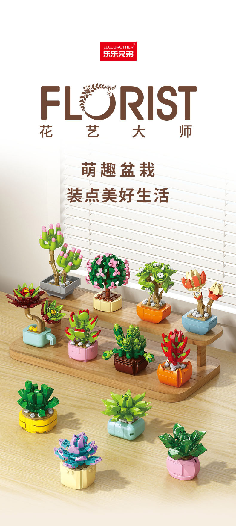 레레브라더스 다육식물 미니 플랜트 블록 꽃다발 어린이 교육용 조립 수공예 장난감 소녀 선물스토어 가기