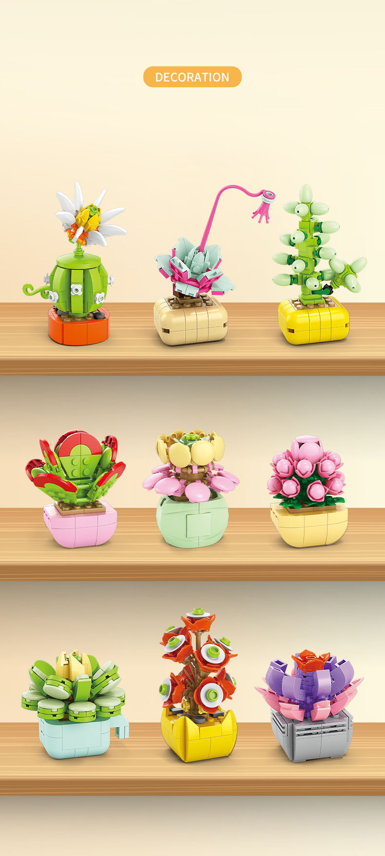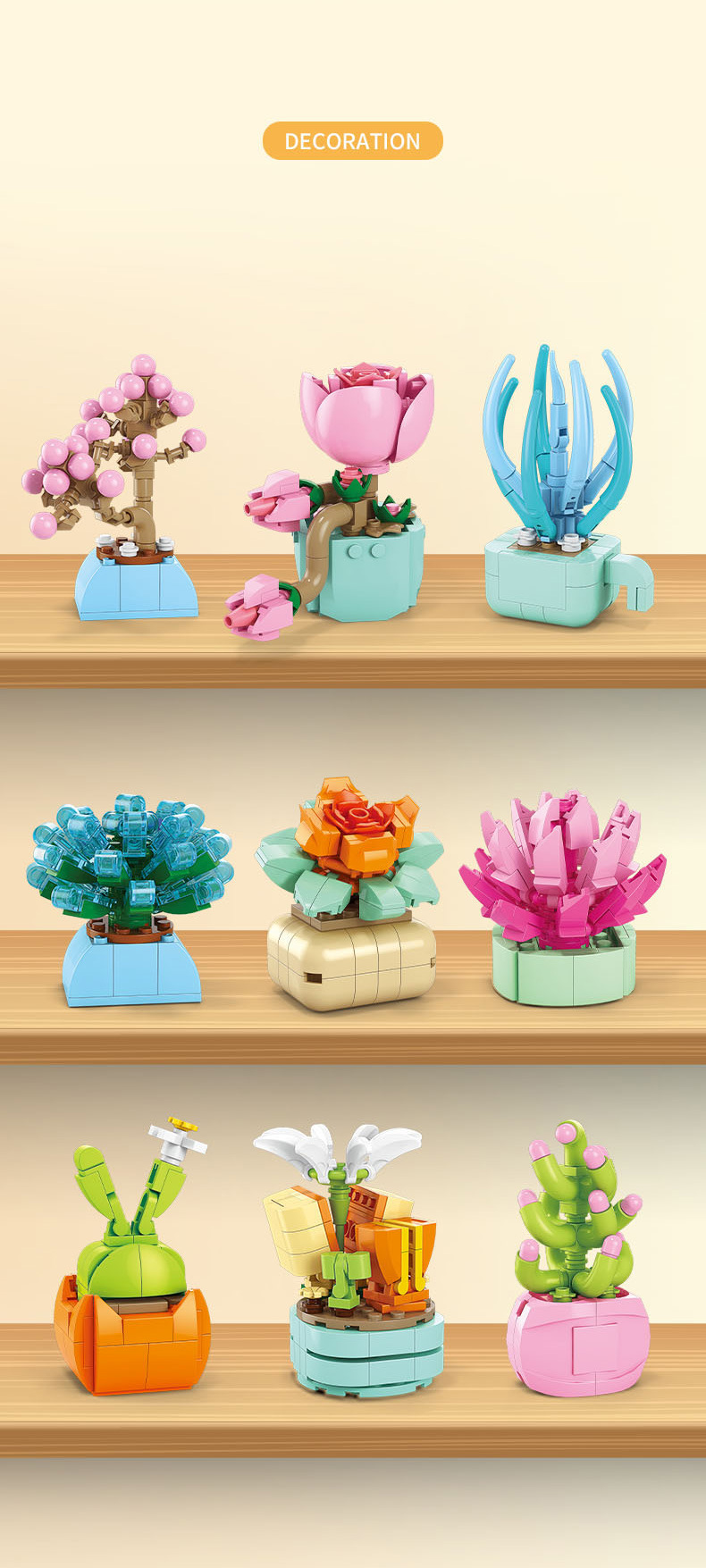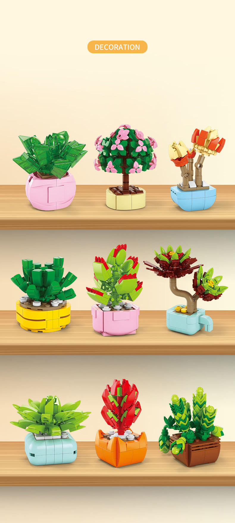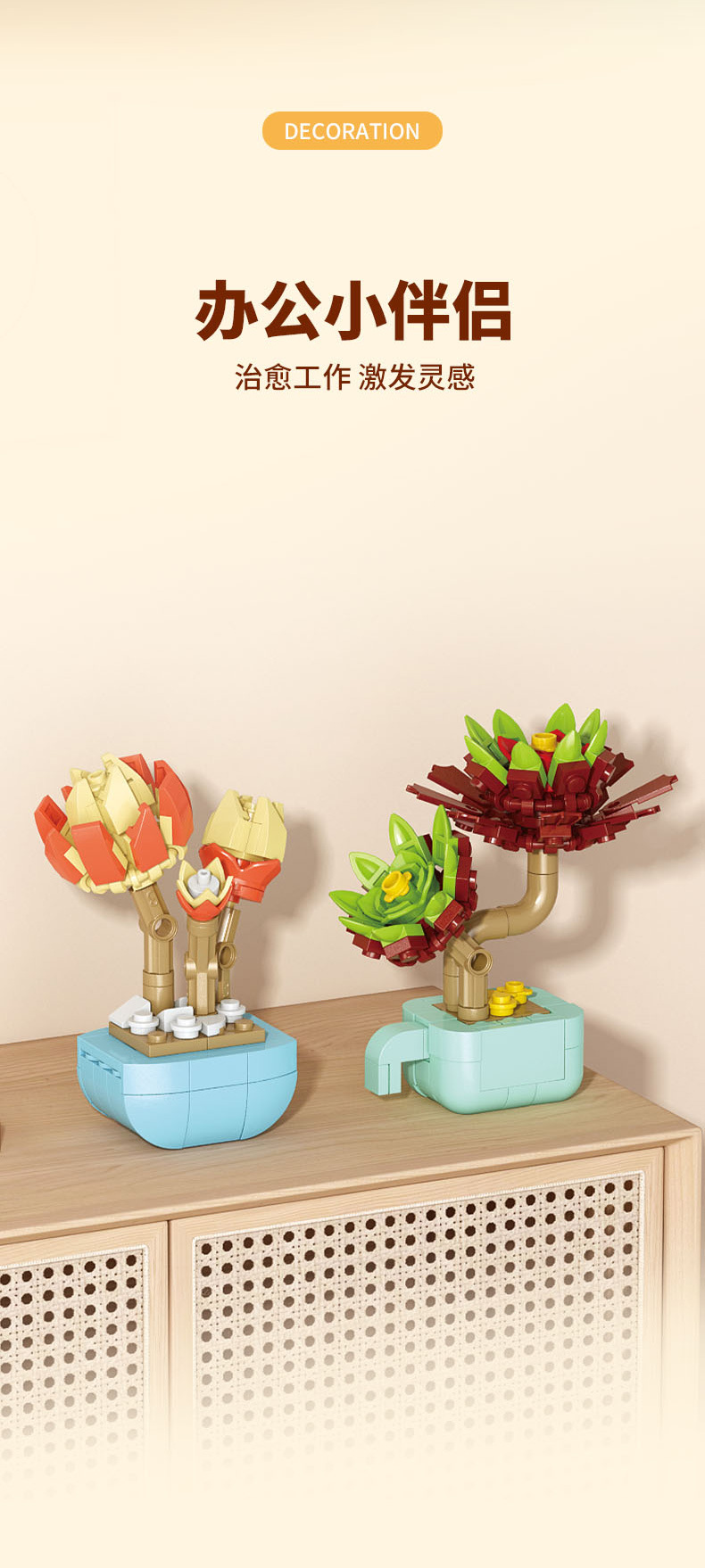 레레브라더스 다육식물 미니 플랜트 블록 꽃다발 어린이 교육용 조립 수공예 장난감 소녀 선물스토어 가기