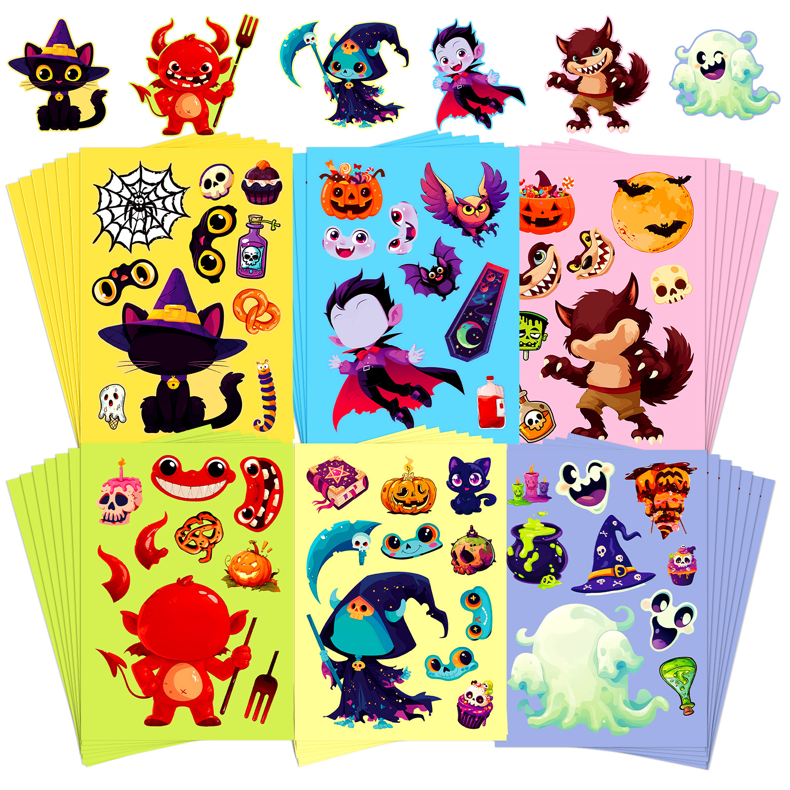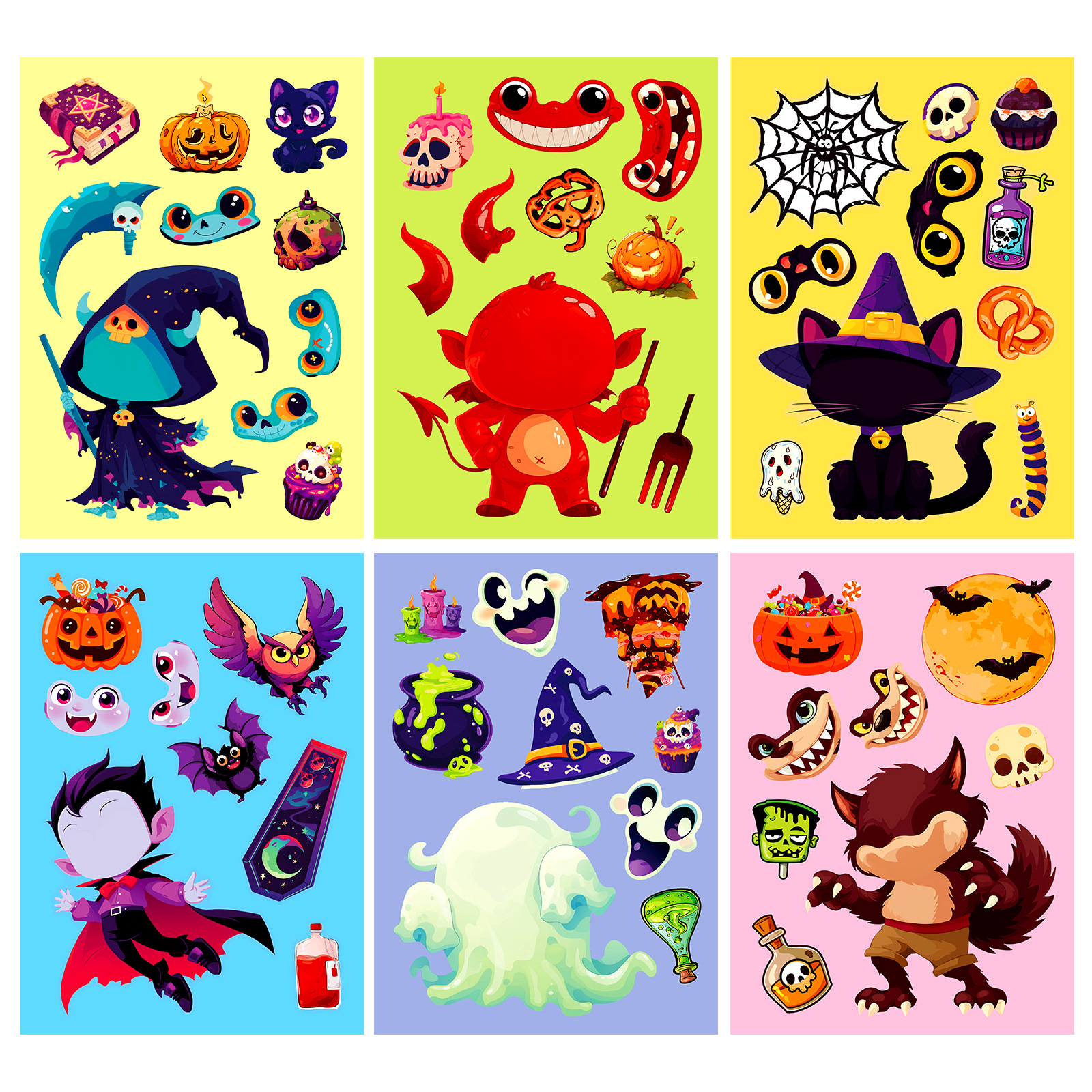6 장/팩 할로윈 얼굴 변경 스티커 만화 낙서 검은 고양이 뱀파이어 DIY 퍼즐 창조적 인 퍼즐 스티커 국경스토어 가기