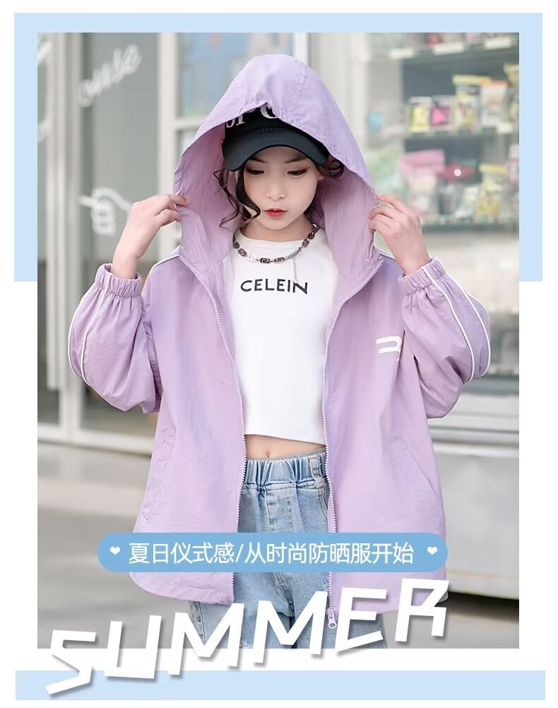 소녀 경량 통기성 재킷 여름 재킷 2024 새로운 스타일 중대형 어린이 소녀 카디건 탑 빠른 건조 방풍스토어 가기