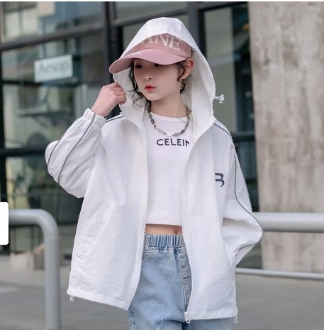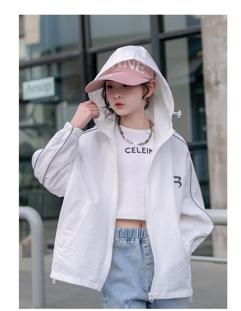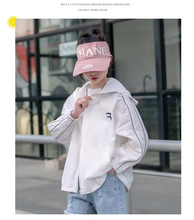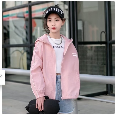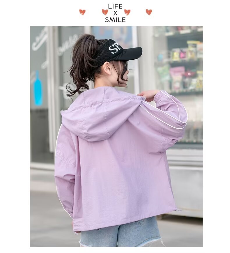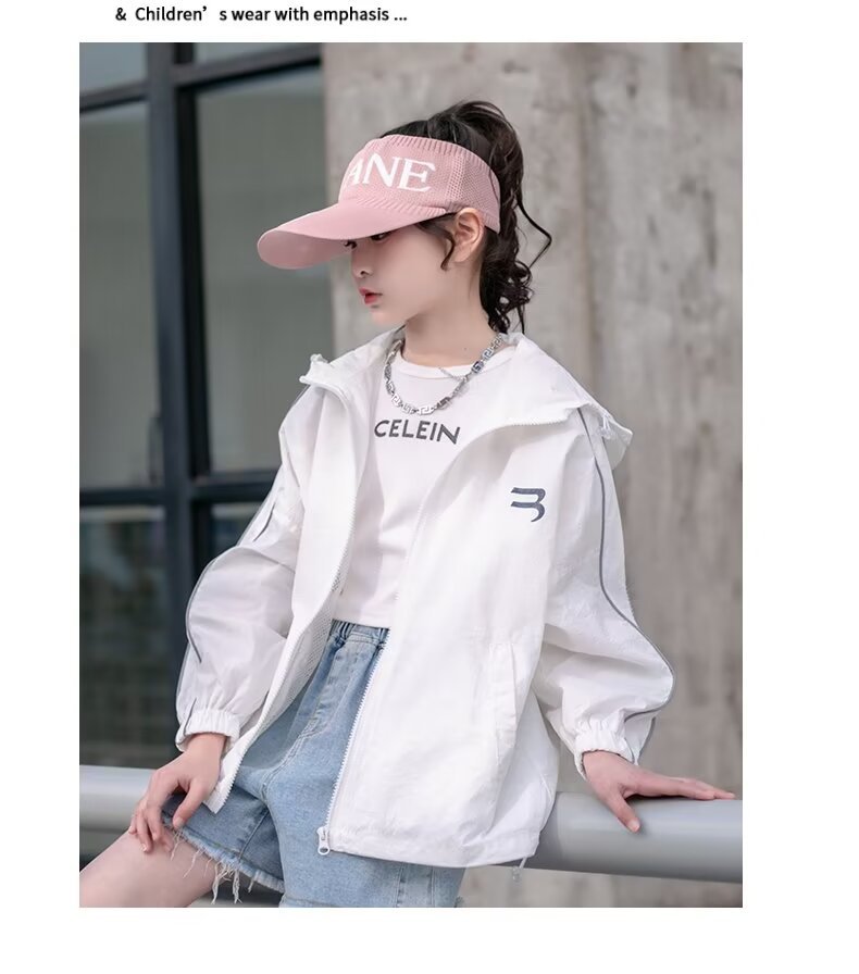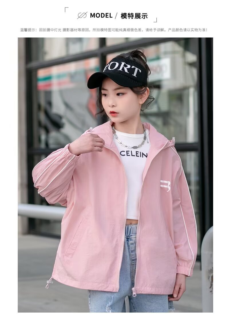 소녀 경량 통기성 재킷 여름 재킷 2024 새로운 스타일 중대형 어린이 소녀 카디건 탑 빠른 건조 방풍