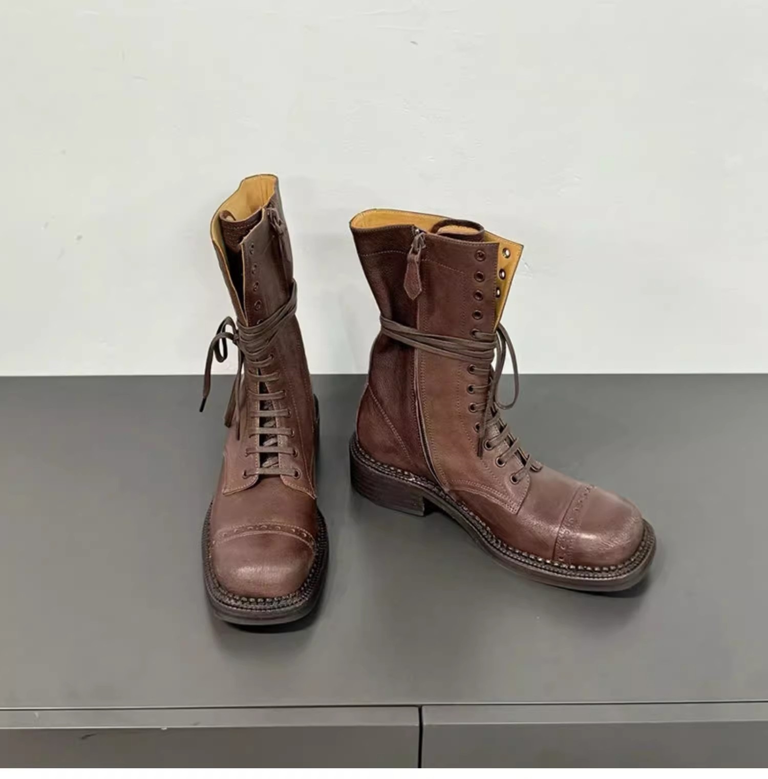 마틴 부츠 여성 2024 가을 및 겨울 새로운 미우 홈 부츠 레트로 스타일 강화 부츠 짧은 부츠 레이스 업 오토바이 부츠스토어 가기