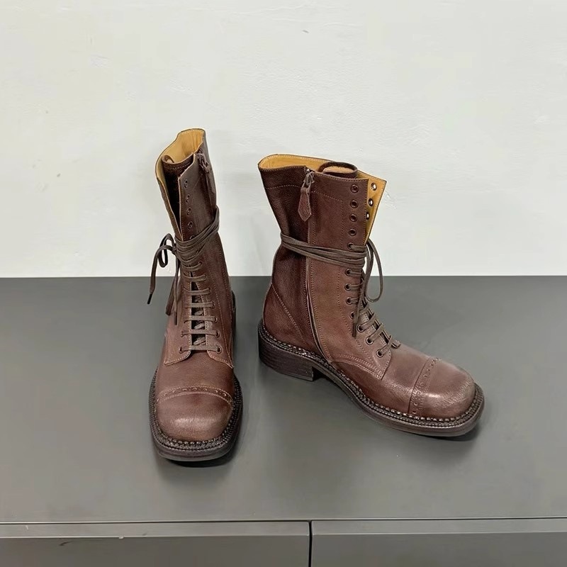 마틴 부츠 여성 2024 가을 및 겨울 새로운 미우 홈 부츠 레트로 스타일 강화 부츠 짧은 부츠 레이스 업 오토바이 부츠