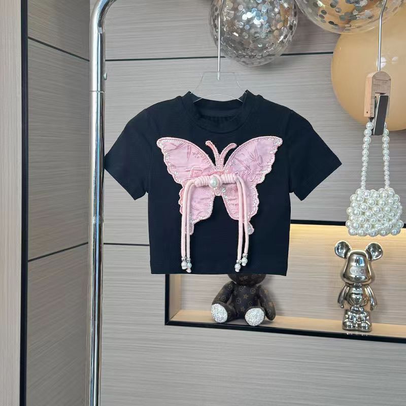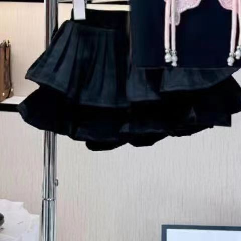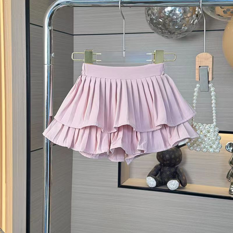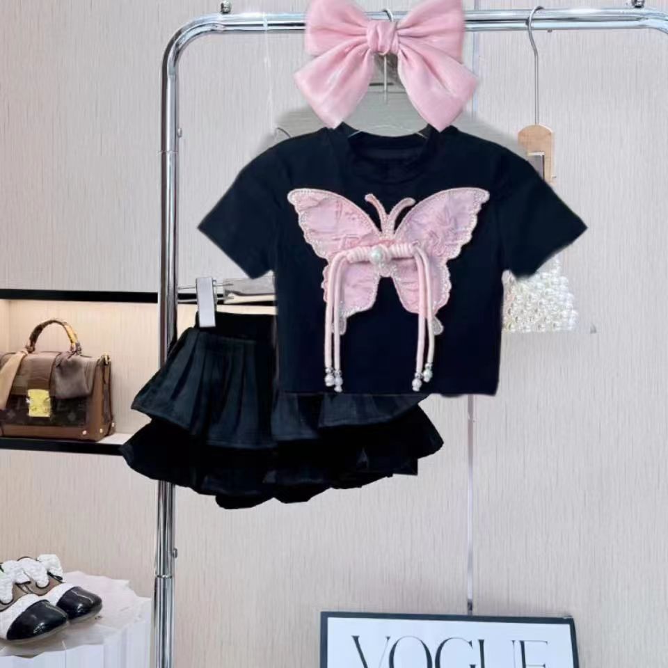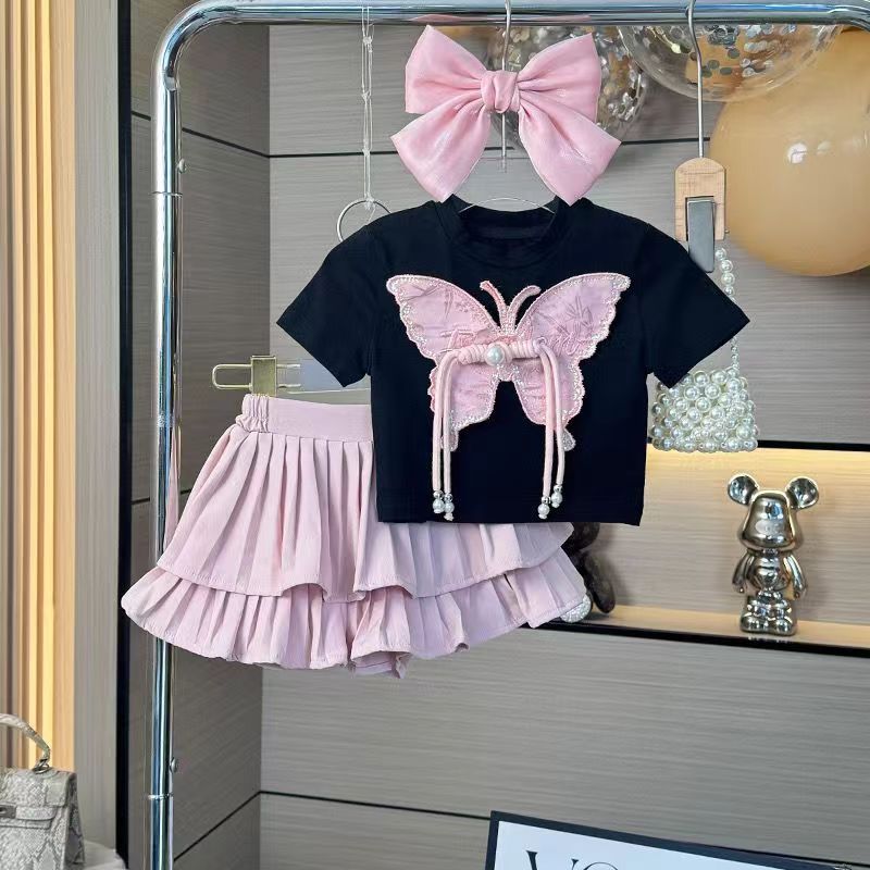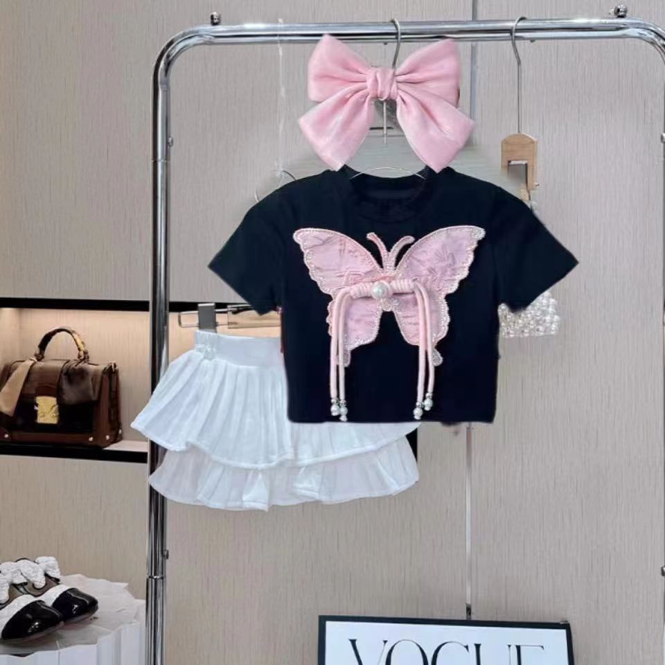 여자 여름 세트 2024 새로운 아기 세련된 새로운 중국 스타일 짧은 소매 패션 케이크 주름 치마 캐주얼 세트