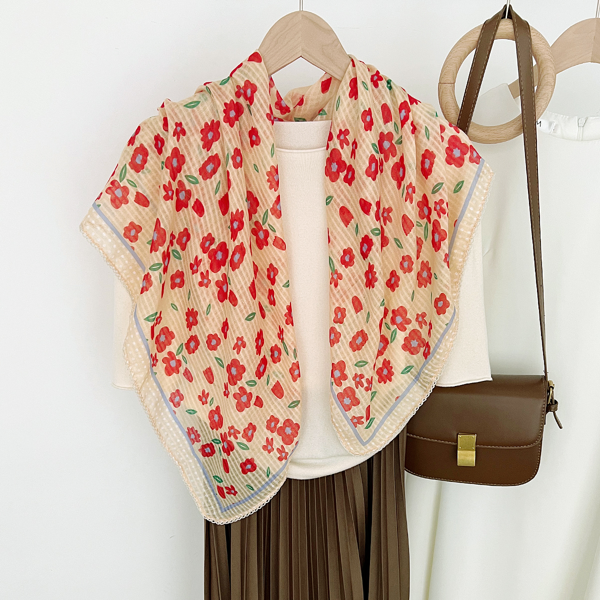 여성을 위한 여름 상큼한 꽃무늬 면 및 리넨 사각 스카프, 2025년 봄 여행용 새 스타일, 다용도 실크 스카프