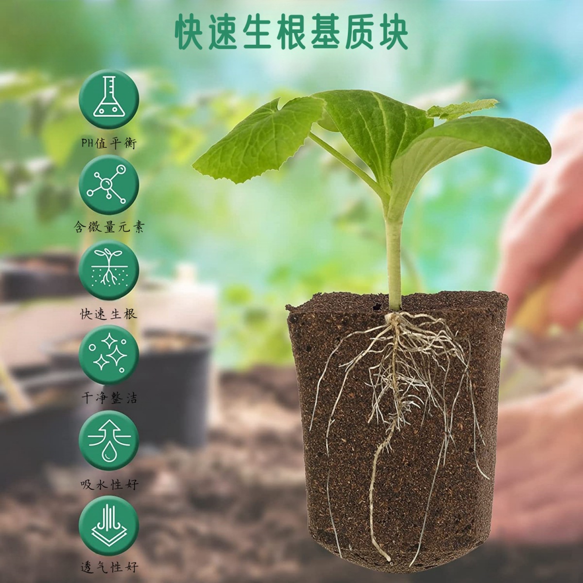 该系列育苗块适用于种子繁育、生根以及水培系统。专门为种子和插条配置了插孔,不伤根不伤苗。填充基质可适用于各种不同规格的穴盘,方便生产并提高效率。