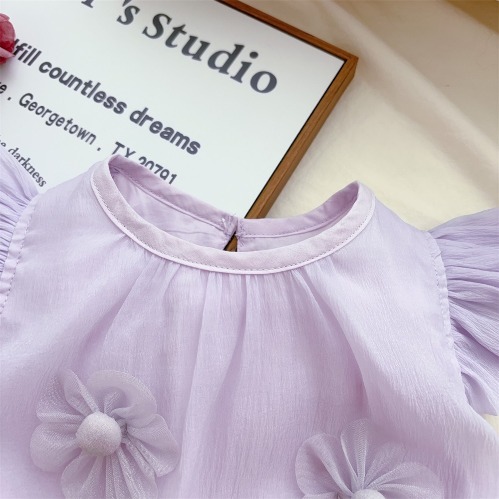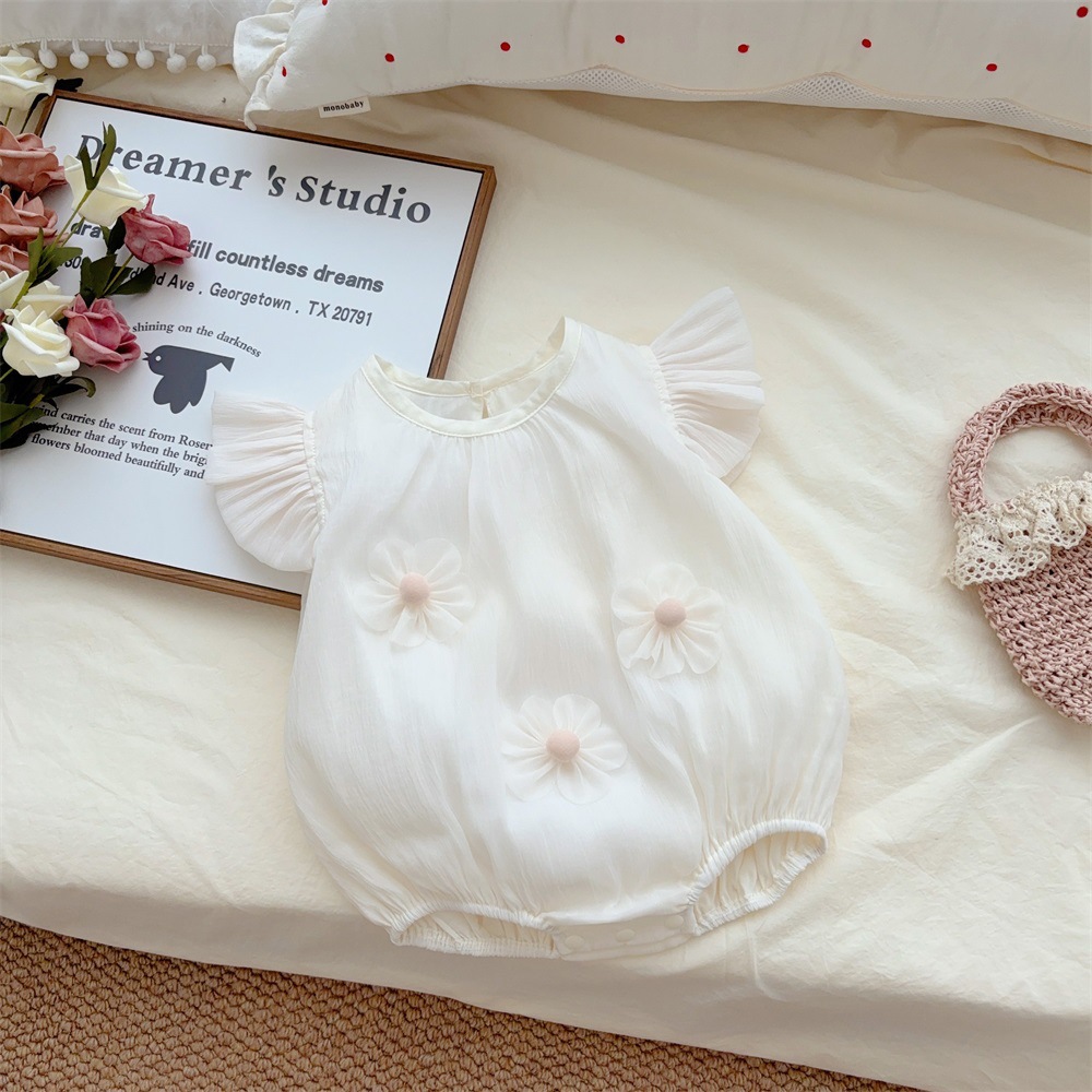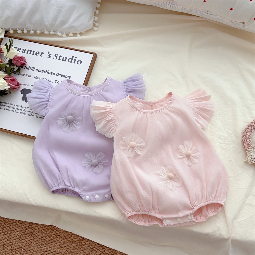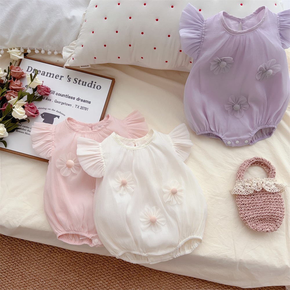 아기 옷 여름 Instagram Ins 달콤한 얇은 옷 0-1 세 아기 소녀 짧은 등반 작은 비행 소매 쉬폰 꽃 등반 세트