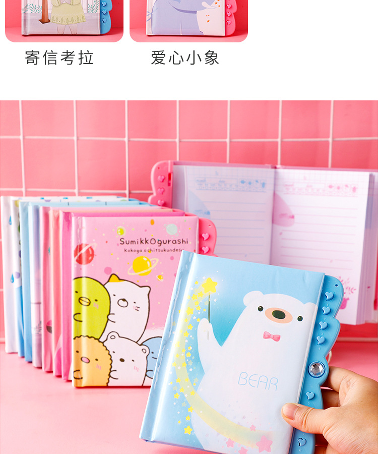 창조적 인 만화 암호 책 자물쇠 일기 학생 노트북 손 계정 책 초등학교 소녀 메모장 컬러 페이지스토어 가기
