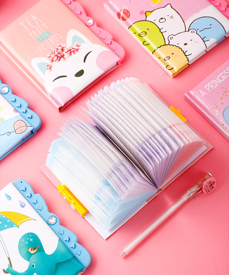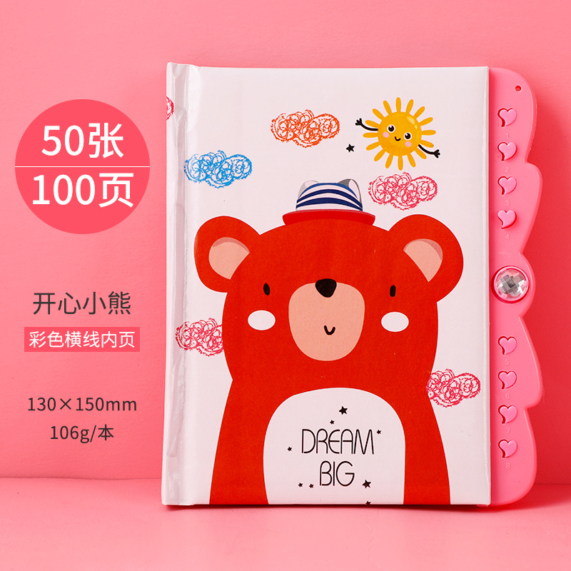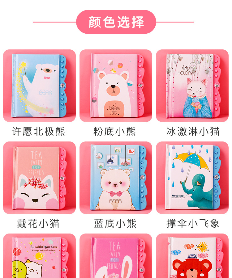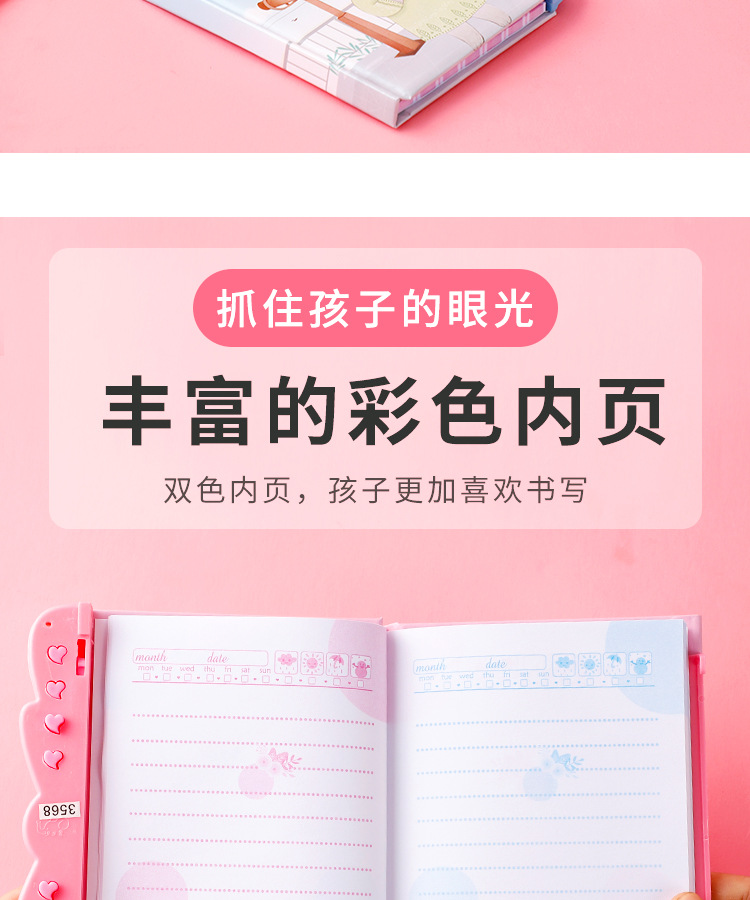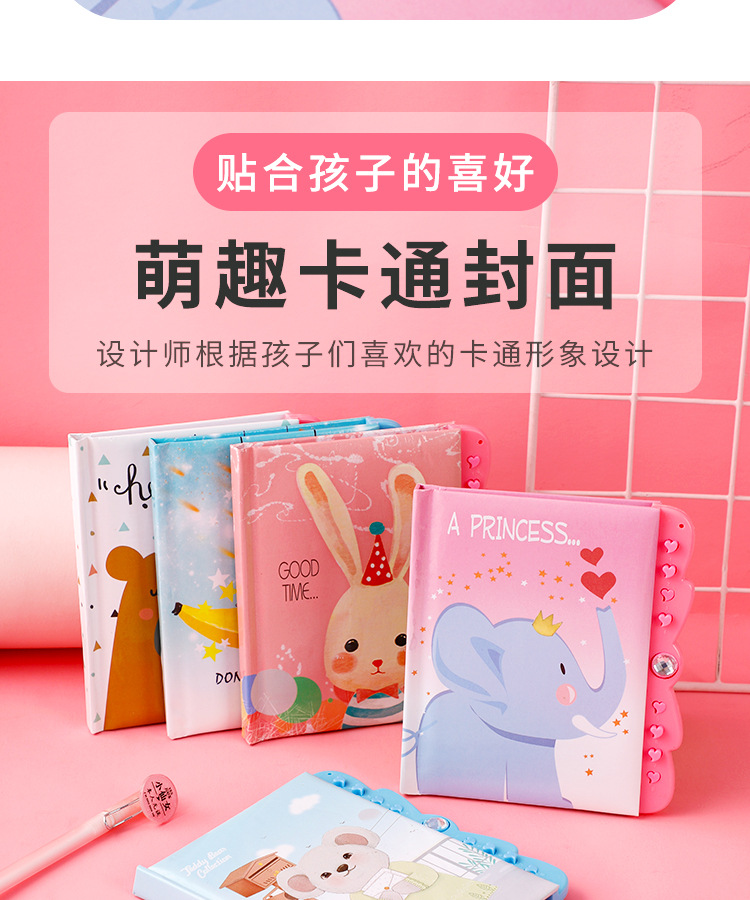 창조적 인 만화 암호 책 자물쇠 일기 학생 노트북 손 계정 책 초등학교 소녀 메모장 컬러 페이지