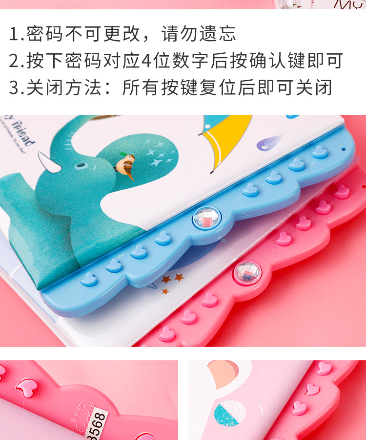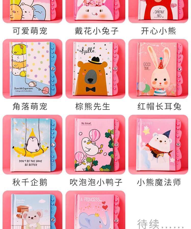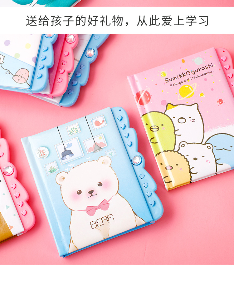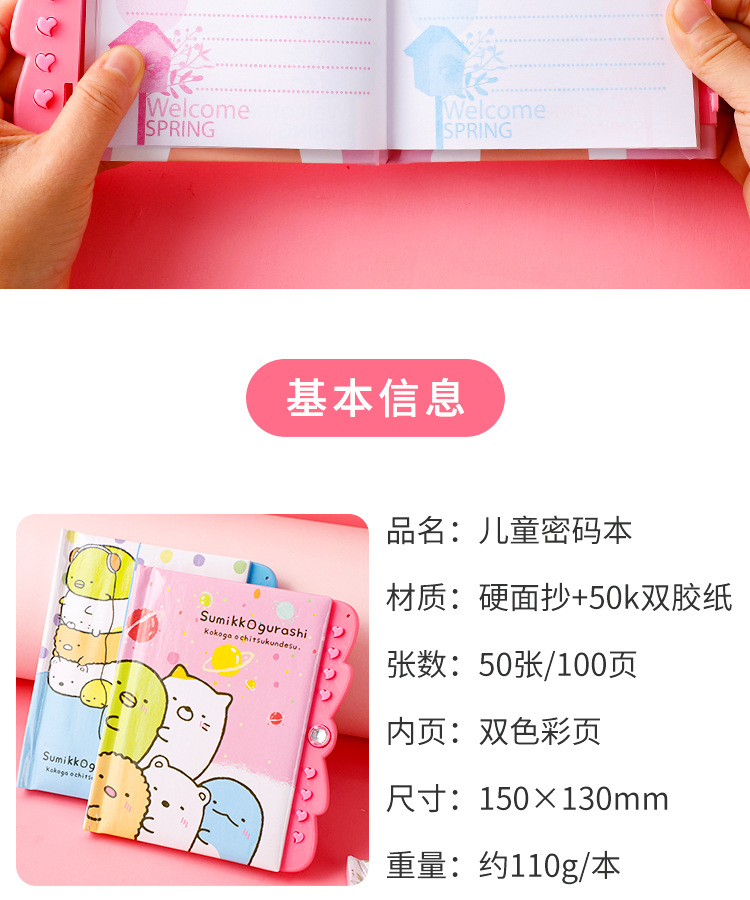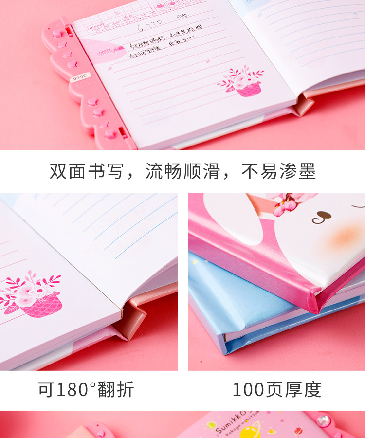 창조적 인 만화 암호 책 자물쇠 일기 학생 노트북 손 계정 책 초등학교 소녀 메모장 컬러 페이지