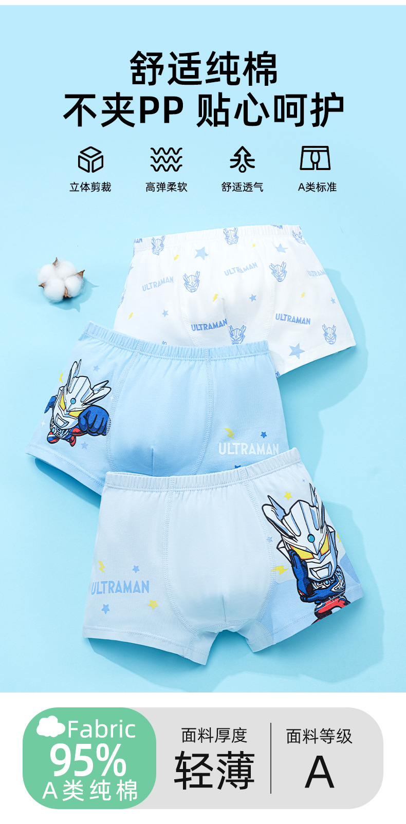울트라 맨 어린이 속옷 소년의 순면 복서 4 코너 아기 소년의 작은 아이 큰 어린이 청소년 반바지 여름스토어 가기