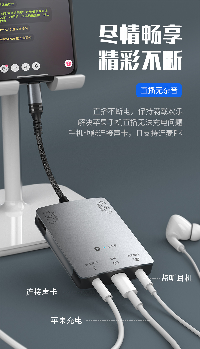 국경 간 라이브 No.1 애플 휴대 전화 변환기 안드로이드 타입-C 스테레오 카드 PK 연결스토어 가기