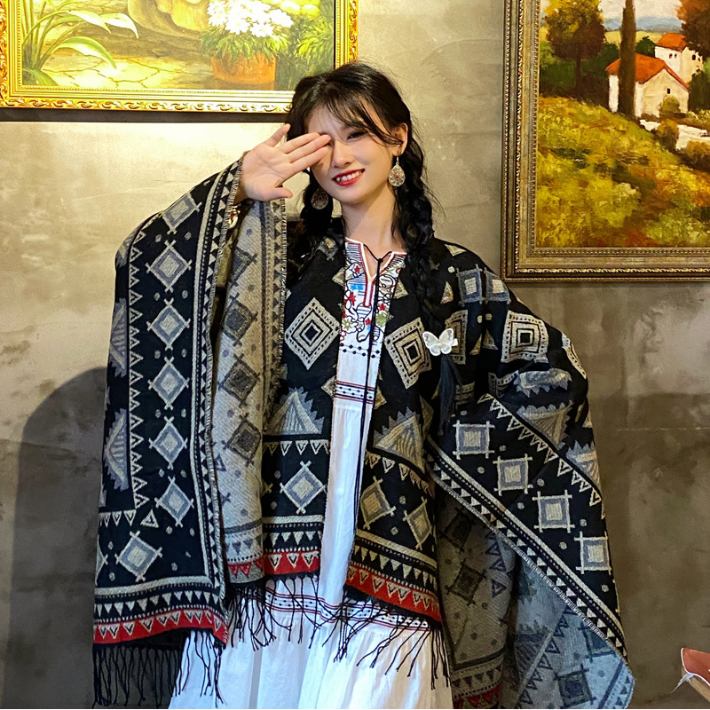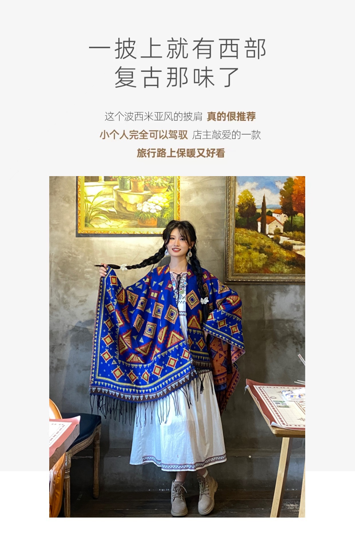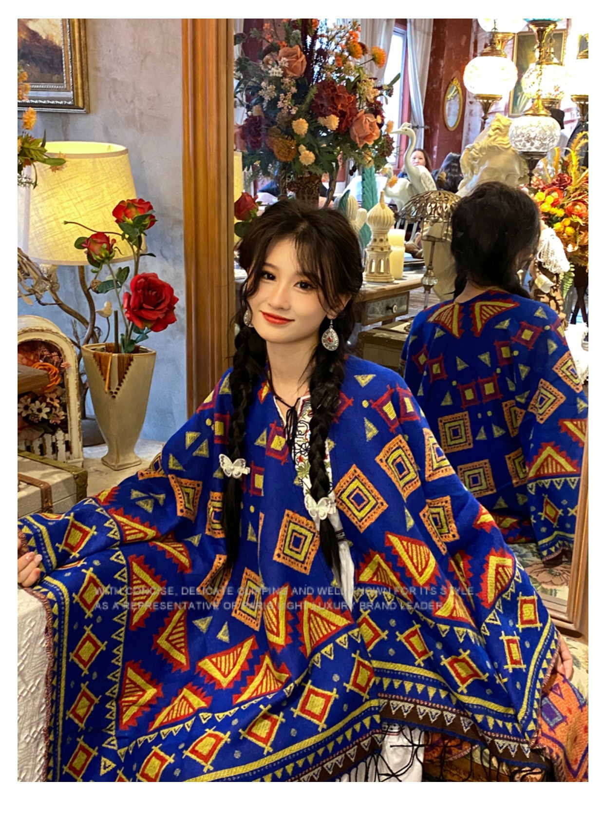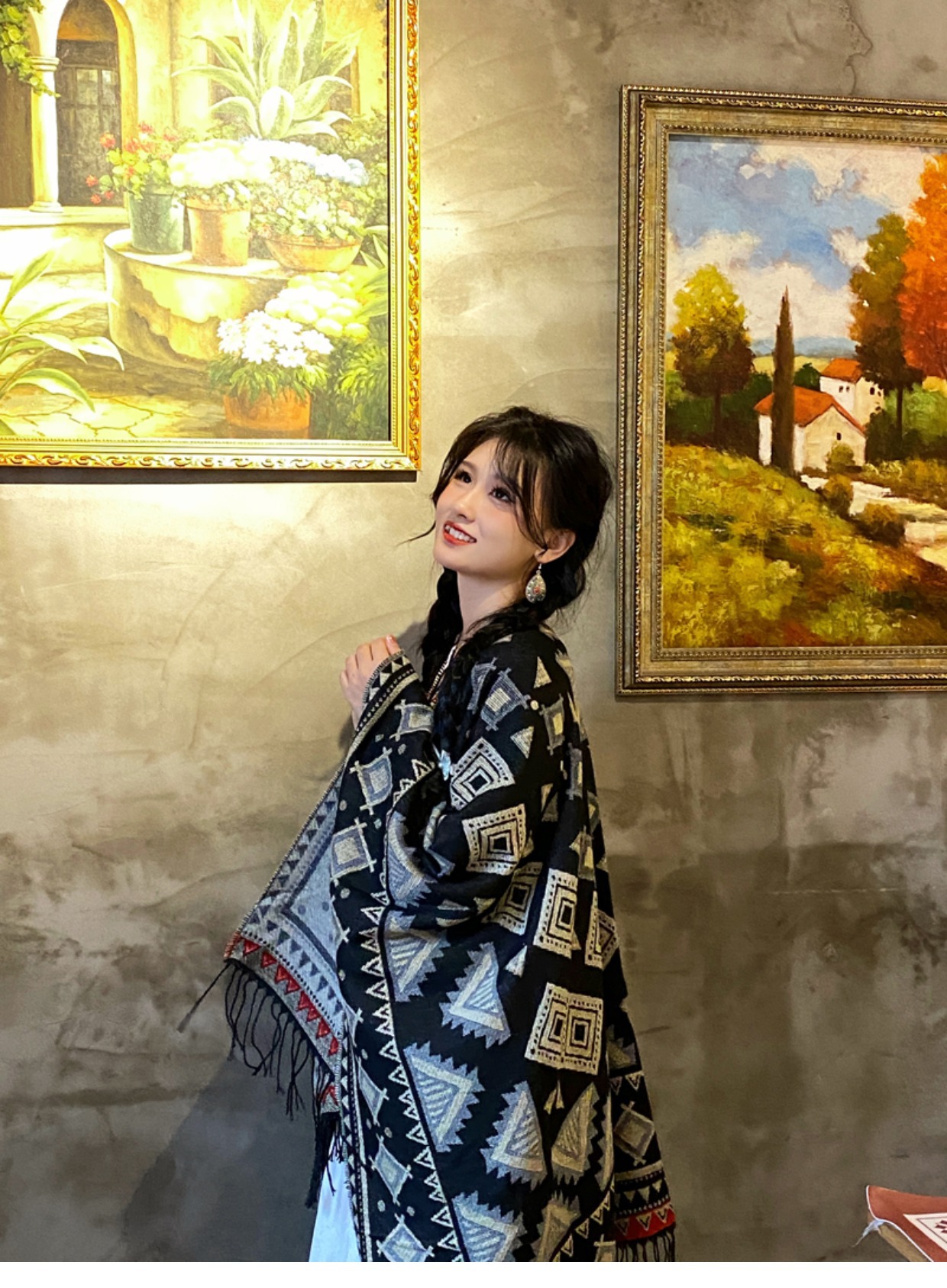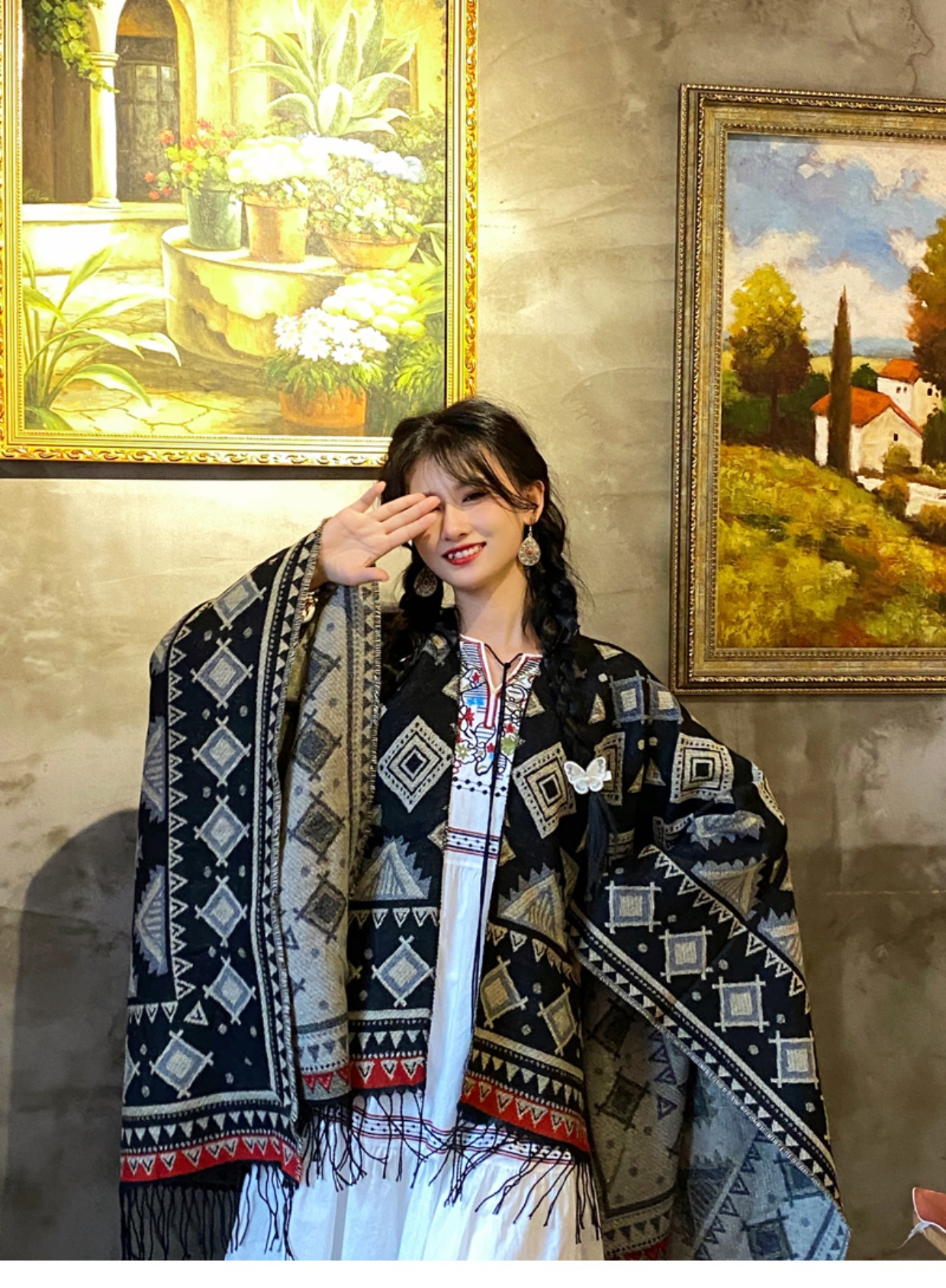 민족 스타일 여행 케이프 신장 티베트 북서부 초원 관광복 사진 따뜻한 외부 케이프