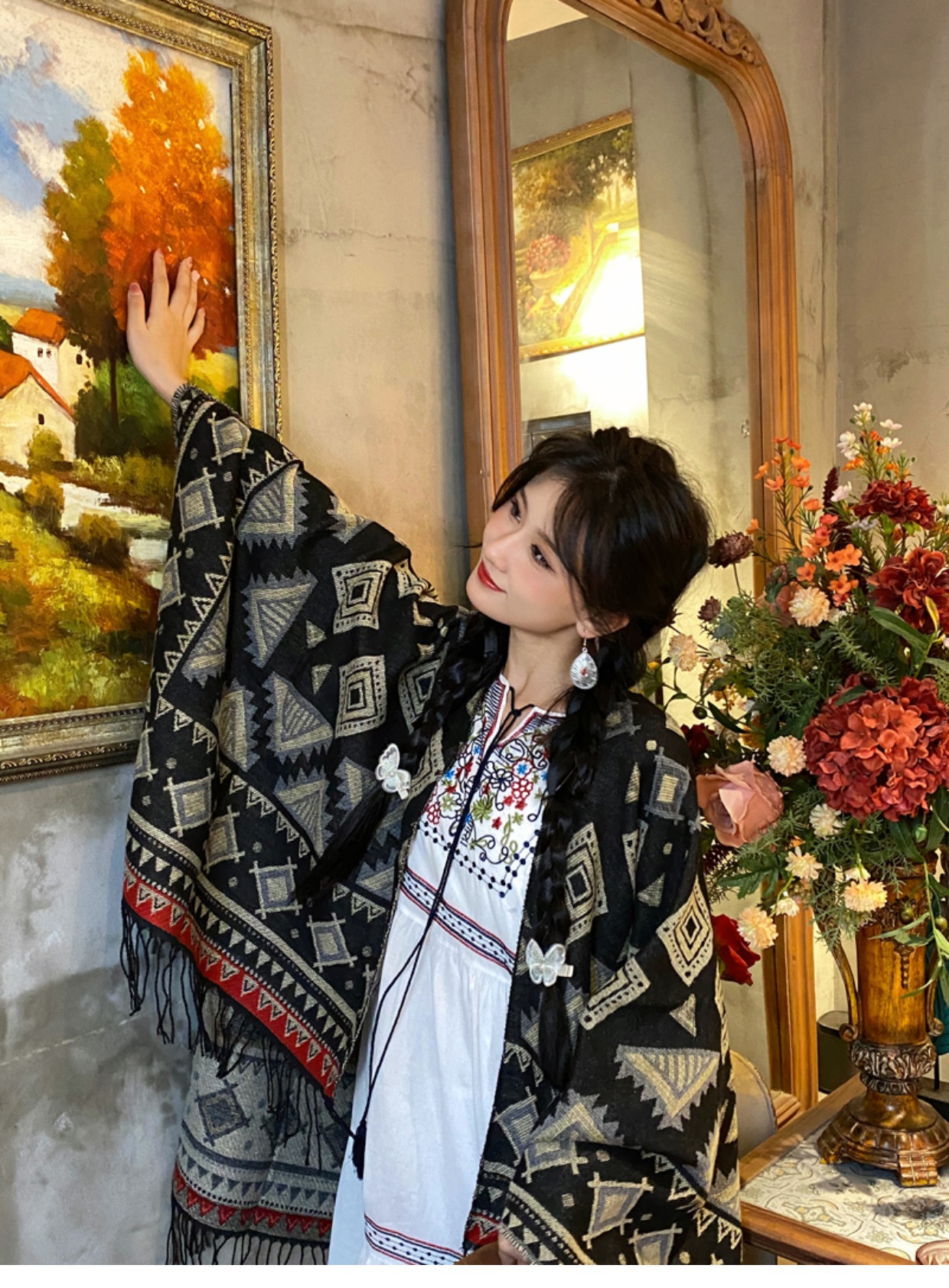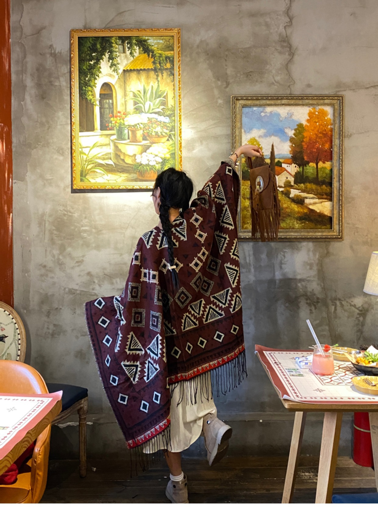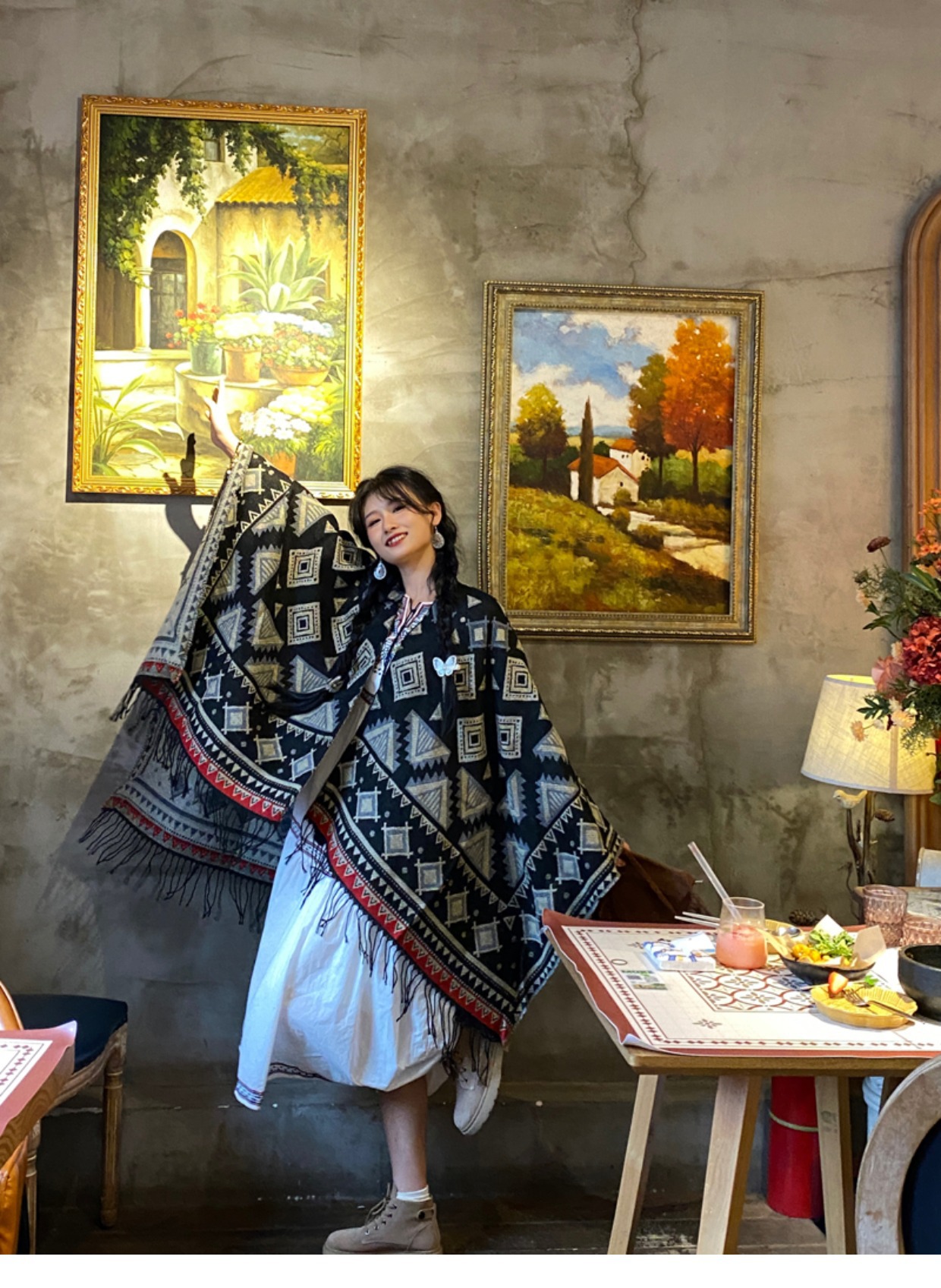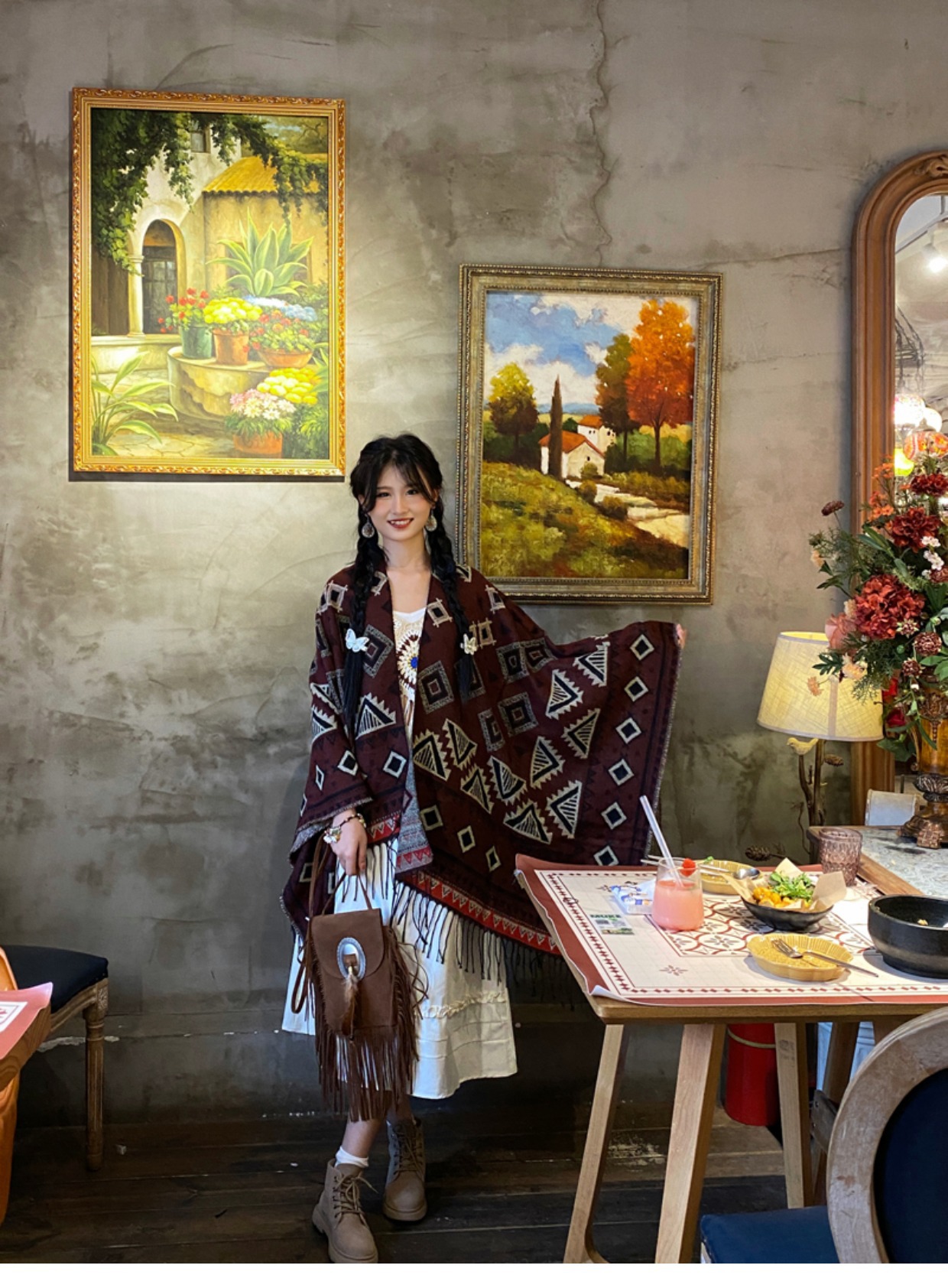 민족 스타일 여행 케이프 신장 티베트 북서부 초원 관광복 사진 따뜻한 외부 케이프