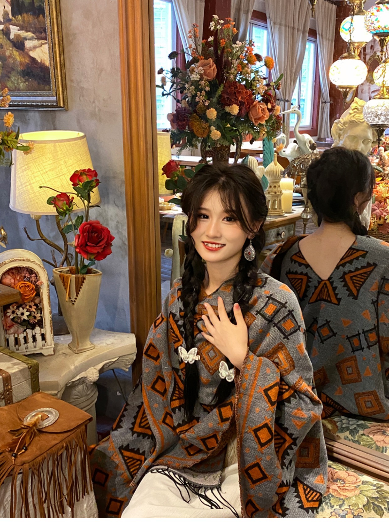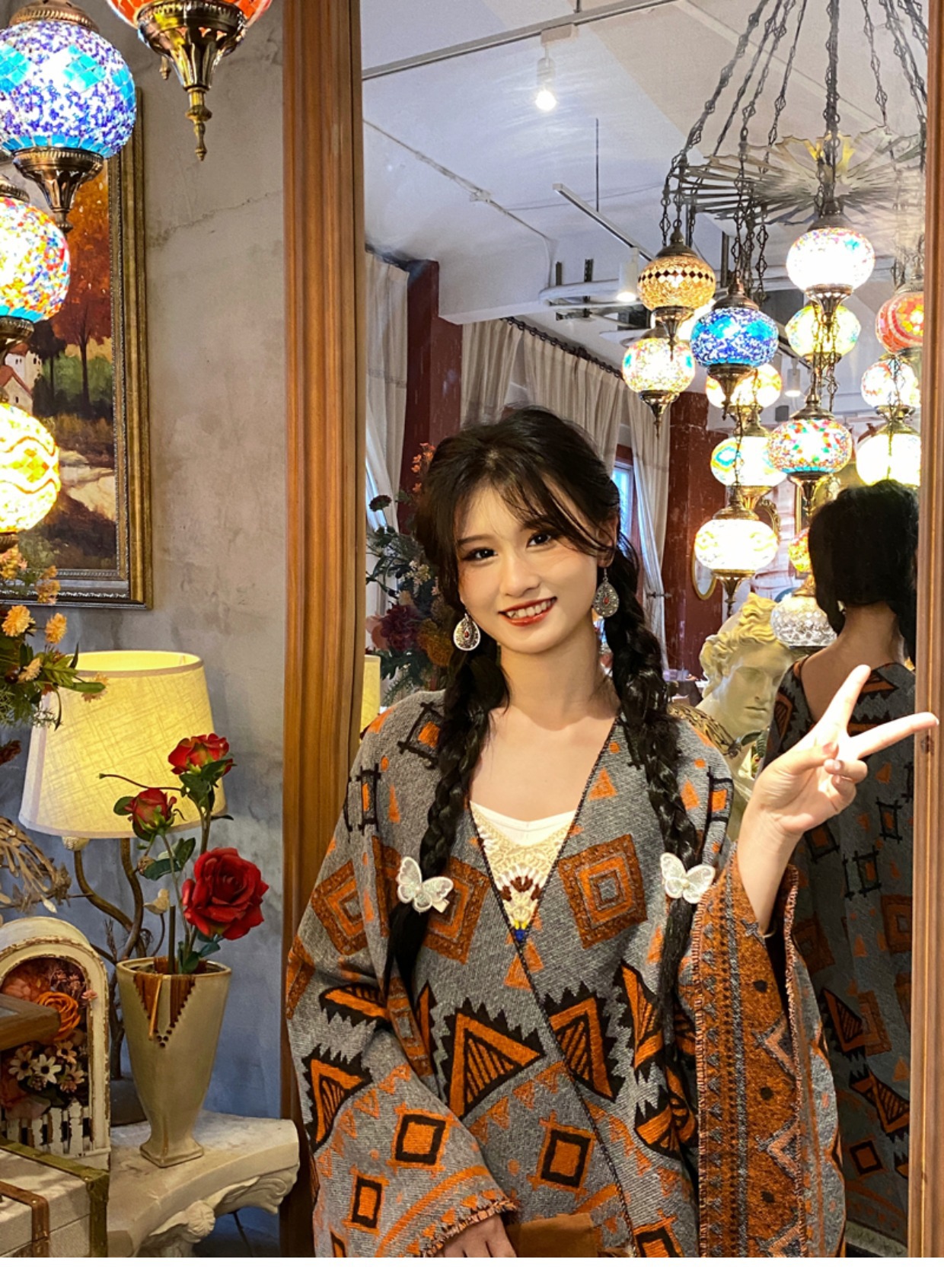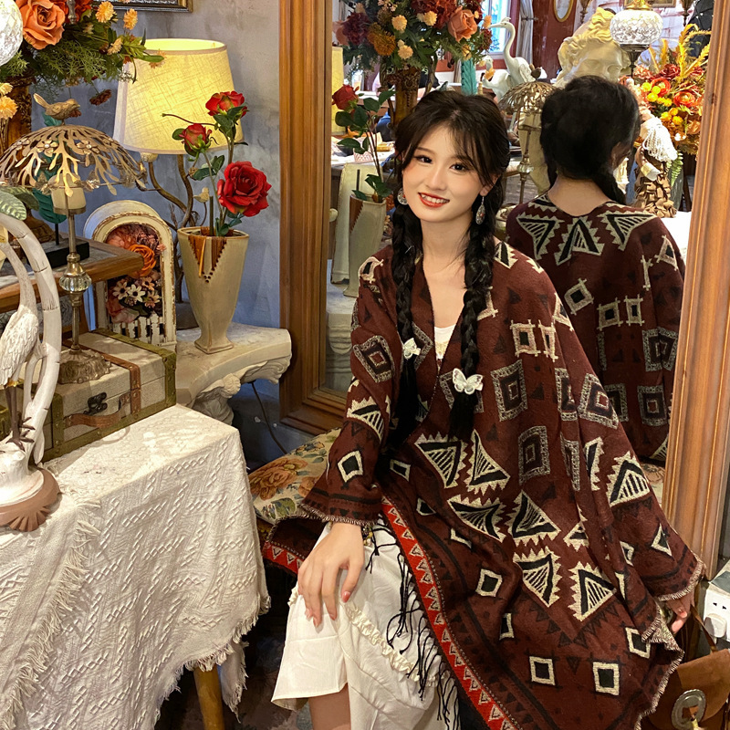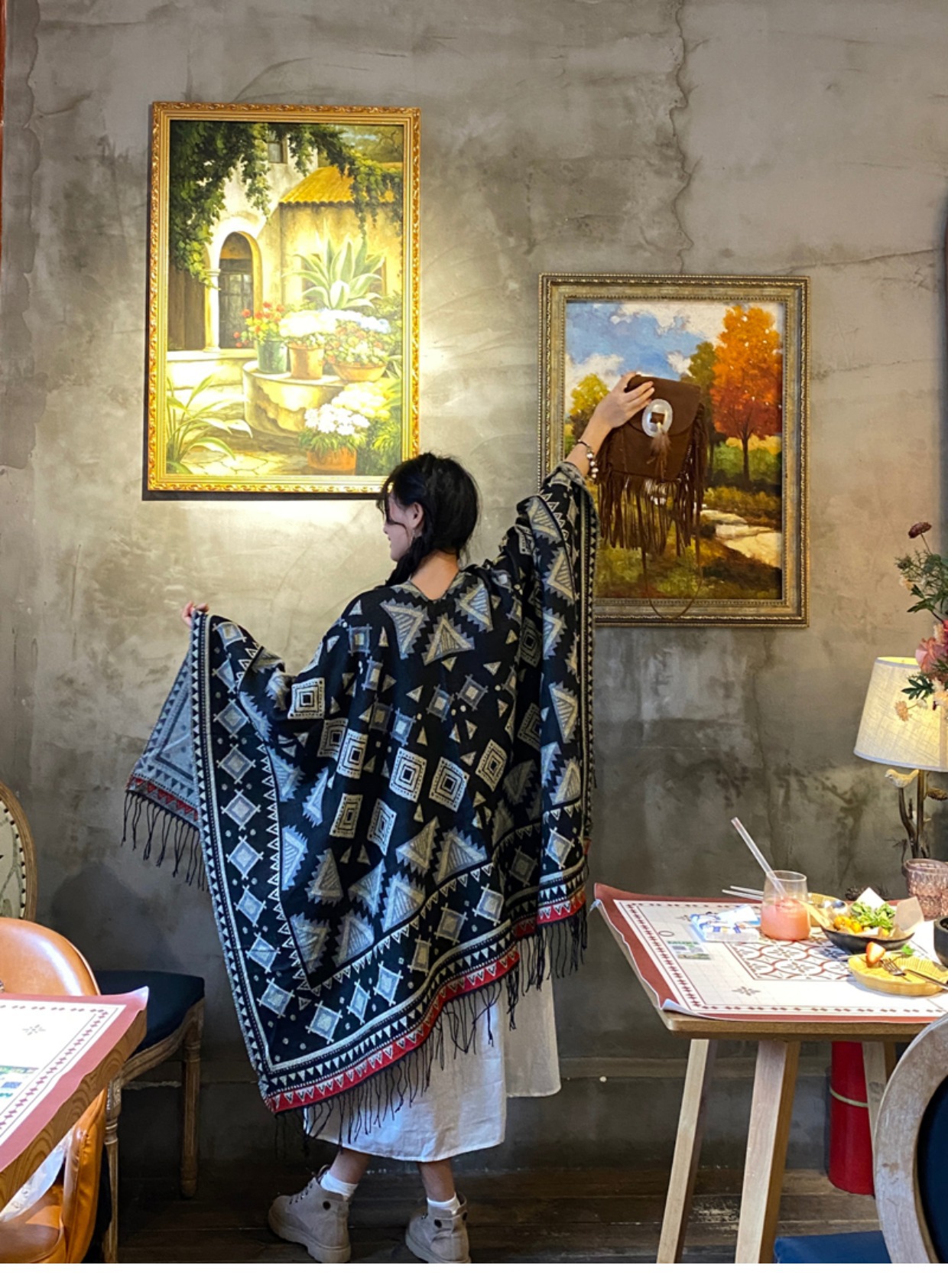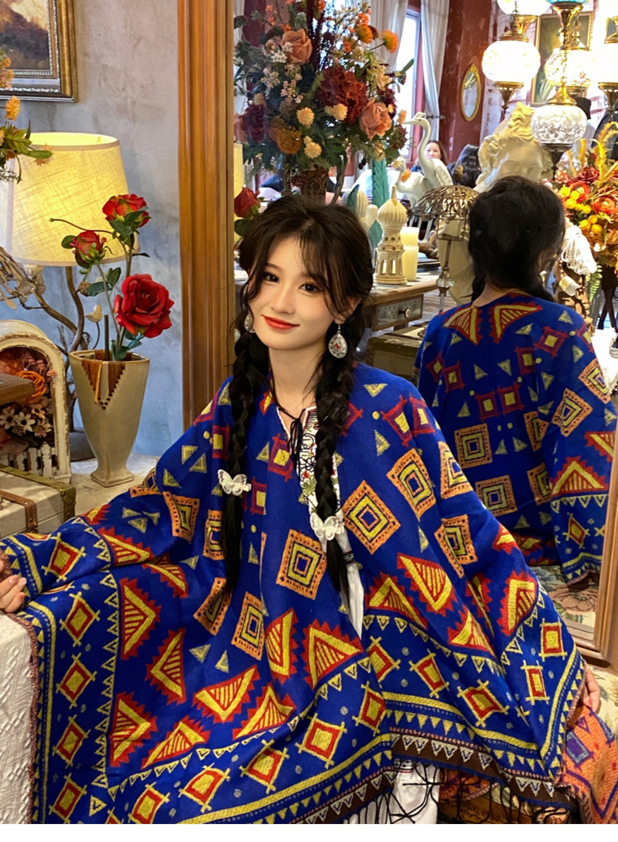 민족 스타일 여행 케이프 신장 티베트 북서부 초원 관광복 사진 따뜻한 외부 케이프