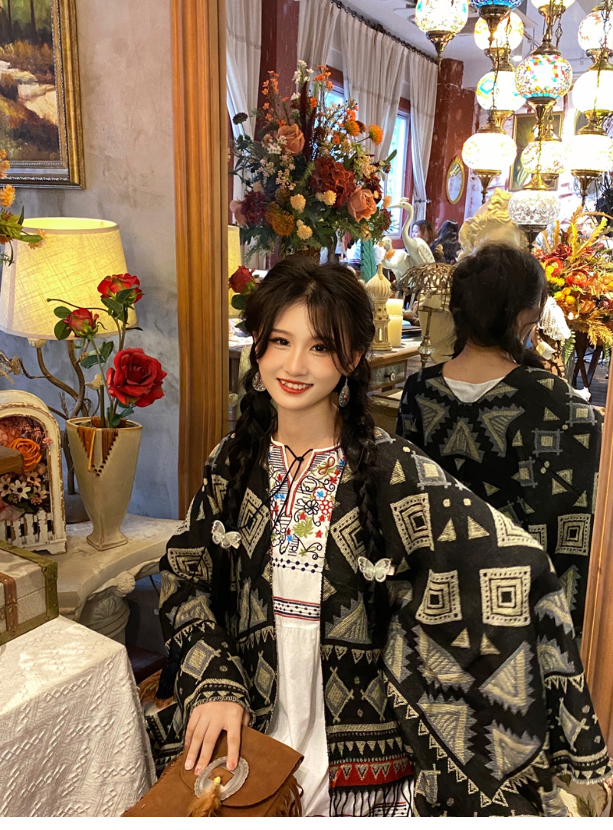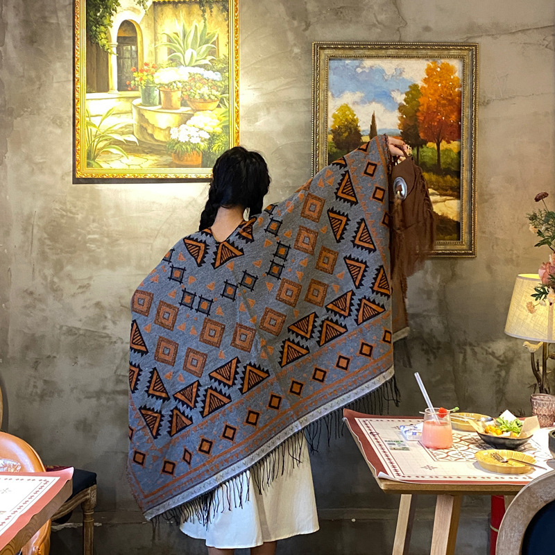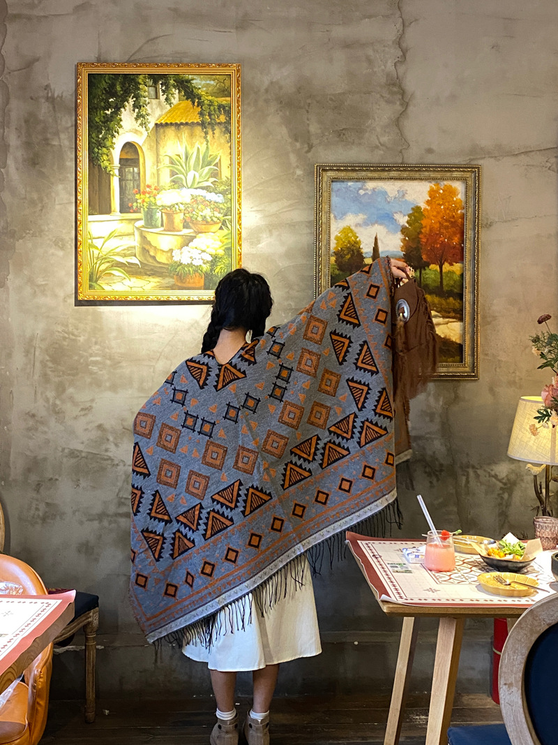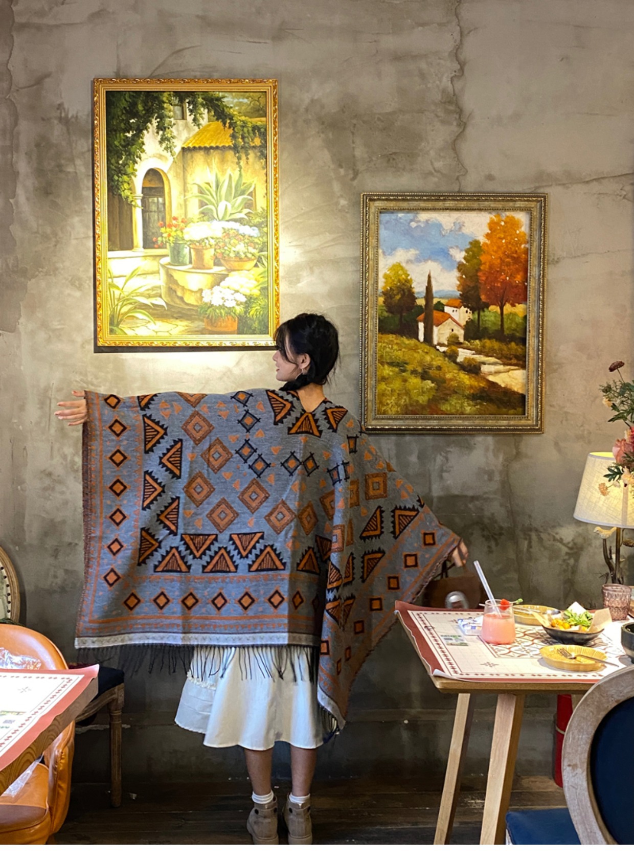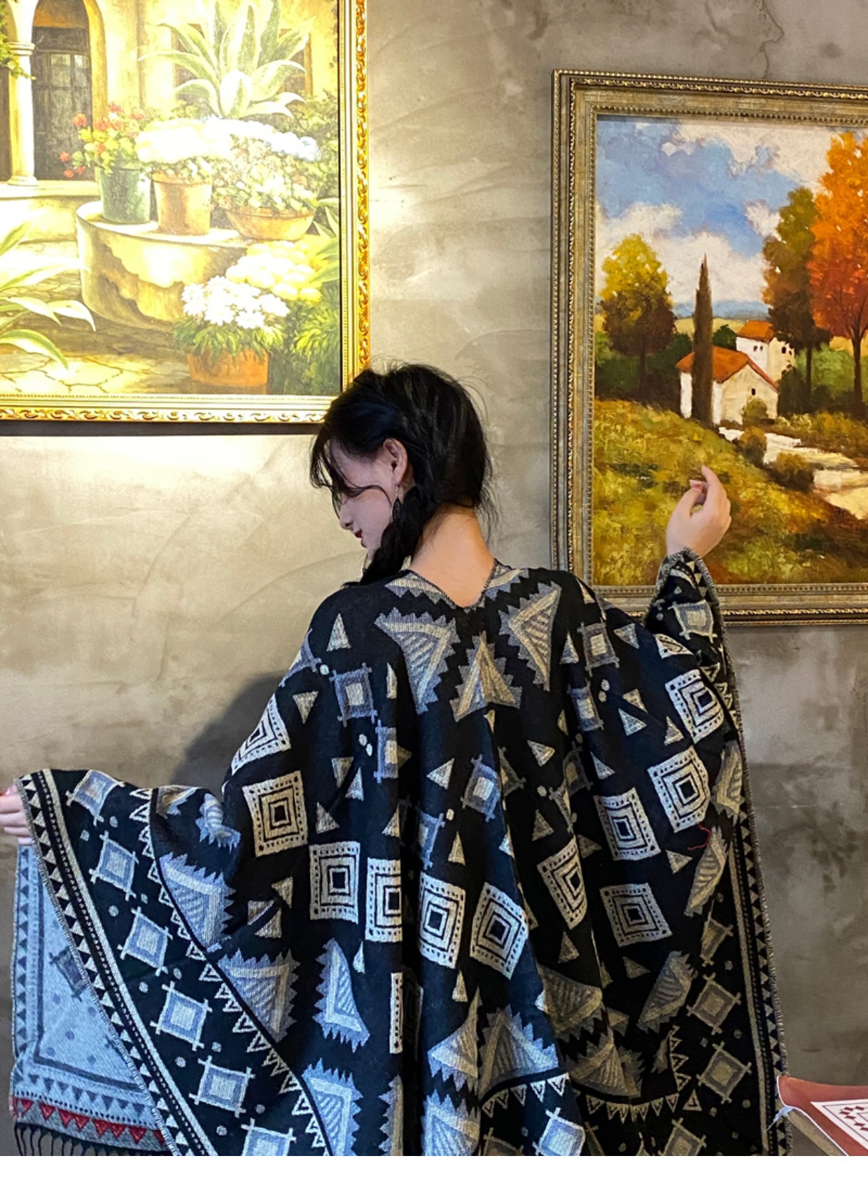 민족 스타일 여행 케이프 신장 티베트 북서부 초원 관광복 사진 따뜻한 외부 케이프