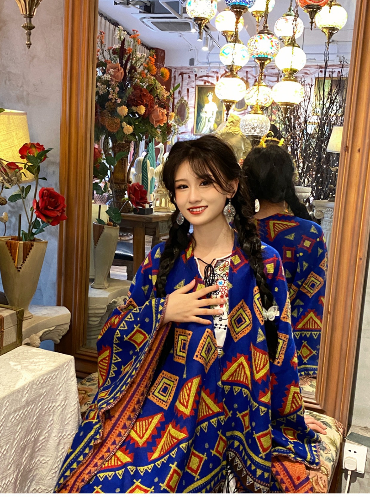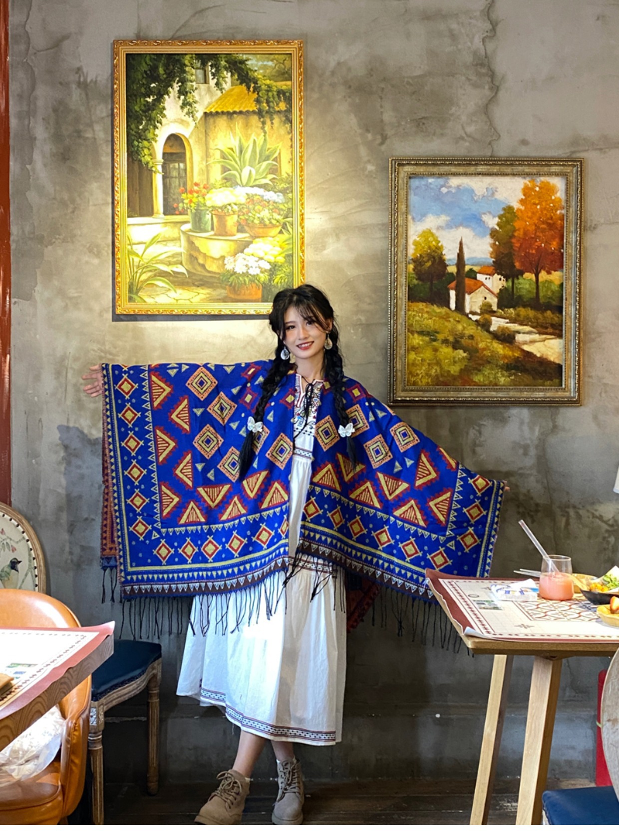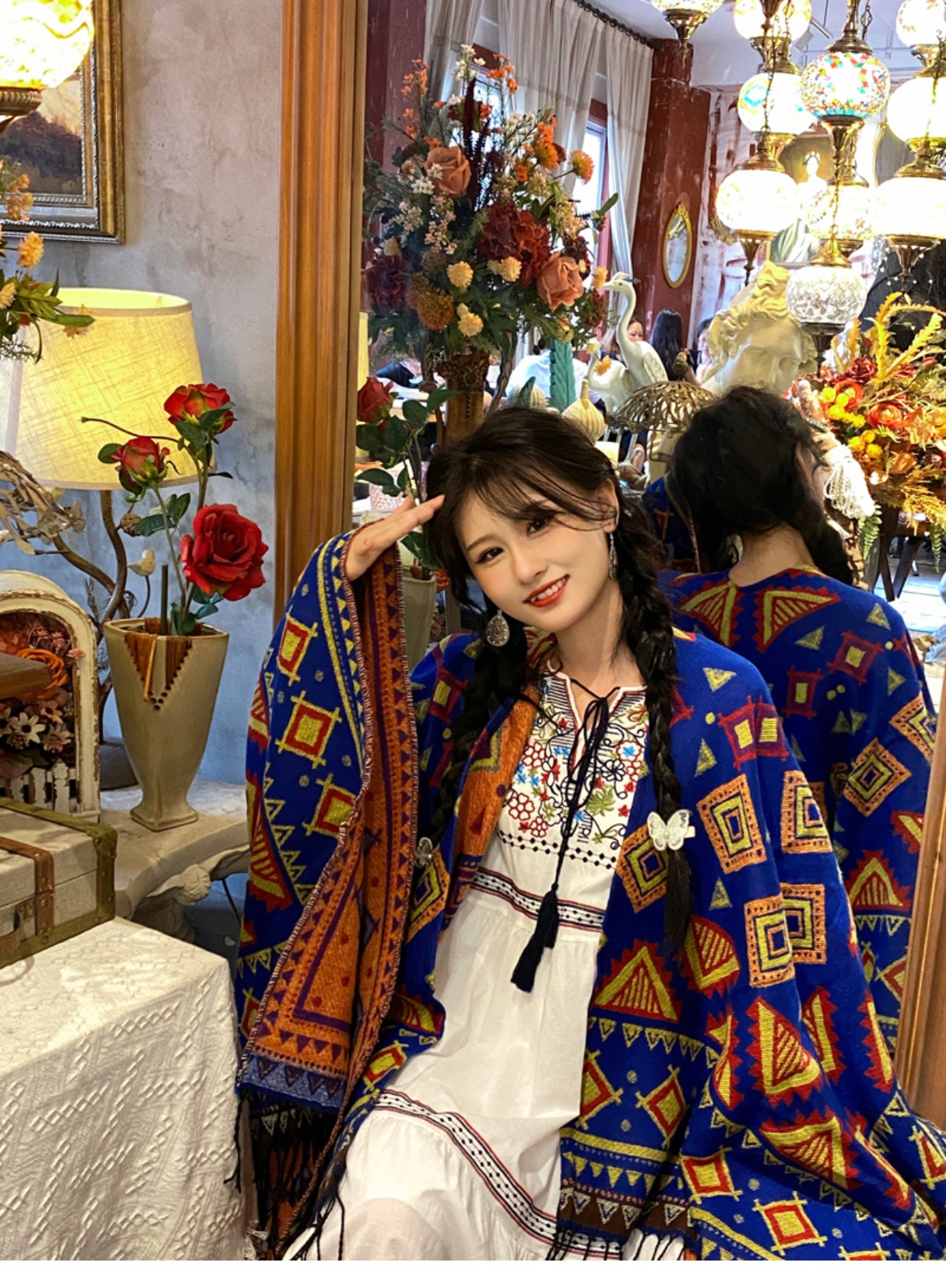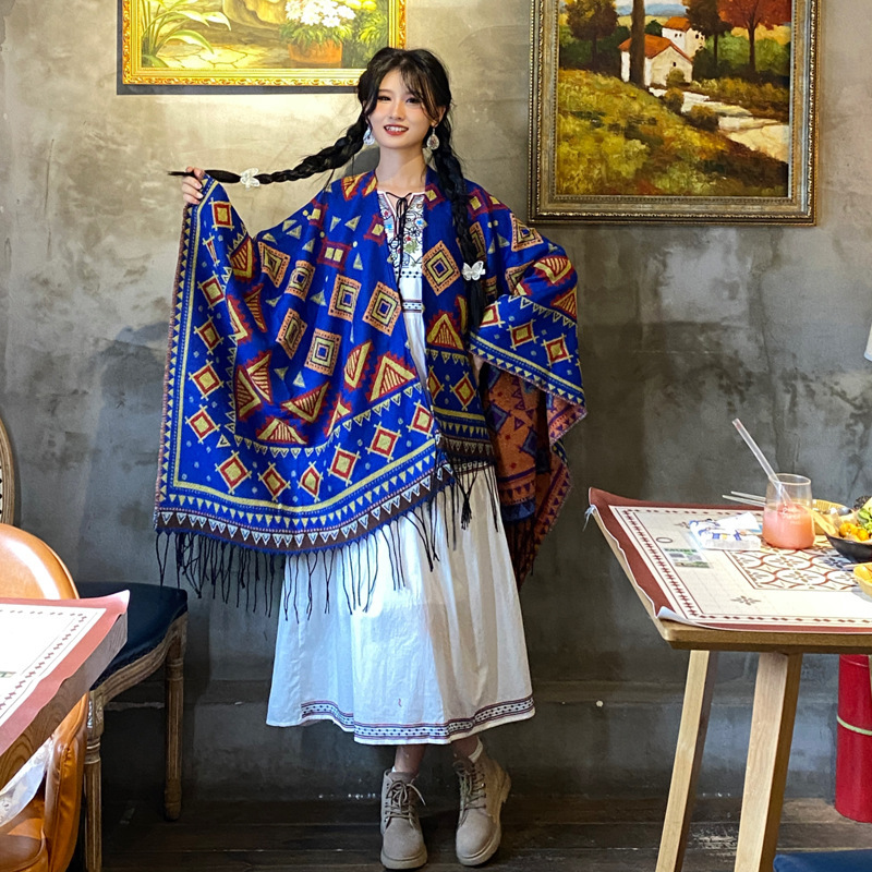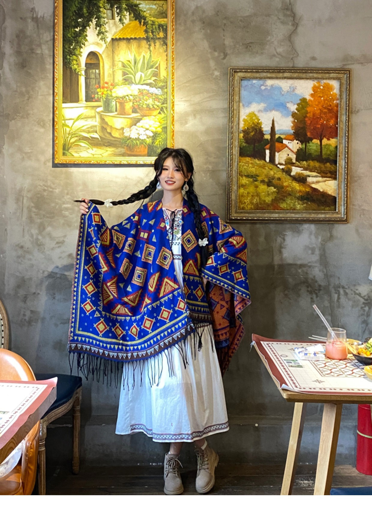 민족 스타일 여행 케이프 신장 티베트 북서부 초원 관광복 사진 따뜻한 외부 케이프스토어 가기